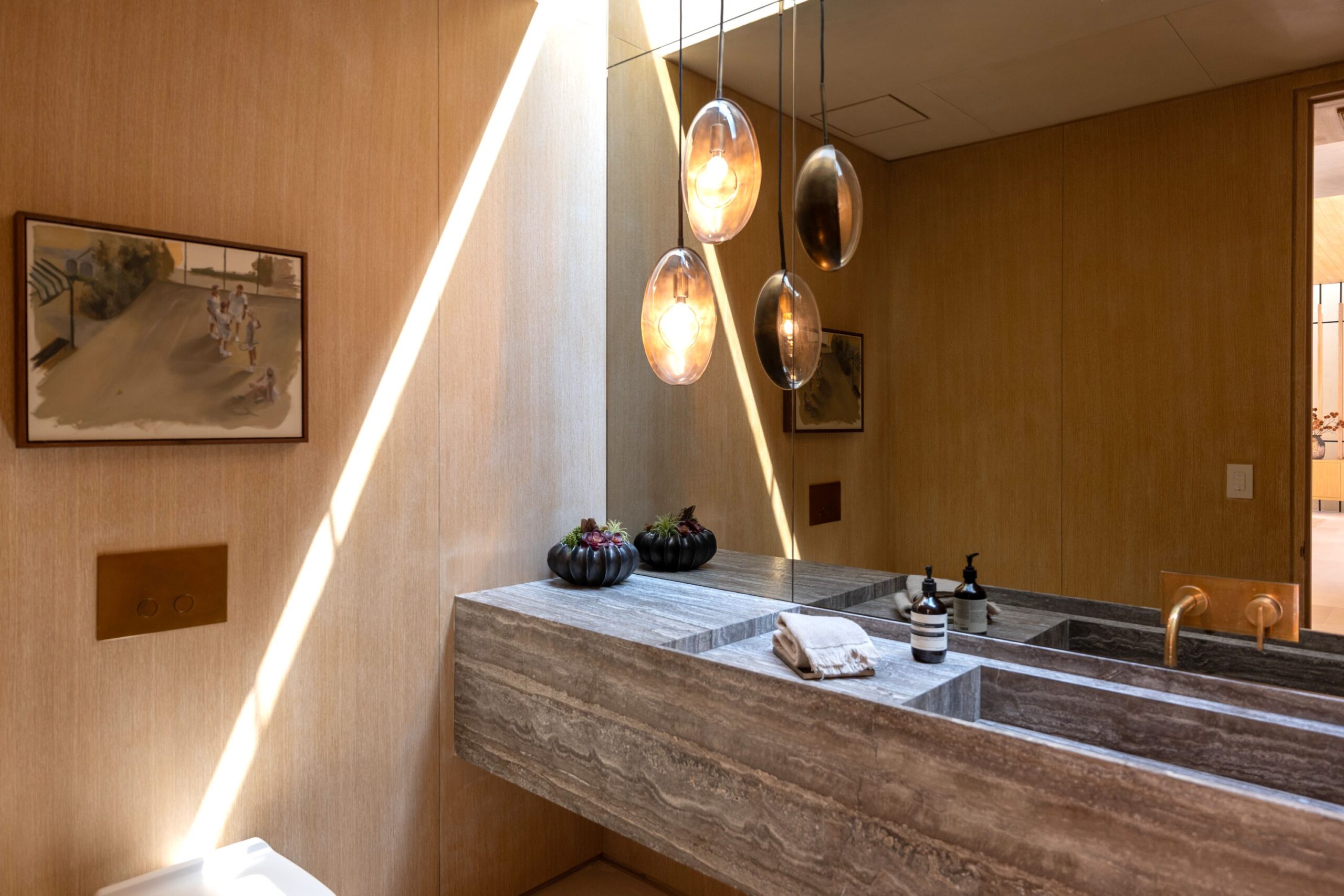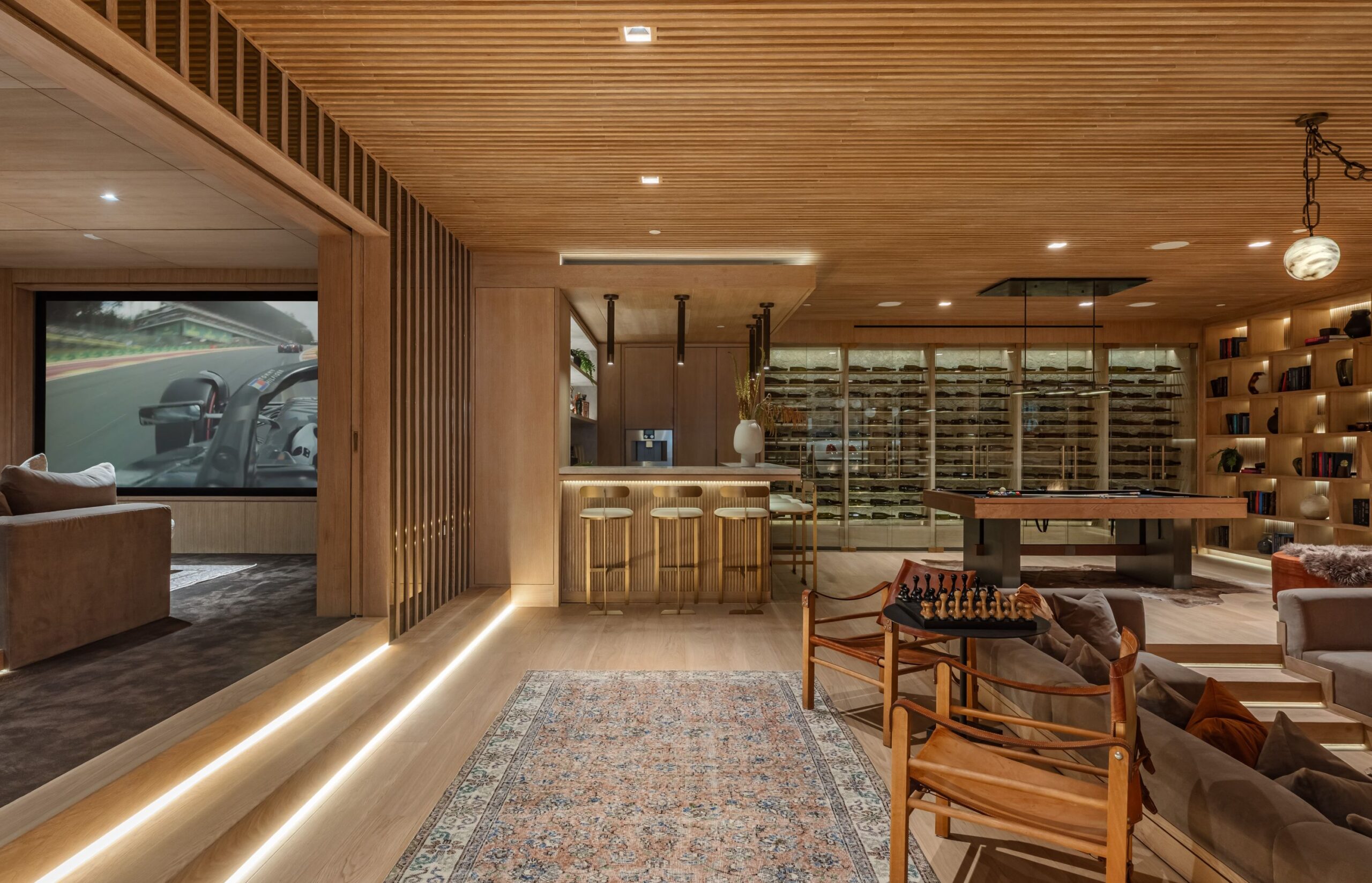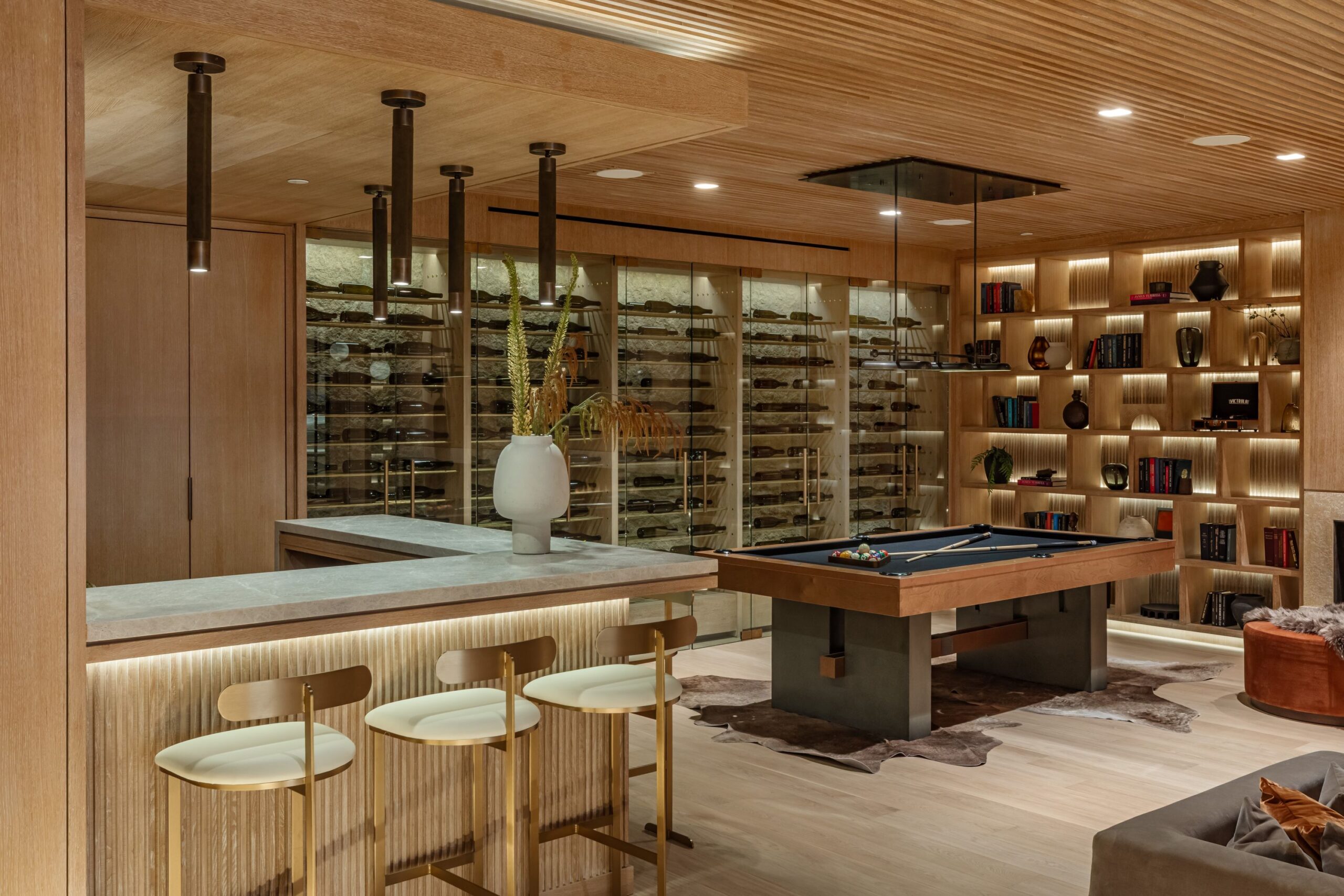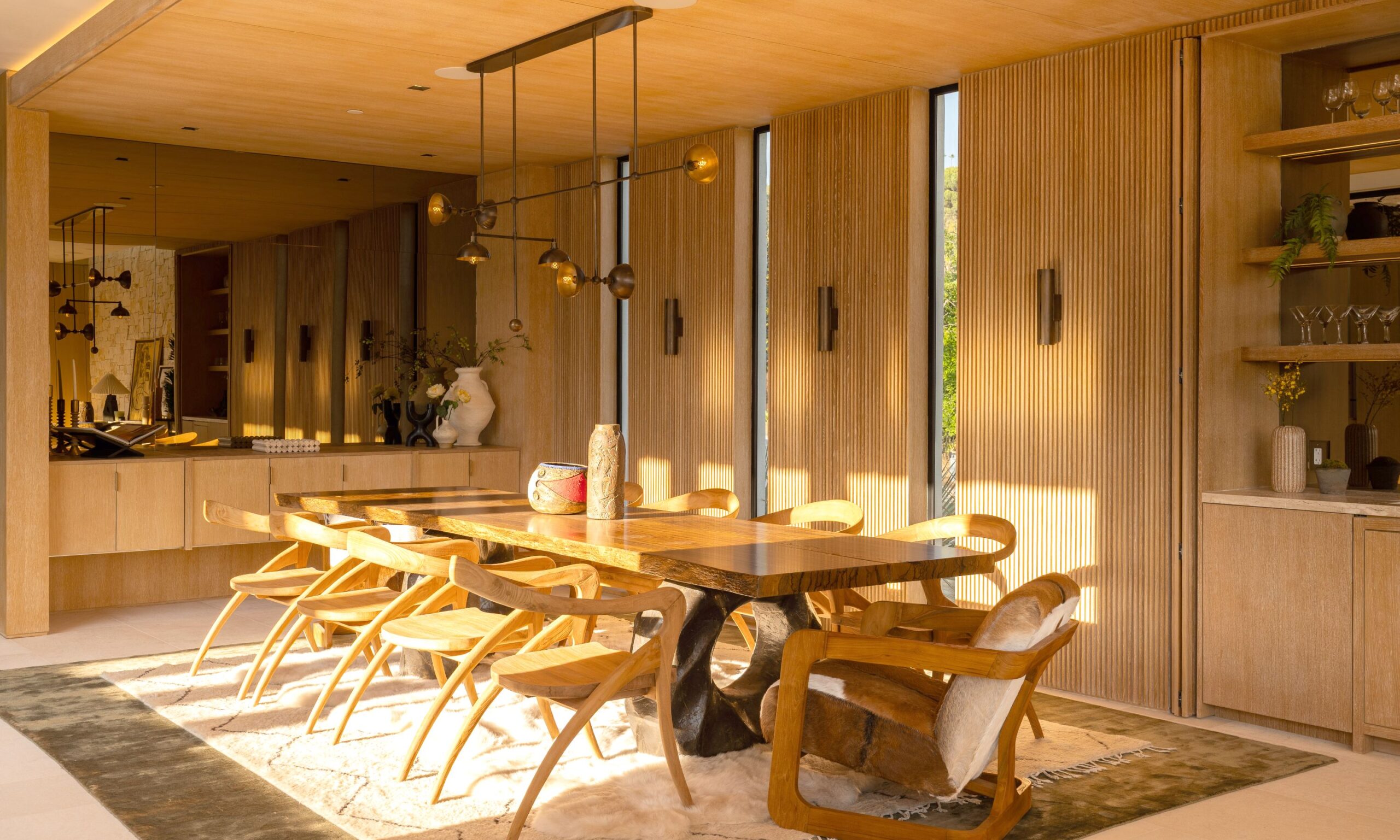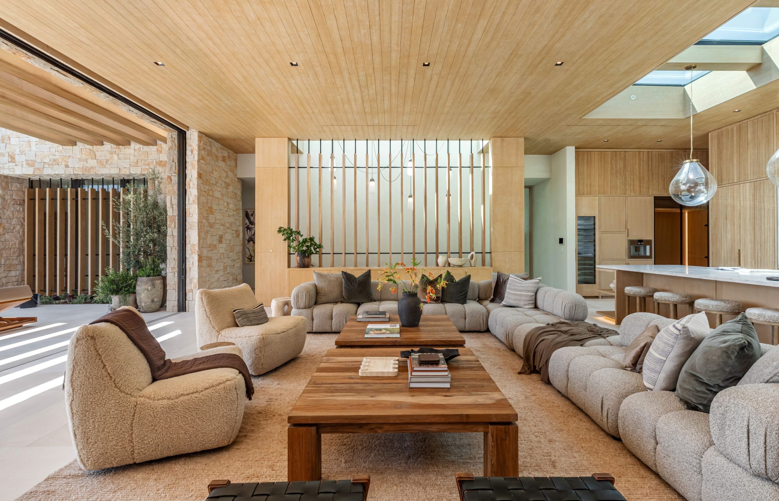 Experience timeless elegance in the exclusive Trousdale neighborhood of Beverly Hills. This organic estate designed by renowned designer Charles Infante, weaves his experience in film to create a narrative fit for entertainment and curated for elevated living in every possible way. Spanning 10,000 square feet, this architectural masterpiece showcases rich natural tones with Portuguese limestone, Italian Navona travertine, white oak paneling and floors, organic custom plaster walls, and motorized custom steel windows. Sleek lines perfectly frame cinematic city-to-ocean views. Inside, the main living spaces are open and airy, with walls of glass that fully pocket to create a seamless indoor/outdoor flow to the pool, spa, and patio. The expansive living room, dining area, and both the main and chef's kitchens are designed for grand scale living and entertaining. Four ensuite bedrooms offer refined comfort, in addition to a spacious, tranquil primary suite with motorized walls of glass, panoramic city views, and a spa-style bath. Luxurious amenities include a sleek gym with sauna, a temperature-controlled wine display, and an epic entertainment lounge with a sunken conversation pit, full bar, and state-of-the-art theater. The fully finished showcase garage features a car turntable; perfect for showcasing your collection. This is your moment to live above it all, in a home that sets the new standard for Trousdale living.