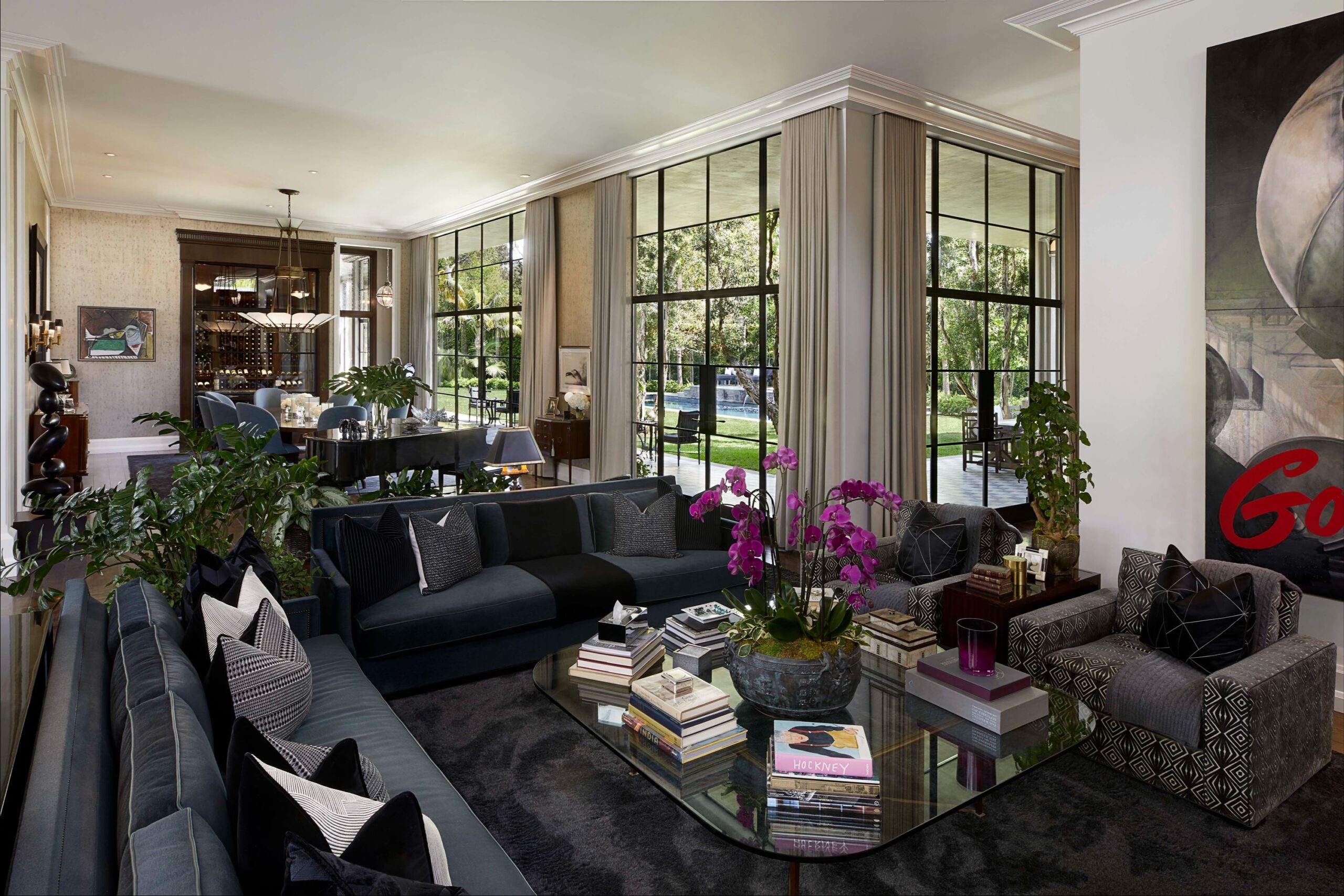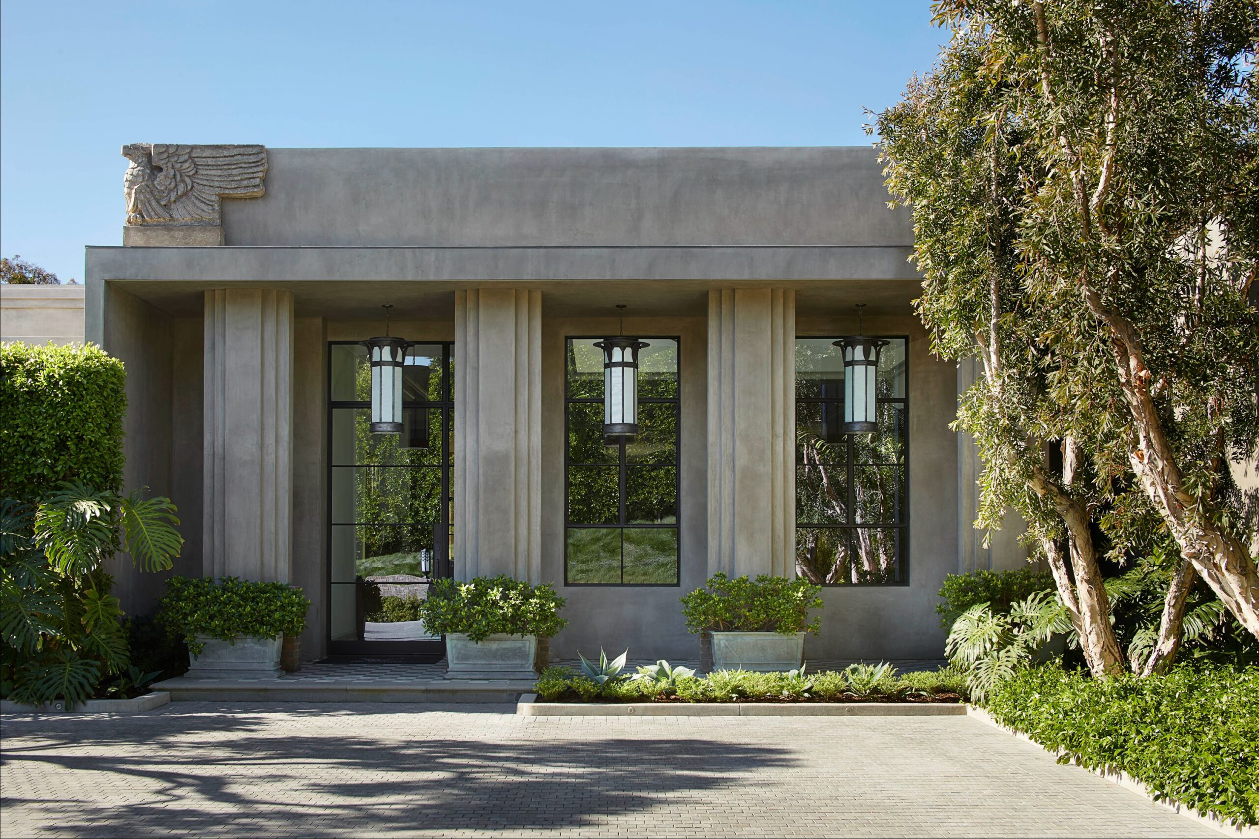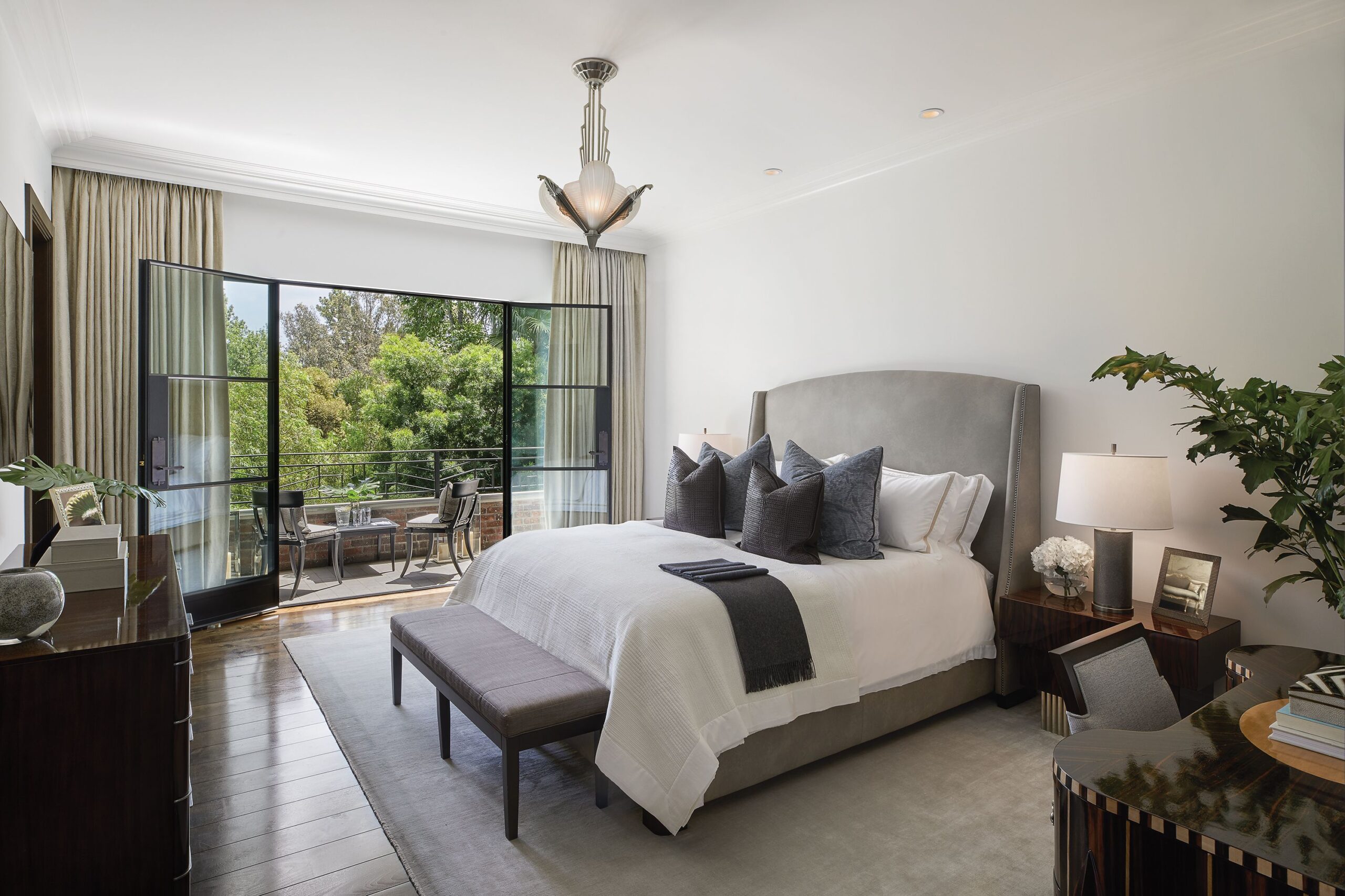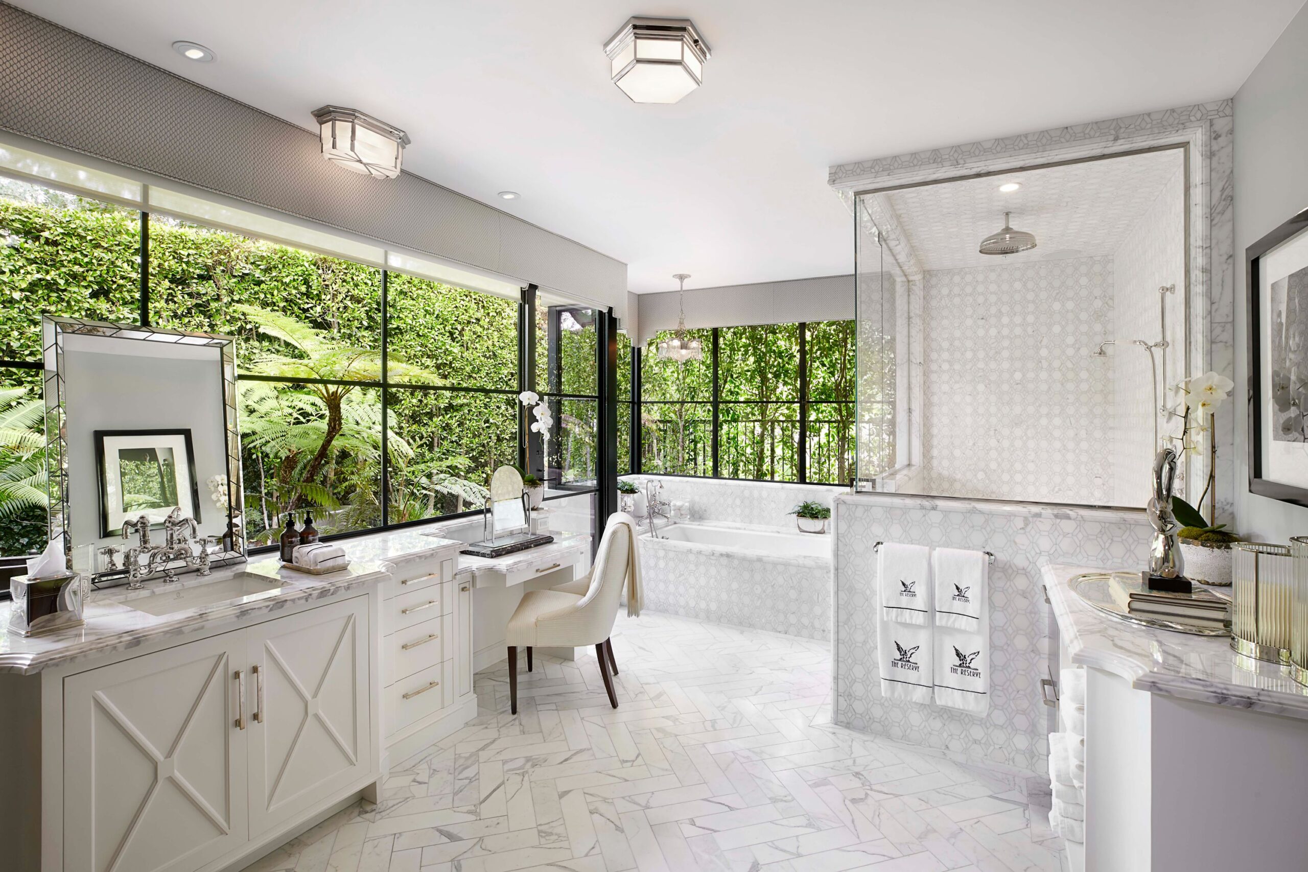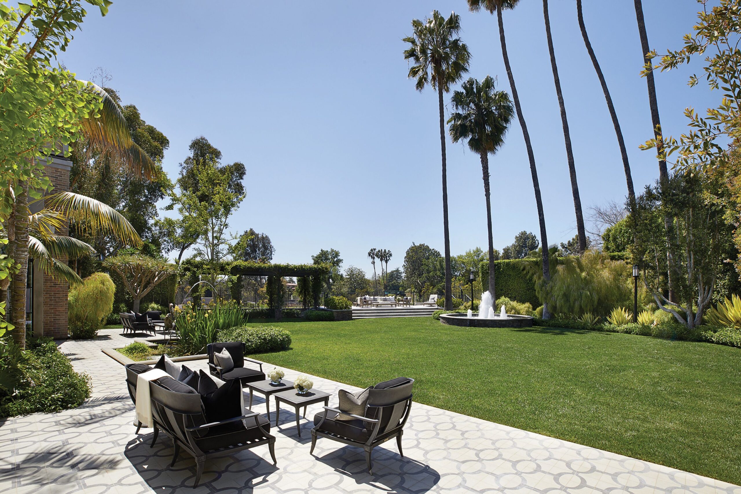 The Reserve is an extraordinary, architecturally significant estate situated on two ultra-private acres in the heart of Holmby Hills. Surrounded by swaying palm trees, lush forestry and immaculate landscaping, this secluded oasis is an exceptional vision of modernist architecture. The Reserve was recently refined by a team of expert designers and international craftsman who have carefully expanded the estate to create two properties that function for modern day living whilst exuding old Hollywood glamour. At 11,000-square feet on a single story, the main house's proportions are palatial. The ceilings are a spectacular 14-feet high, and vast floor-to ceiling windows offer uninterrupted views of the beautifully landscaped gardens, water features and the 50-foot swimming pool. Inside the house there are five spacious bedroom suites including a master wing, as well as a tremendous family kitchen/dining room, wine room, two magnificent living spaces featuring a Hollywood art deco bar and formal lounge for entertaining, a 1920s French regency-style cinema, a tranquil study and a spectacular playroom. The most significant addition to the estate is the three-story guest house. At 10,000-squarefeet, it is as luxurious and imposing as the main house, with five large bedroom suites, seven bathrooms, a kitchen and living area, gymnasium, spa, and a carport. It has been thoughtfully designed so that the lower level can operate as an independent apartment. The front of the property elegantly mirrors the exact style and dimensions of the main house, with majestic pillars and huge floor-to ceiling windows, while the rear of the house is an impressive three-story architectural spectacle, revealed through lush greenery.