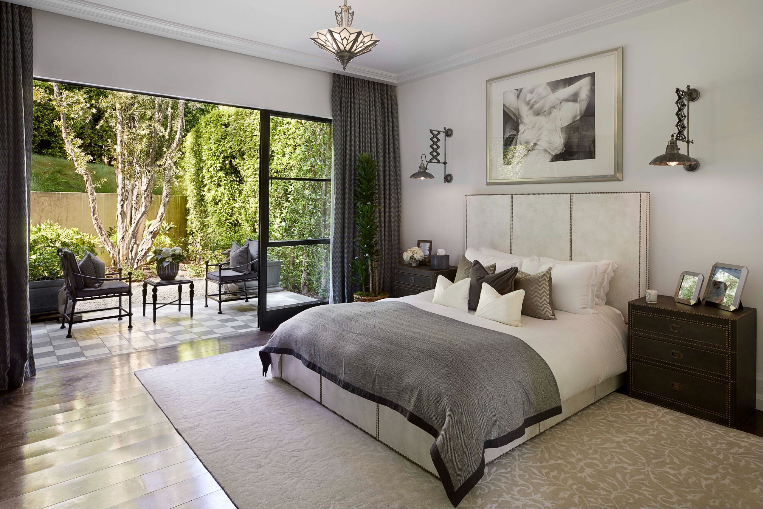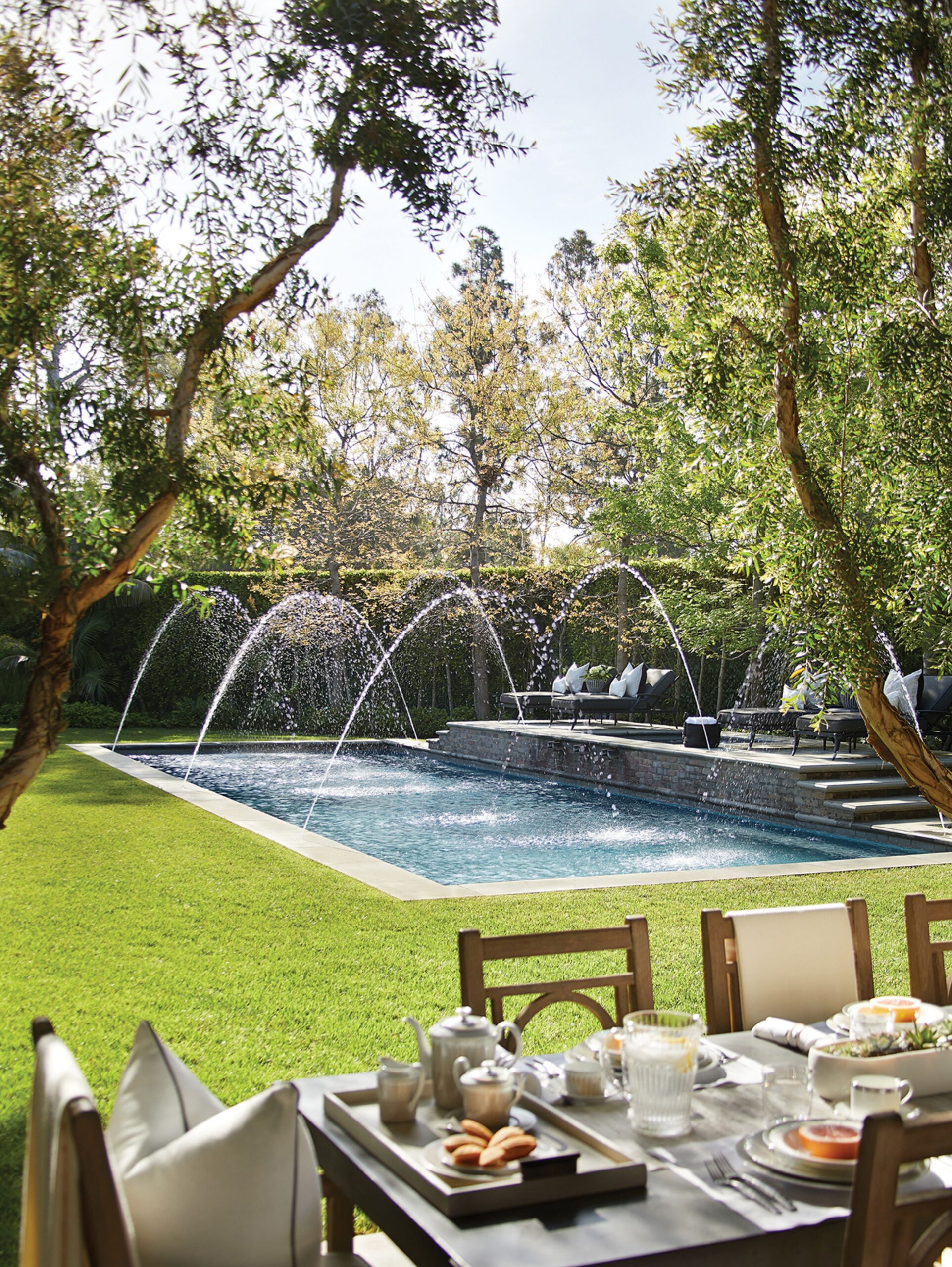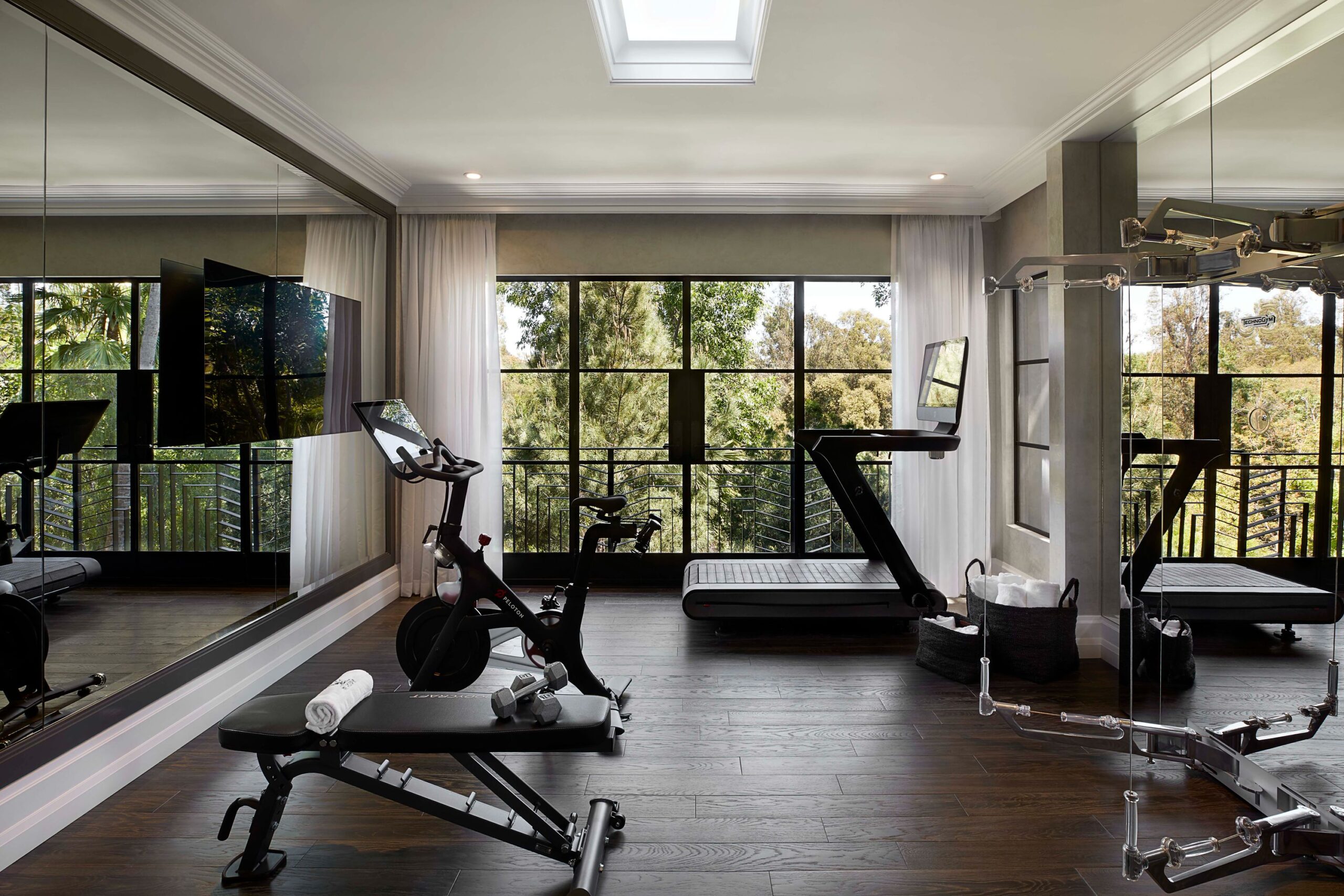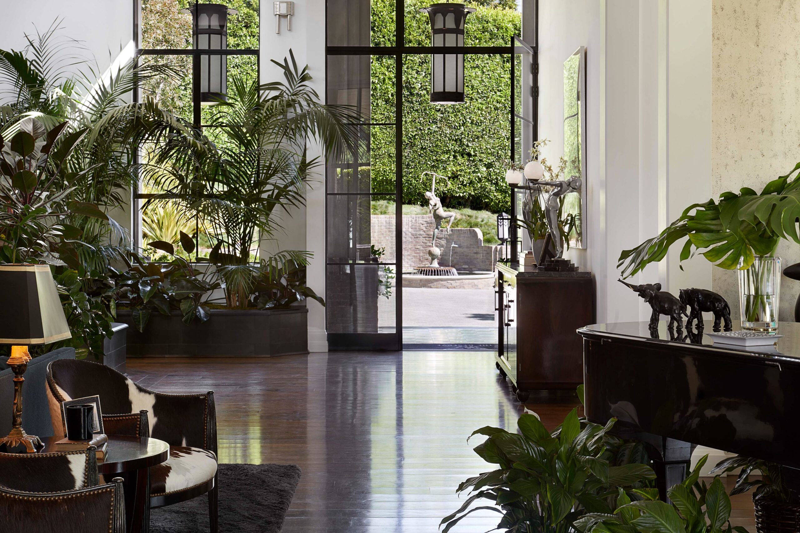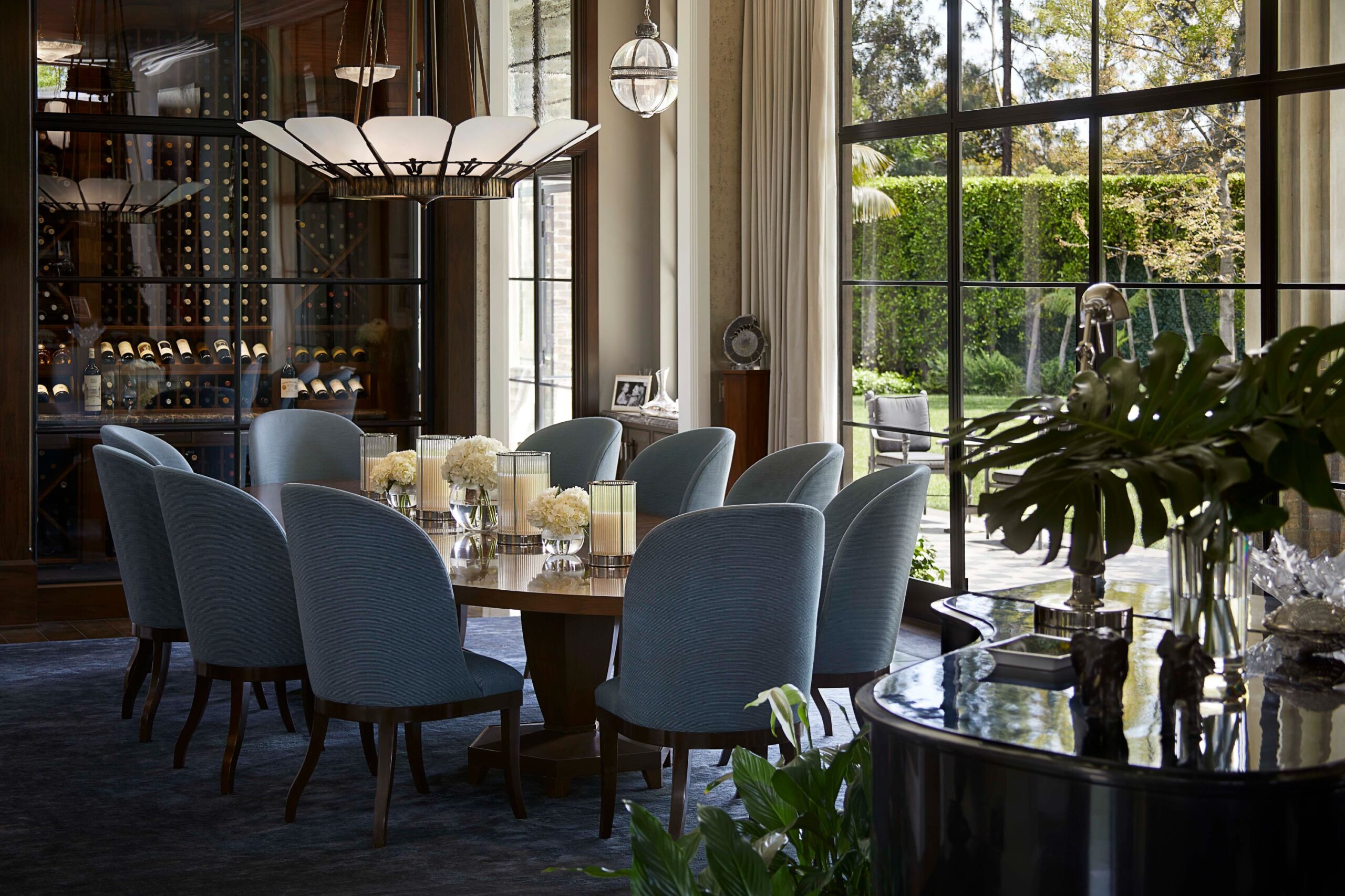 The Reserve is an extraordinary, architecturally significant estate situated on two ultra-private acres in the heart of Holmby Hills. Surrounded by swaying palm trees, lush forestry and immaculate landscaping, this secluded oasis is an exceptional vision of modernist architecture. The Reserve was recently refined by a team of expert designers and international craftsman who have carefully expanded the estate to create two properties that function for modern day living whilst exuding old Hollywood glamour. At 11,000-square feet on a single story, the main house's proportions are palatial. The ceilings are a spectacular 14-feet high, and vast floor-to ceiling windows offer uninterrupted views of the beautifully landscaped gardens, water features and the 50-foot swimming pool. Inside the house there are five spacious bedroom suites including a master wing, as well as a tremendous family kitchen/dining room, wine room, two magnificent living spaces featuring a Hollywood art deco bar and formal lounge for entertaining, a 1920s French regency-style cinema, a tranquil study and a spectacular playroom. The most significant addition to the estate is the three-story guest house. At 10,000-squarefeet, it is as luxurious and imposing as the main house, with five large bedroom suites, seven bathrooms, a kitchen and living area, gymnasium, spa, and a carport. It has been thoughtfully designed so that the lower level can operate as an independent apartment. The front of the property elegantly mirrors the exact style and dimensions of the main house, with majestic pillars and huge floor-to ceiling windows, while the rear of the house is an impressive three-story architectural spectacle, revealed through lush greenery.