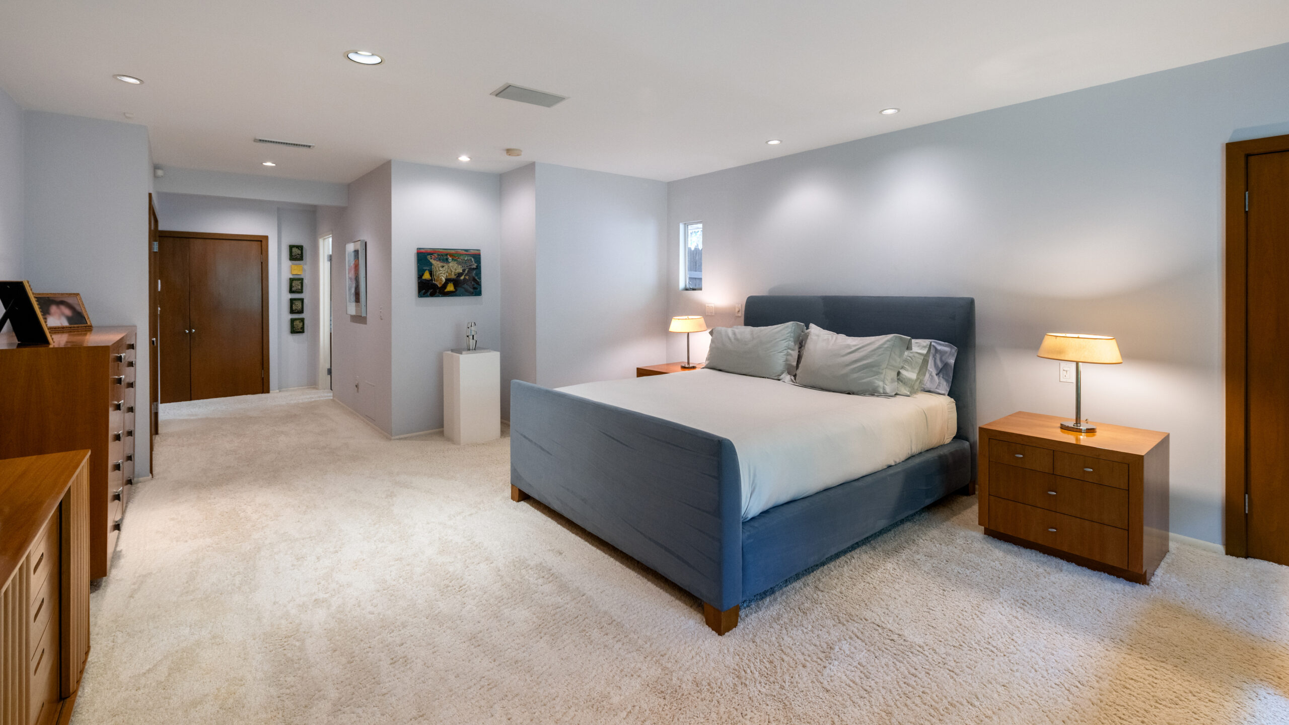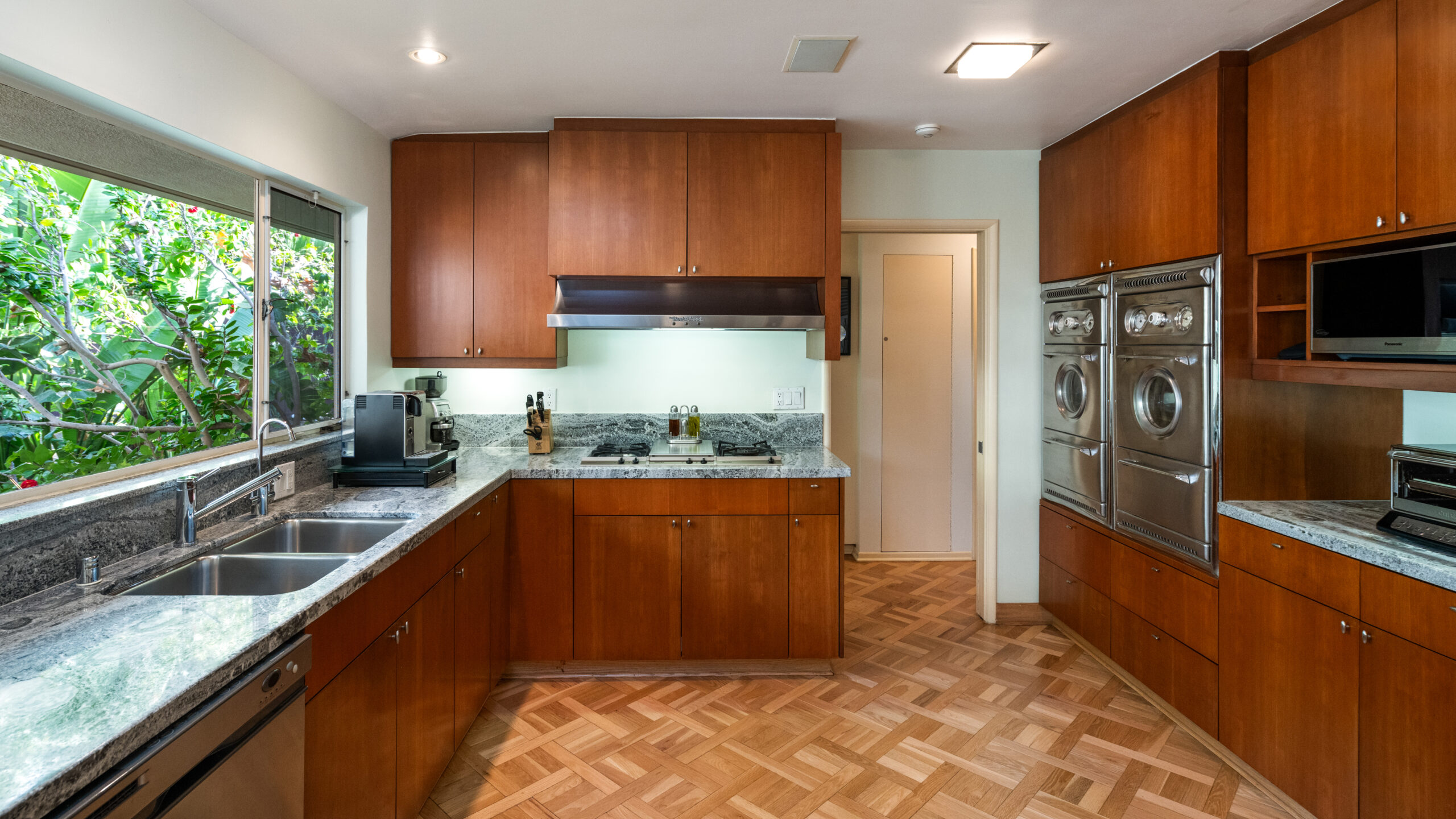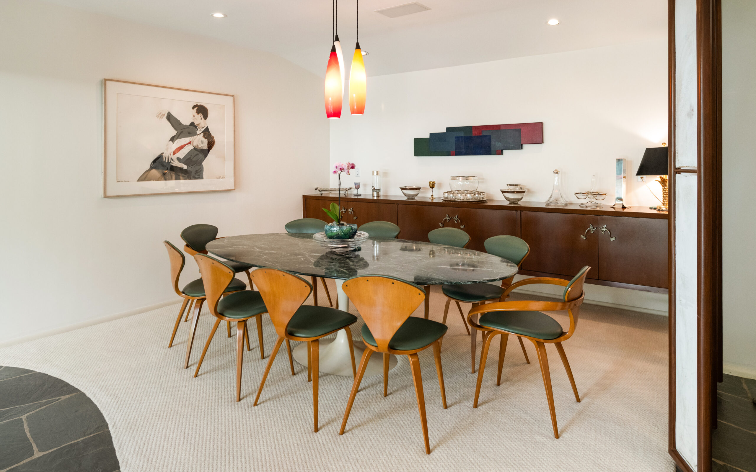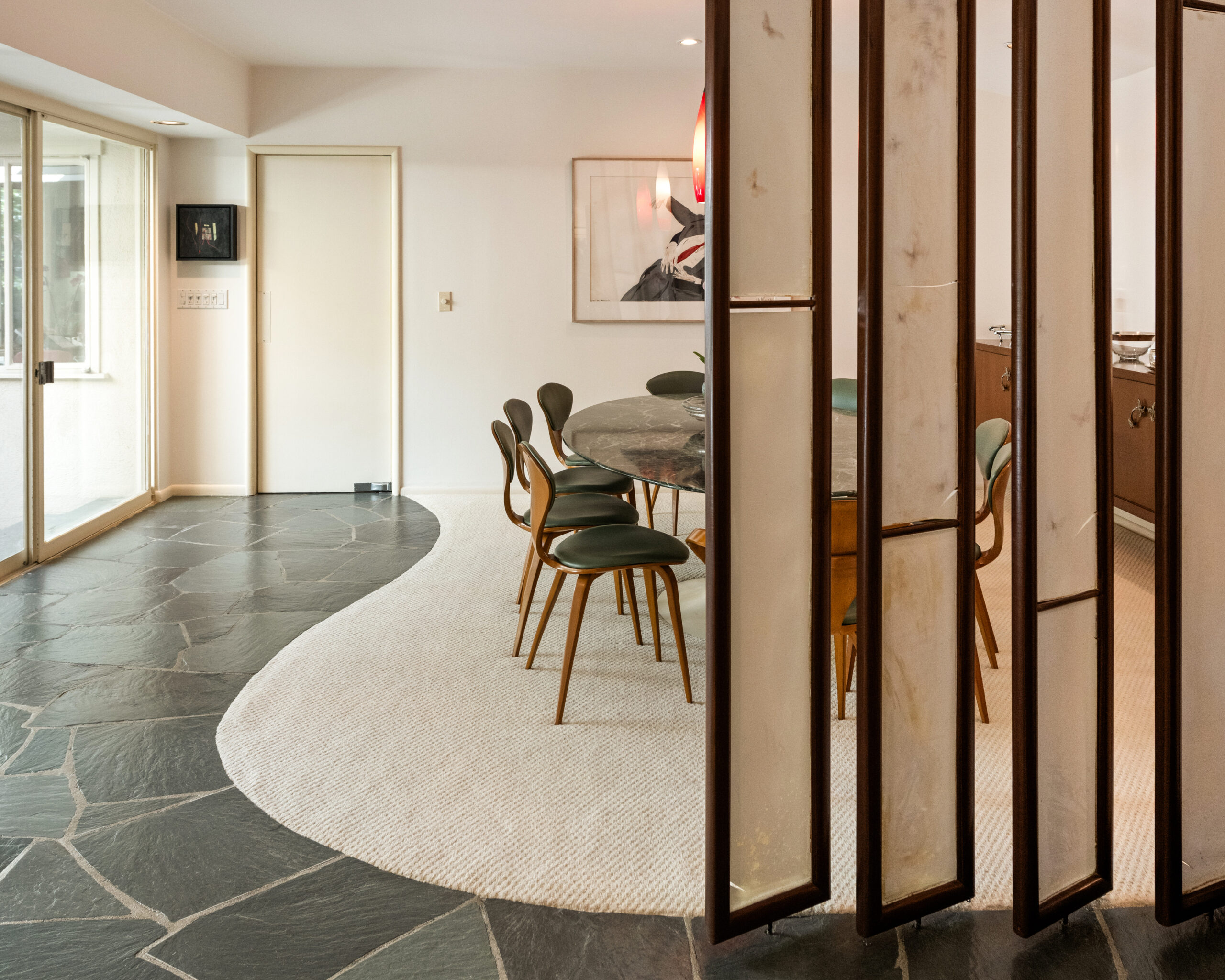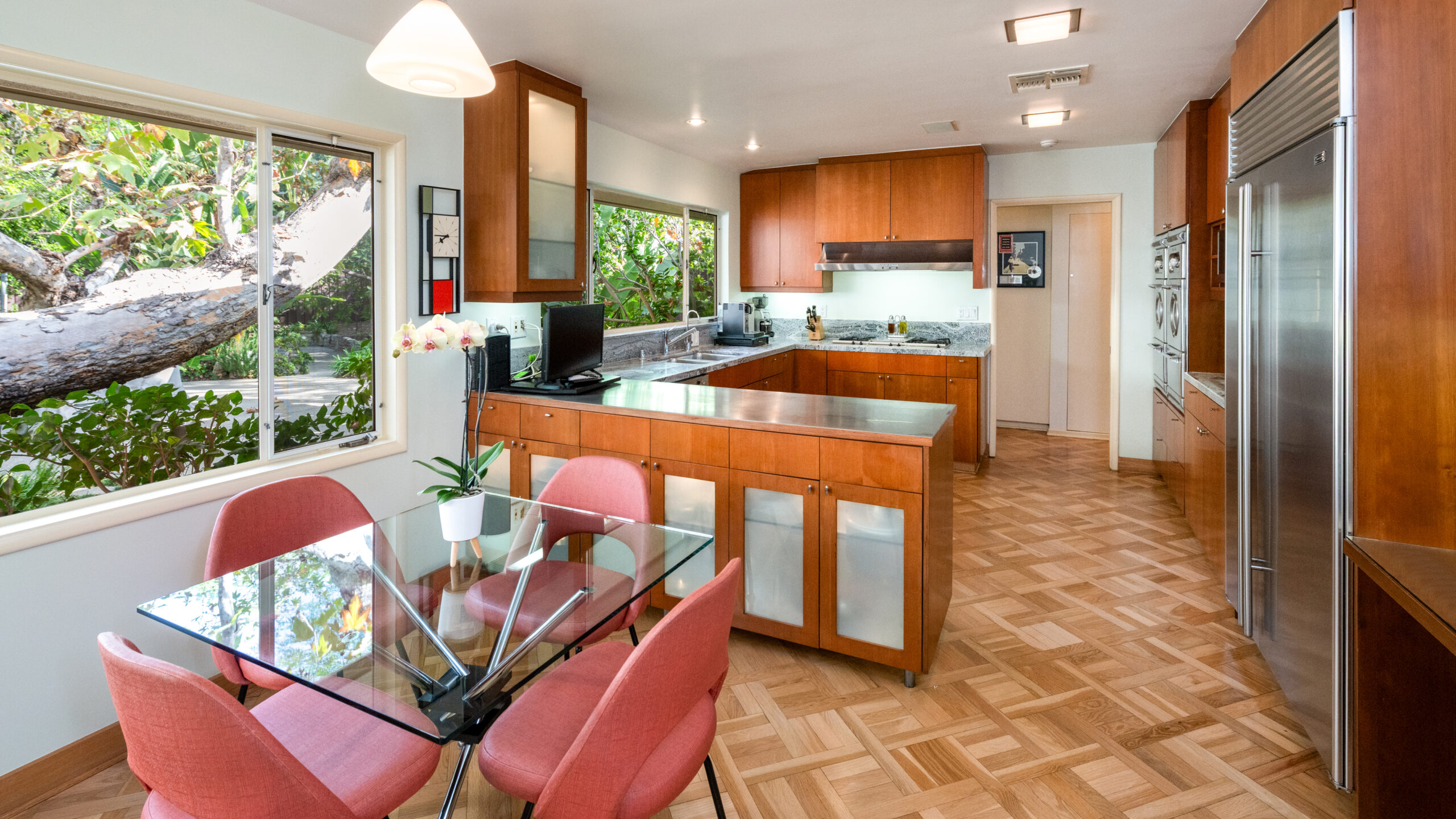 Set on the best street in Beverly Hills, this meticulous Mid-Century home seamlessly blends architecture and nature. Privately set behind mature landscaping, the home embodies classic California living with timeless appeal. Walls of glass line the main living spaces, filling the interiors with natural light and framing serene garden views throughout. A striking stone fireplace anchors the living room, complemented by rich wood accents, custom built-ins, and clean mid-century lines preserved with care. The living and dining areas flow effortlessly to multiple patios and a lush, private backyard, ideal for indoor-outdoor living and entertaining. A glass-wrapped sitting area offers a tranquil retreat overlooking the grounds, while the bedrooms enjoy peaceful garden outlooks and exceptional privacy. The expansive backyard, surrounded by mature trees, feels like a secluded oasis with room to relax, entertain, or reimagine. A rare offering on an oversized lot in Beverly Hills, this is a beautifully maintained Mid-Century classic. Elegant, private, and timeless.