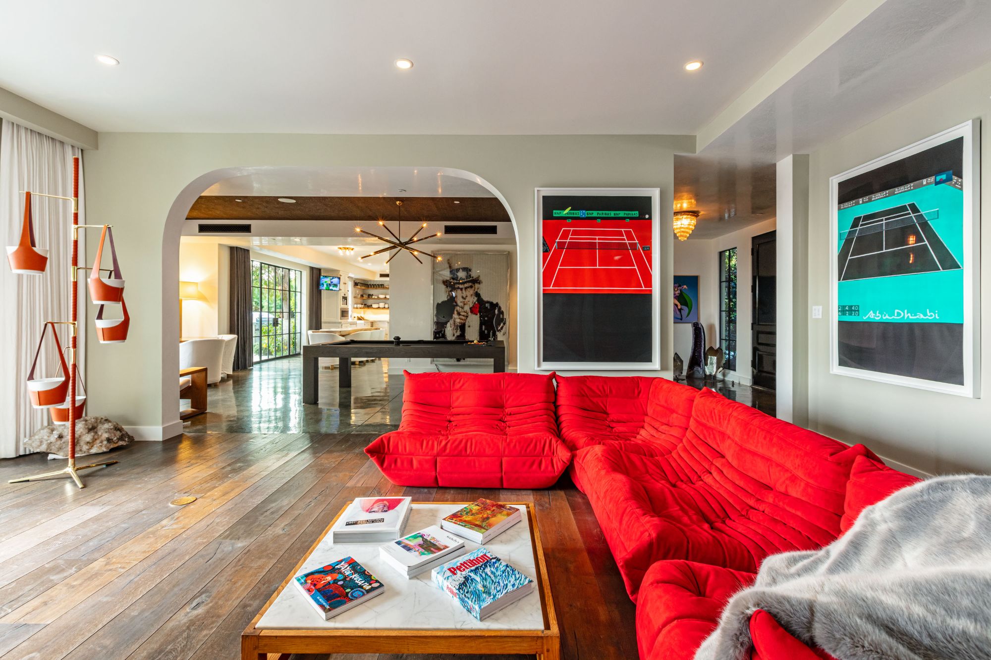On Forest Knoll, one of the most coveted streets in the Sunset Strip. Private gated celebrity compound with large motor court and a long private driveway leading to a newly completed modern farmhouse by LA’s hottest interior designer, Karan Brady. Every inch of this dream estate is crafted with the finest details and perfect for entertaining on any scale: Belgium oak floors and beam ceilings, chef’s kitchens with all the latest and greatest amenities, gorgeous entrance waterfall, state-of-the-art game & media rooms and full gym. Beyond its Steelcase® floor-to-ceiling windows is a crystal garden with infinity pool/spa that spills off the edge of the city. Primary suite with vaulted ceilings, partners’ baths and sauna overlooking the explosive views of the entire city. You don’t see houses in the Sunset Strip with such sophistication in style. This is a one-of-a-kind dream estate. Come experience it for yourself and live among the world’s most discerning elites.