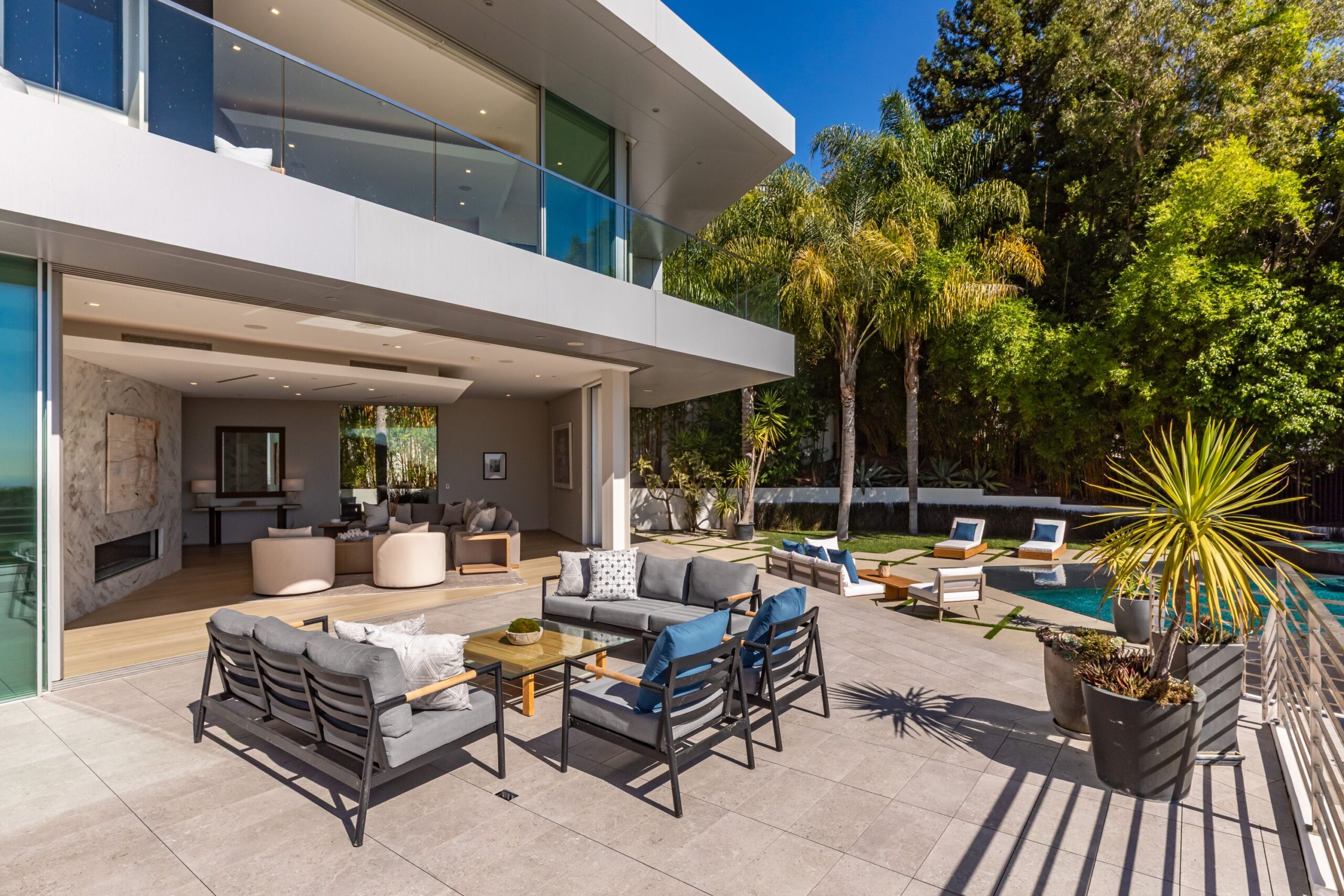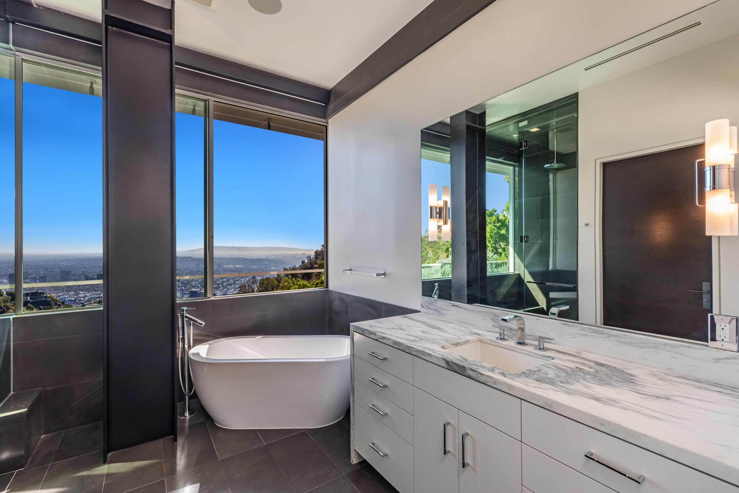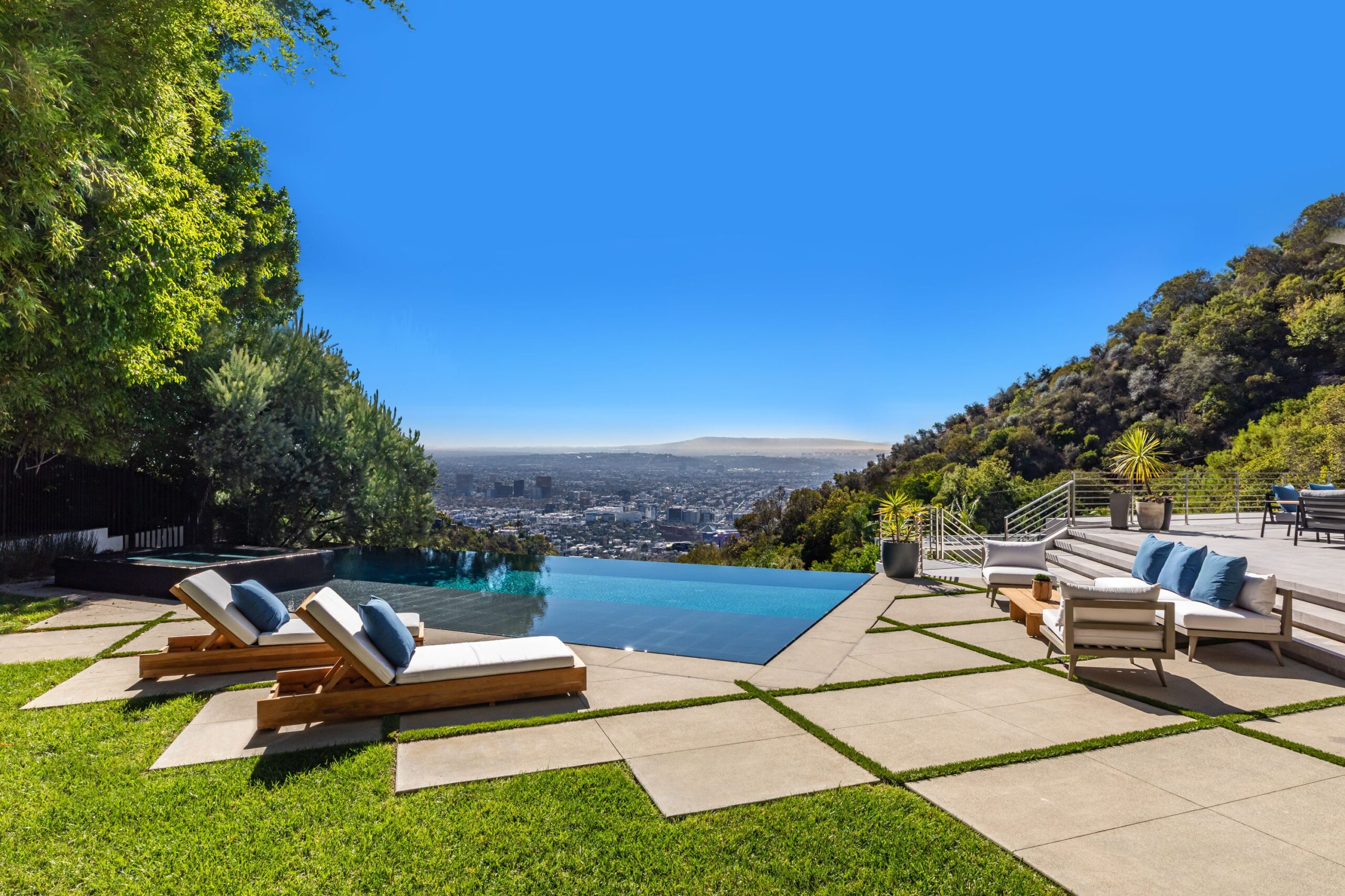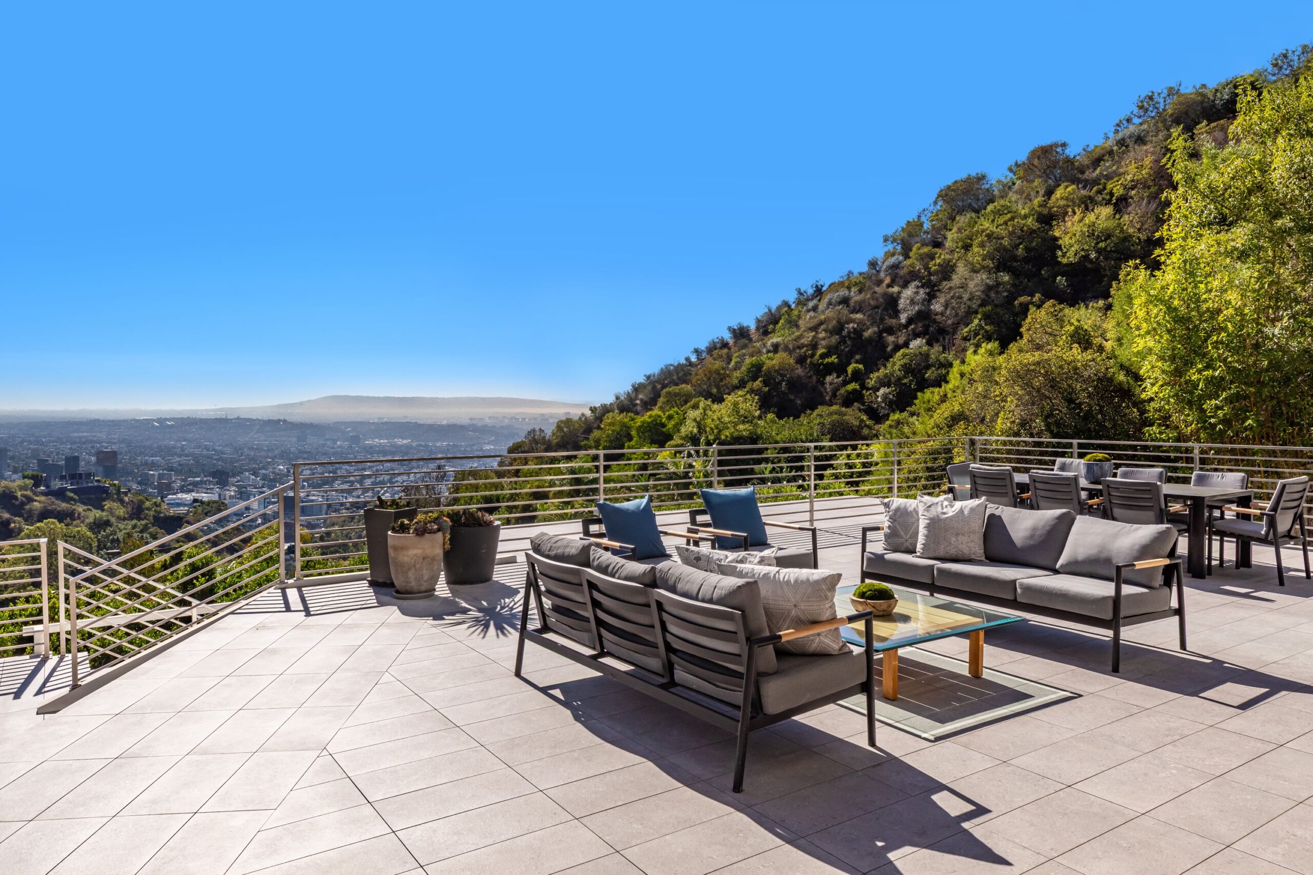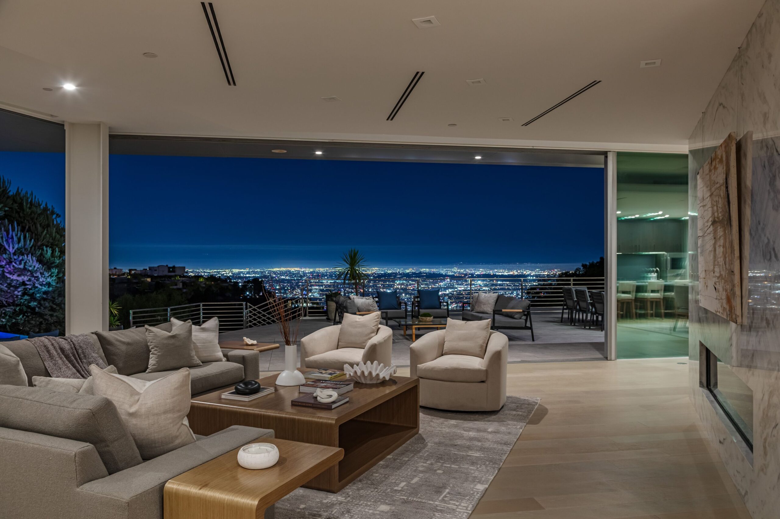 Perched at the top of Rising Glen, tucked away behind a private gate, sits this reimagined architectural estate. Spanning approximately 9,400 square feet, the 6-bedroom, 9-bathroom home blurs the line between indoor and outdoor living. Designed for entertaining on every scale, it features floor-to-ceiling glass walls that frame sweeping views from downtown to the ocean, filling each space with natural light. The open layout flows effortlessly to expansive terraces, outdoor dining areas, fireplaces, and an infinity-edge pool - creating a striking backdrop for gatherings. No detail has been overlooked - from the Poliform kitchen with Miele appliances to the elevator, gym, private theater, and temperature-controlled wine area. Every finish reflects thoughtful design, beautiful craftsmanship, and top-of-the-line construction throughout. With a 3-car garage, generous motor court parking, and total privacy just minutes from the heart of the city, this is a true modern sanctuary in the hills.