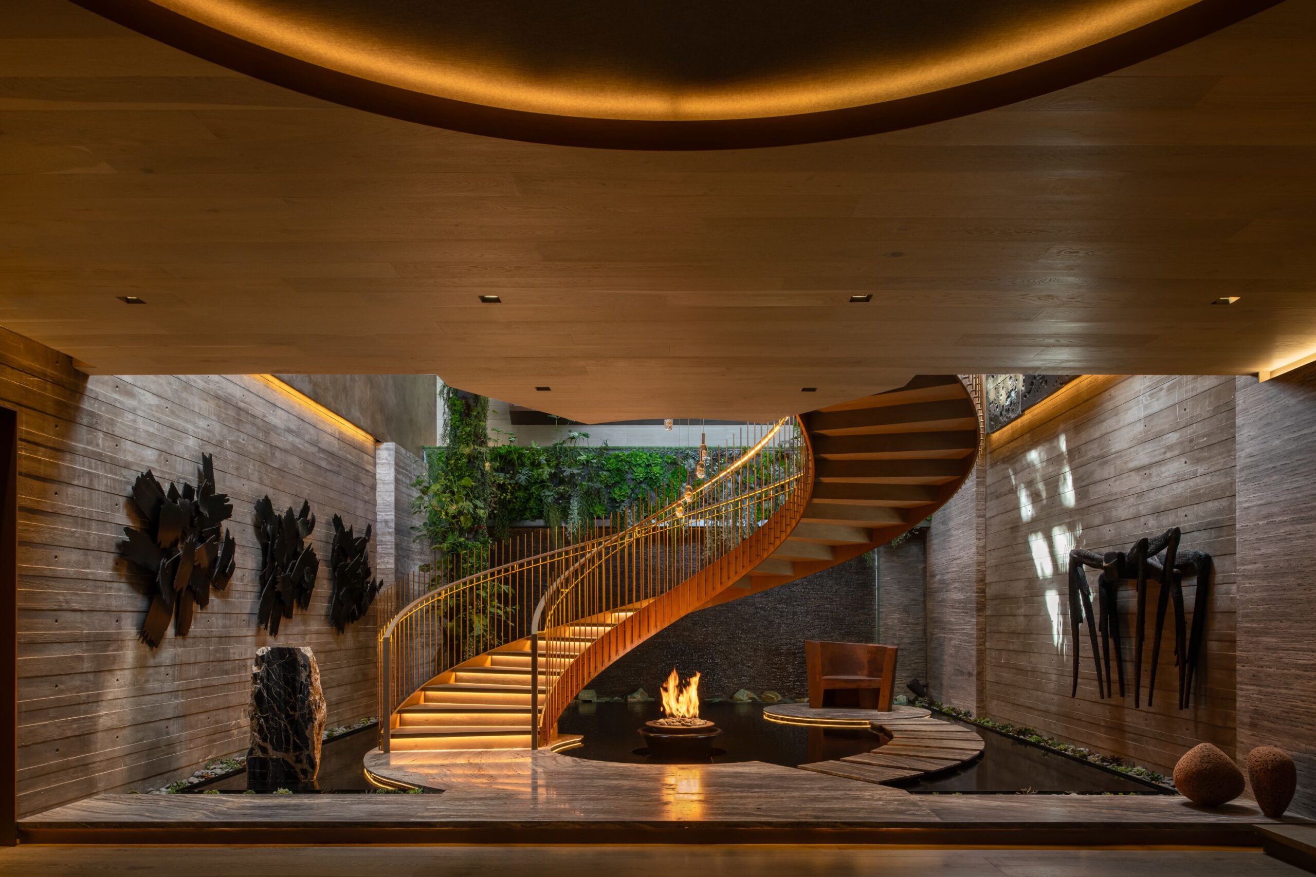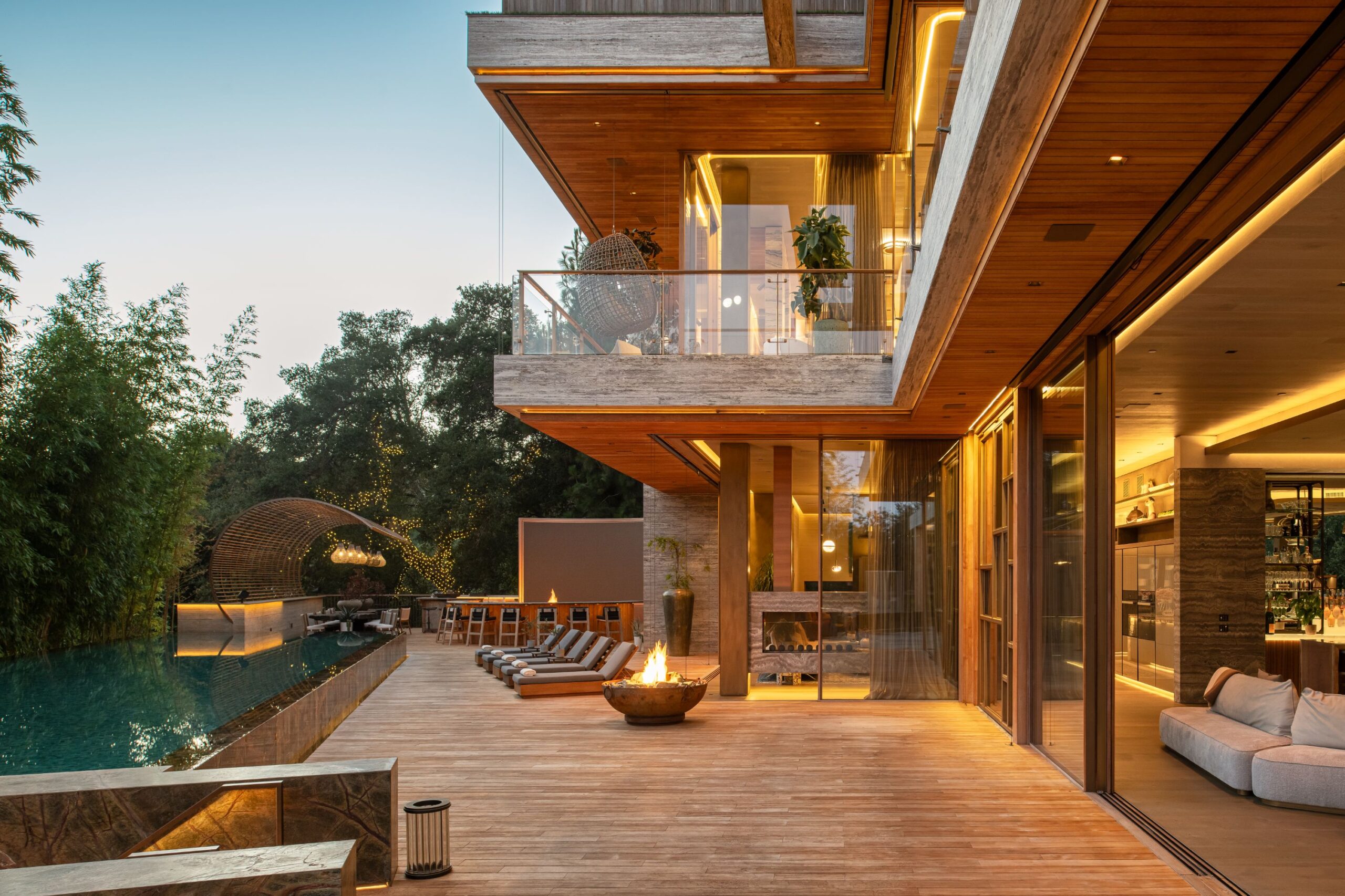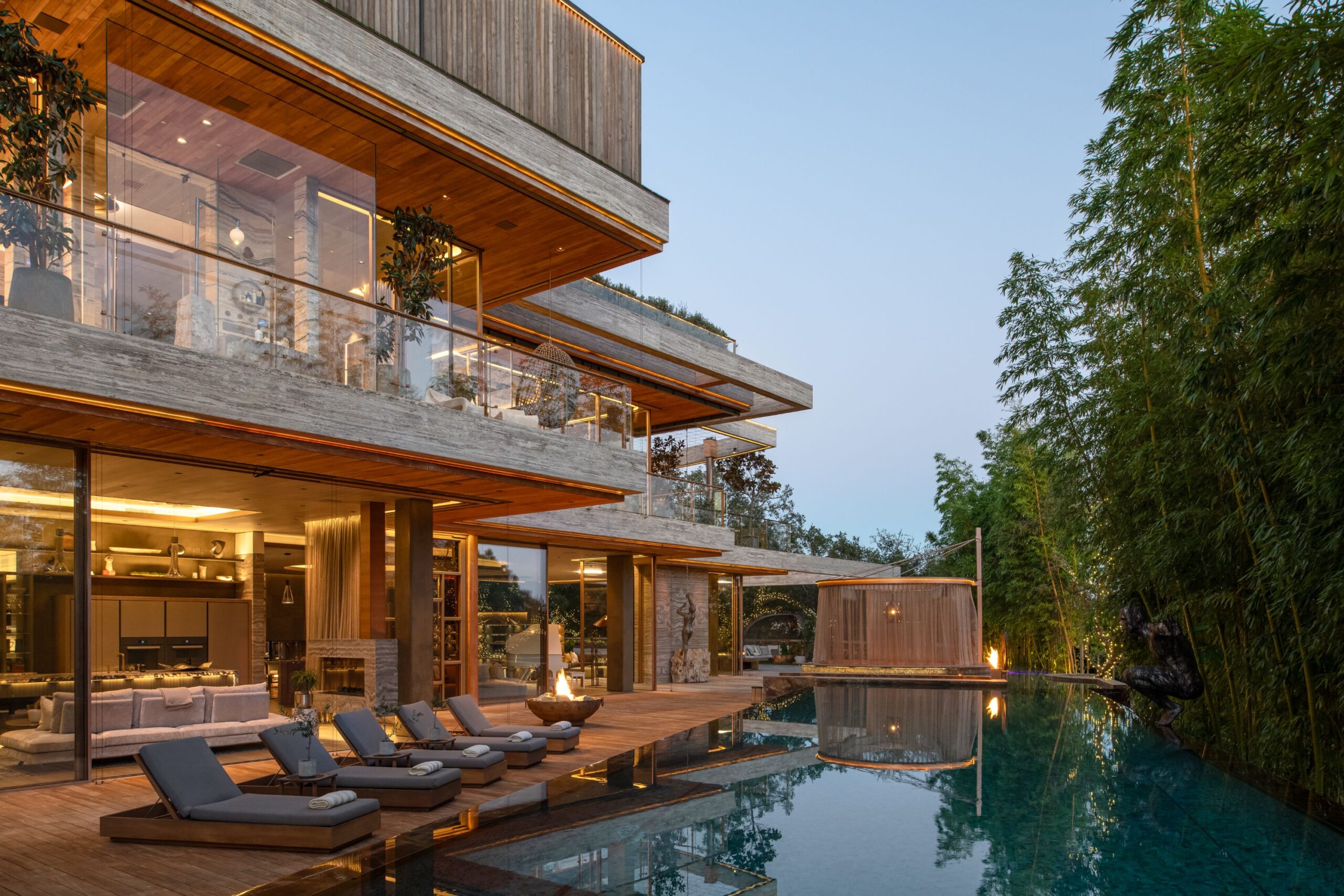 Architecture as Sculpture. A rare fusion of location, art, and cutting-edge technology, 607 Siena is a brand-new masterwork by renowned visionary Ardie Tavangarian, designed and built by ARYA Group Inc., widely regarded as the preeminent Los Angeles design team of our time. Designed as a full-sensory experience, this architectural gem is unparalleled in the city and perhaps in the country. Inspired by nature, the residence is enveloped in natural materials, including hand-selected teak and stone. Exceptional features include: 30-foot walls of glass that glide open with effortless precision, a four-story floating staircase suspended above fire and water elements, and an epic primary suite with a retractable roof for stargazing. Additional highlights encompass a 22-seat cinema, a world-class wellness center with a complete water-journey and the latest treatment modalities, a car gallery with adjoining jazz bar, and a professional chef's kitchen on par with the finest restaurants. A double-height office library with adjacent tearoom offers a serene workspace, while the rooftop terrace - with its second pool and expansive entertaining areas - captures panoramic views of the city and the Bel Air Country Club. 607 Siena is a destination unto itself: a private resort, a haven for entertaining, and a sanctuary of world-class design. Shown exclusively to pre-qualified buyers.