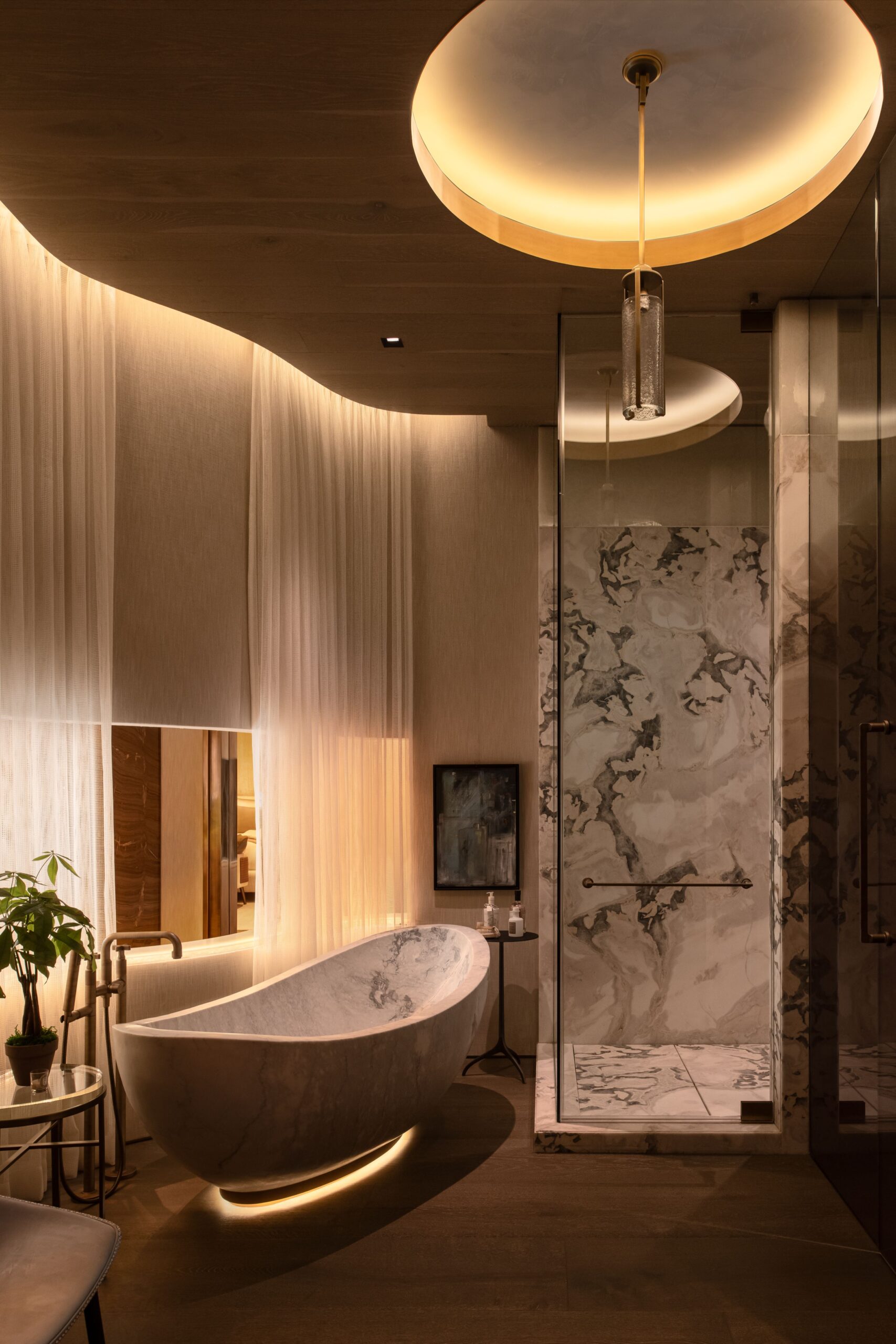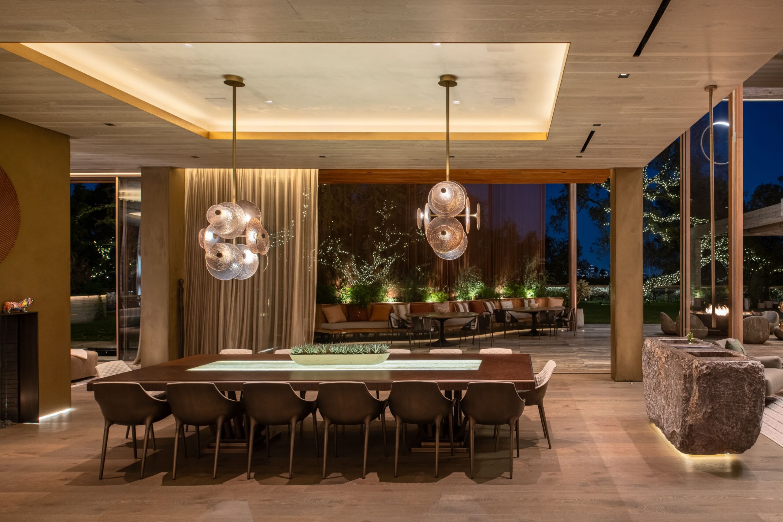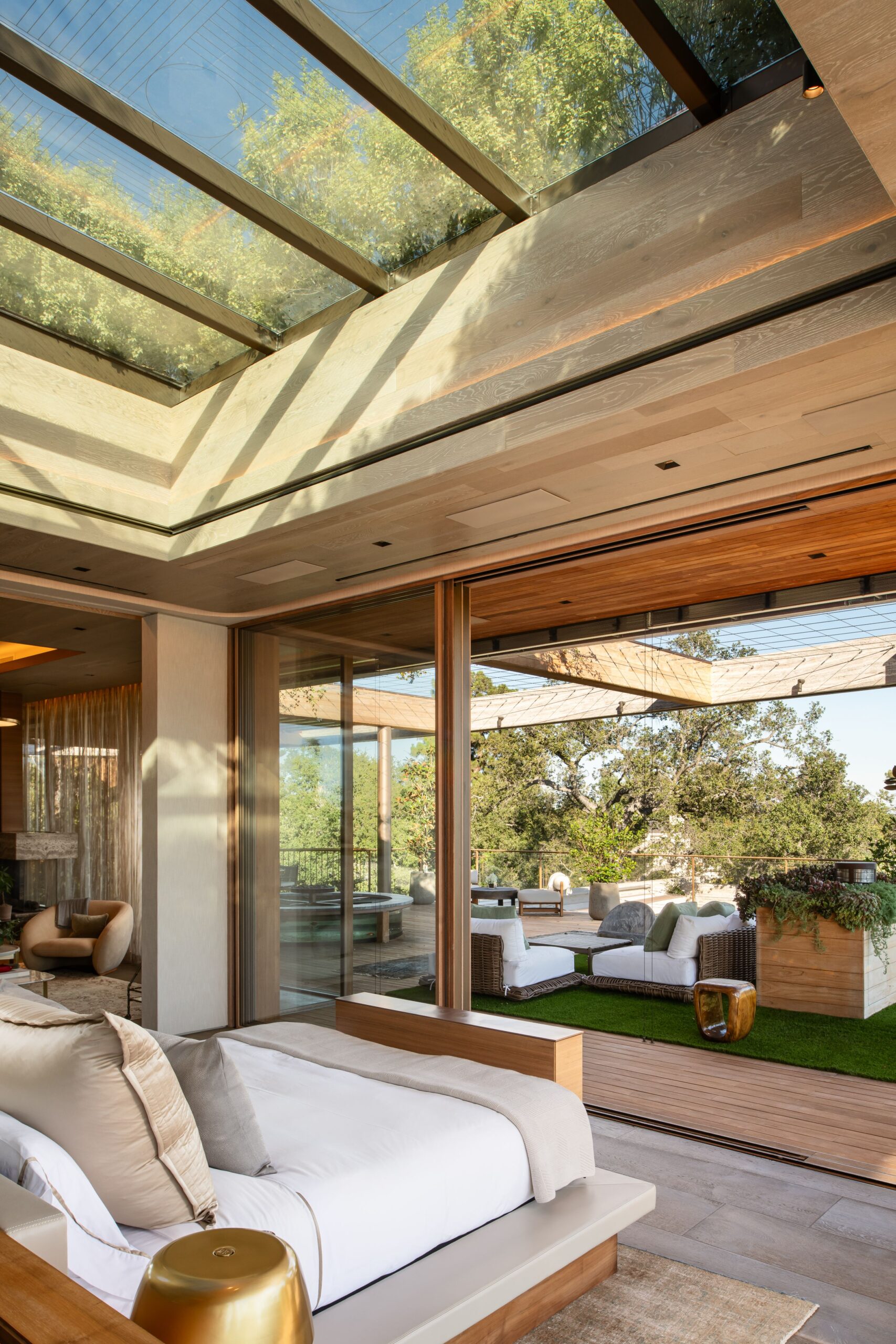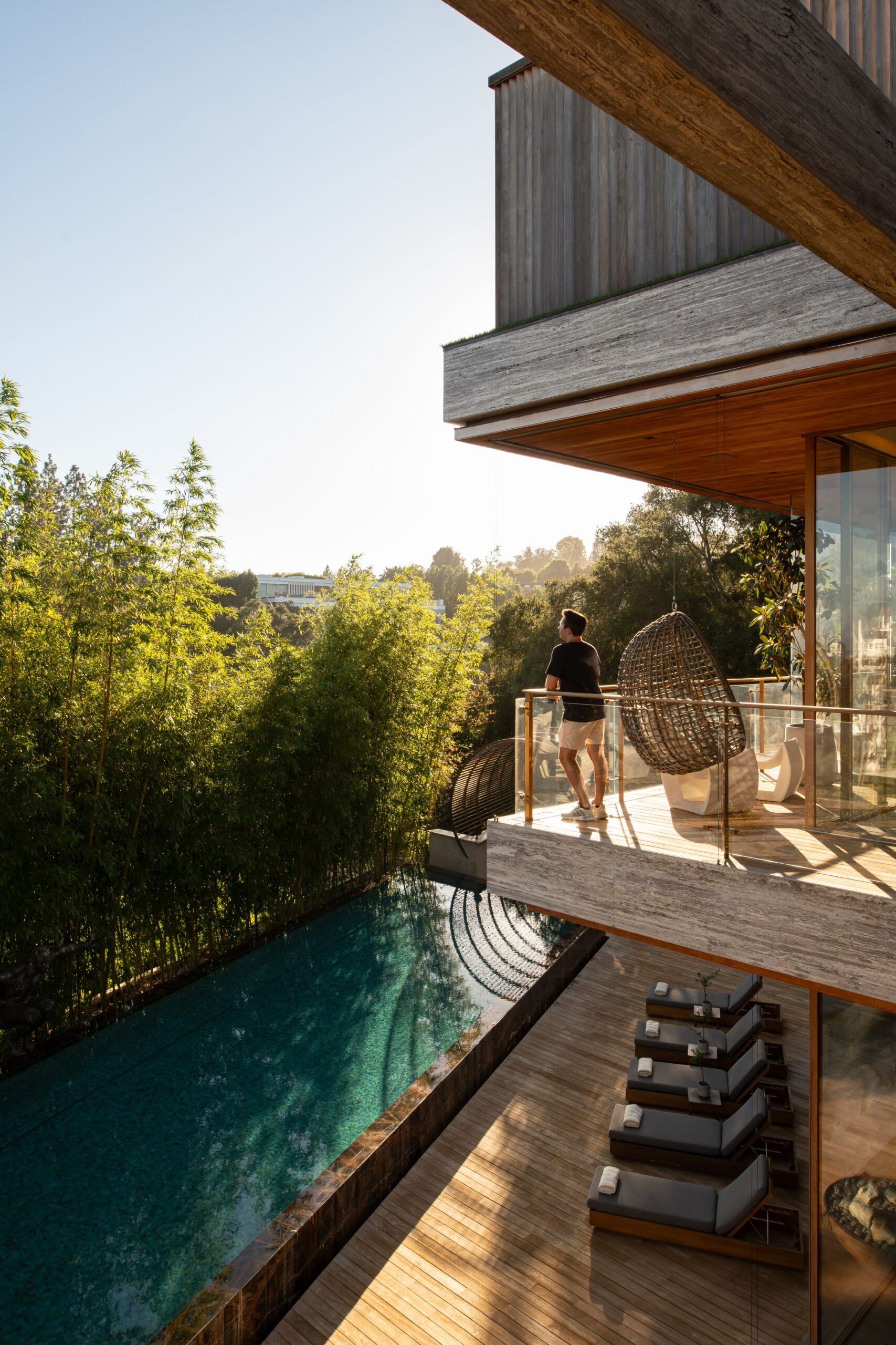 Architecture as Sculpture. A rare fusion of location, art, and cutting-edge technology, 607 Siena is a brand-new masterwork by renowned visionary Ardie Tavangarian, designed and built by ARYA Group Inc., widely regarded as the preeminent Los Angeles design team of our time. Designed as a full-sensory experience, this architectural gem is unparalleled in the city and perhaps in the country. Inspired by nature, the residence is enveloped in natural materials, including hand-selected teak and stone. Exceptional features include: 30-foot walls of glass that glide open with effortless precision, a four-story floating staircase suspended above fire and water elements, and an epic primary suite with a retractable roof for stargazing. Additional highlights encompass a 22-seat cinema, a world-class wellness center with a complete water-journey and the latest treatment modalities, a car gallery with adjoining jazz bar, and a professional chef's kitchen on par with the finest restaurants. A double-height office library with adjacent tearoom offers a serene workspace, while the rooftop terrace - with its second pool and expansive entertaining areas - captures panoramic views of the city and the Bel Air Country Club. 607 Siena is a destination unto itself: a private resort, a haven for entertaining, and a sanctuary of world-class design. Shown exclusively to pre-qualified buyers.