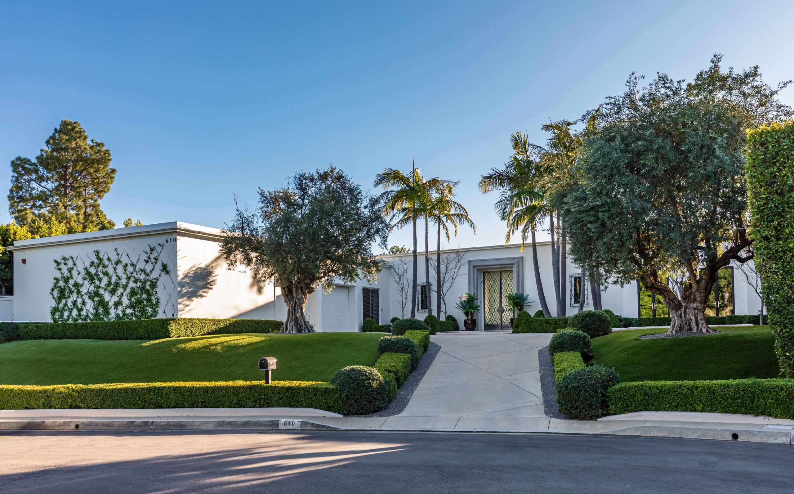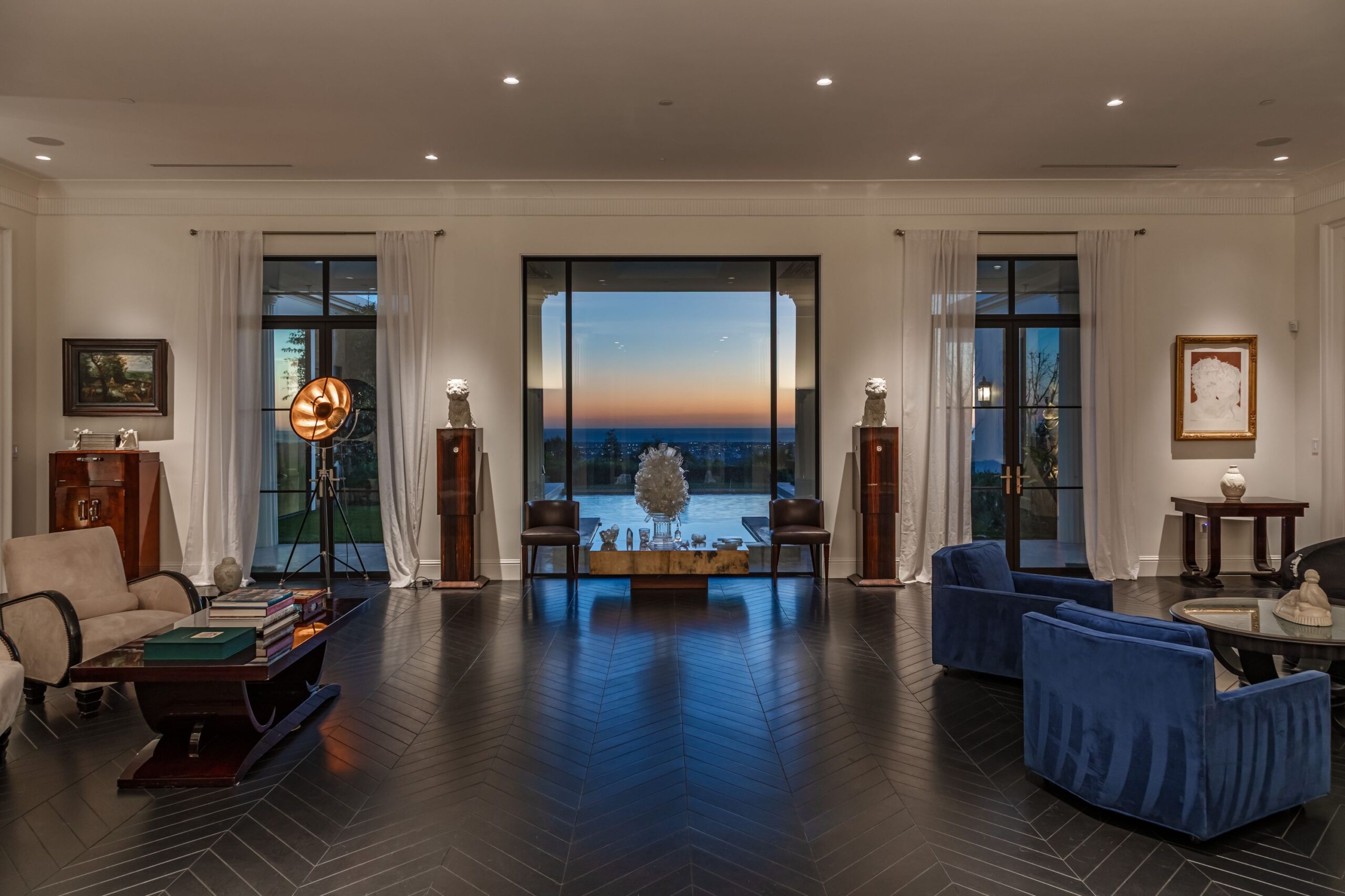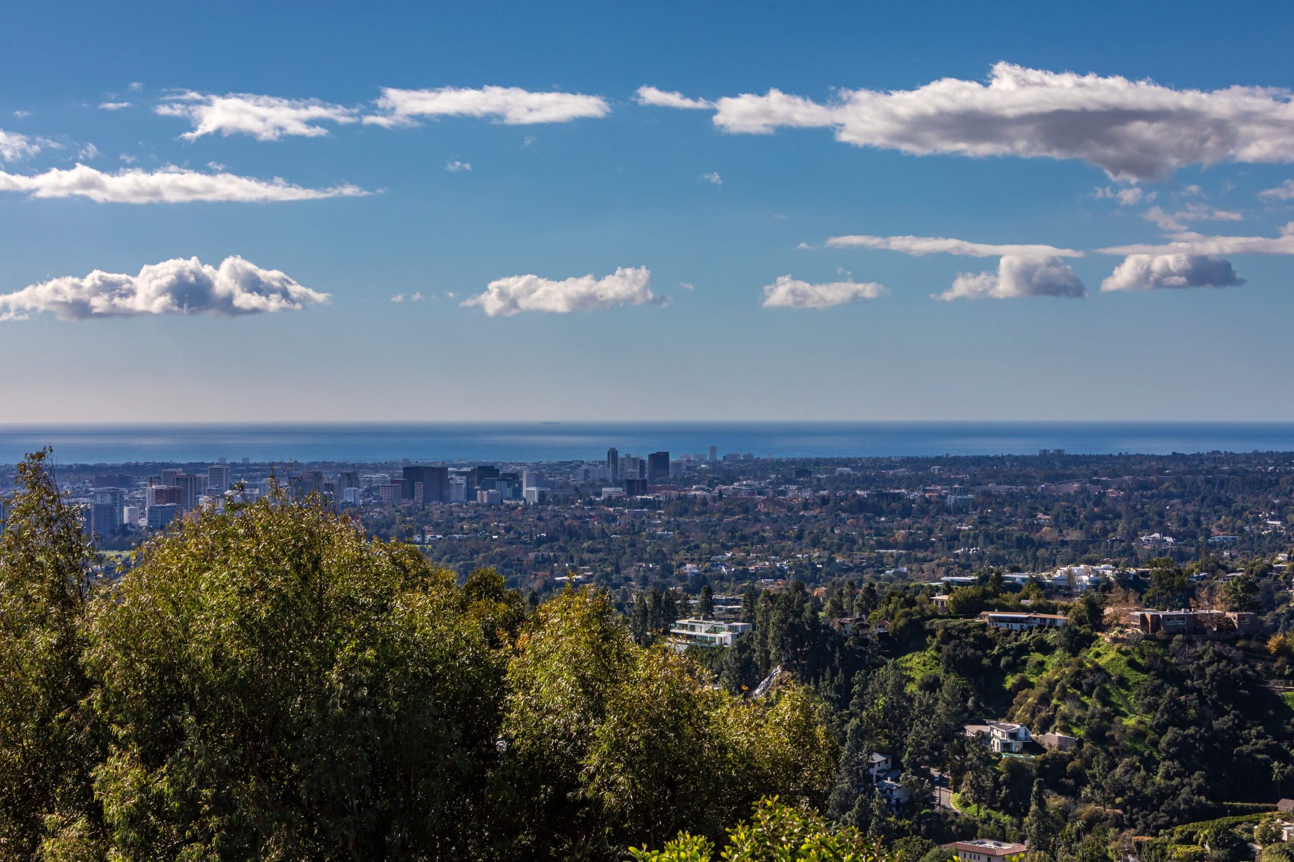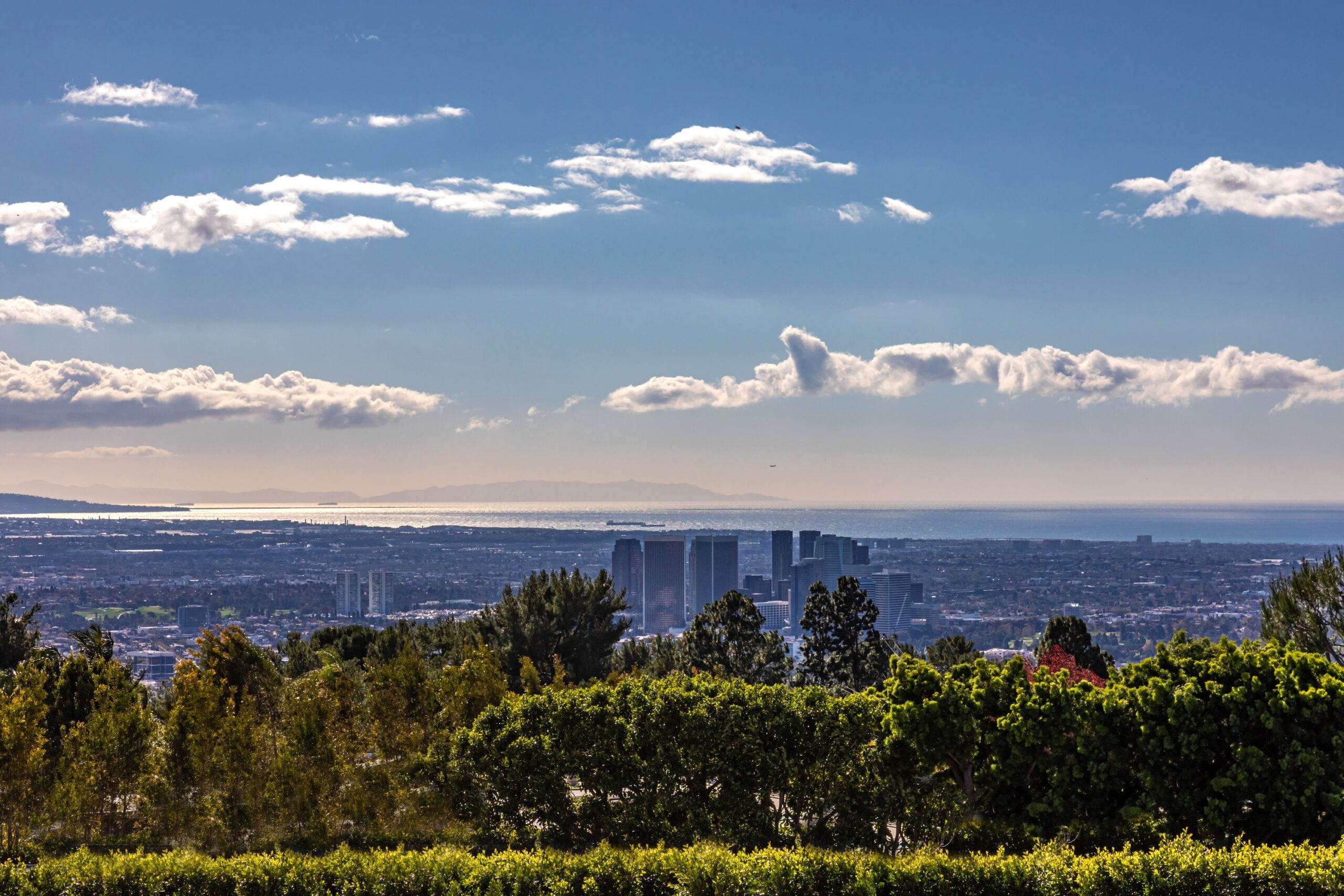Set on a tranquil cul-de-sac in the prestigious Trousdale Estates, this rare two story residence occupies a promontory lot with sweeping, unobstructed views spanning the city, canyon, and Pacific Ocean. An unusually wide frontage and expansive grounds, flanked by rare olive trees, & a private orchard producing seasonal fruits and vegetables creating a sense of privacy. Designed with a refined sense of scale, the open concept layout features soaring ceilings, & chevron patterned wood floors. A dramatic entry unfolds into light filled living and entertaining spaces, anchored by a chef's kitchen and a luxurious primary suite. Walls of glass reveal an infinity edge outdoor pool with breathtaking ocean views, of the city below. The primary bathroom has an indoor pool that delivers a rare resort experience within the home. Casa Alta Tierra is an estate of seclusion and distinction, set against a striking panoramic backdrop.