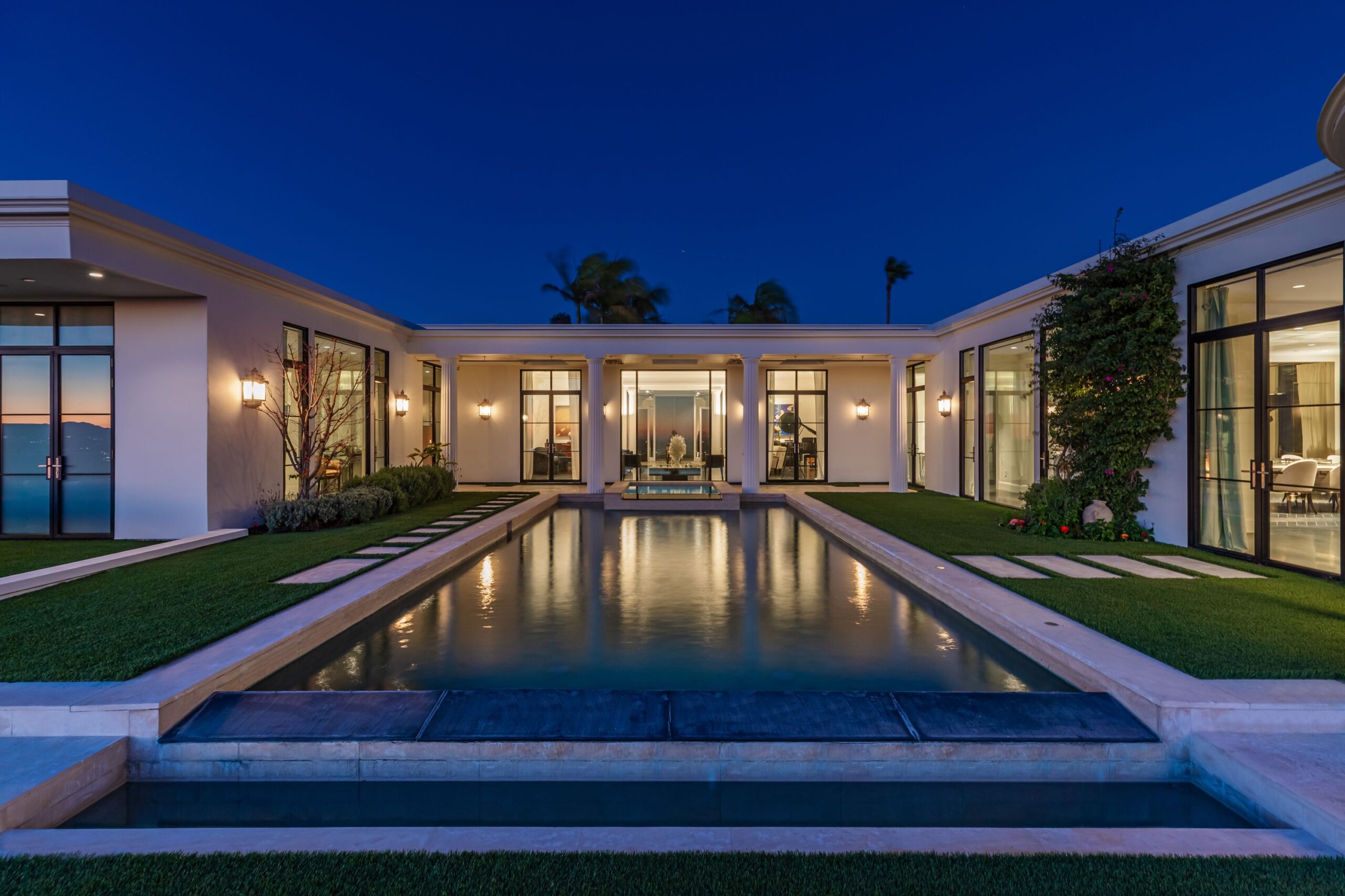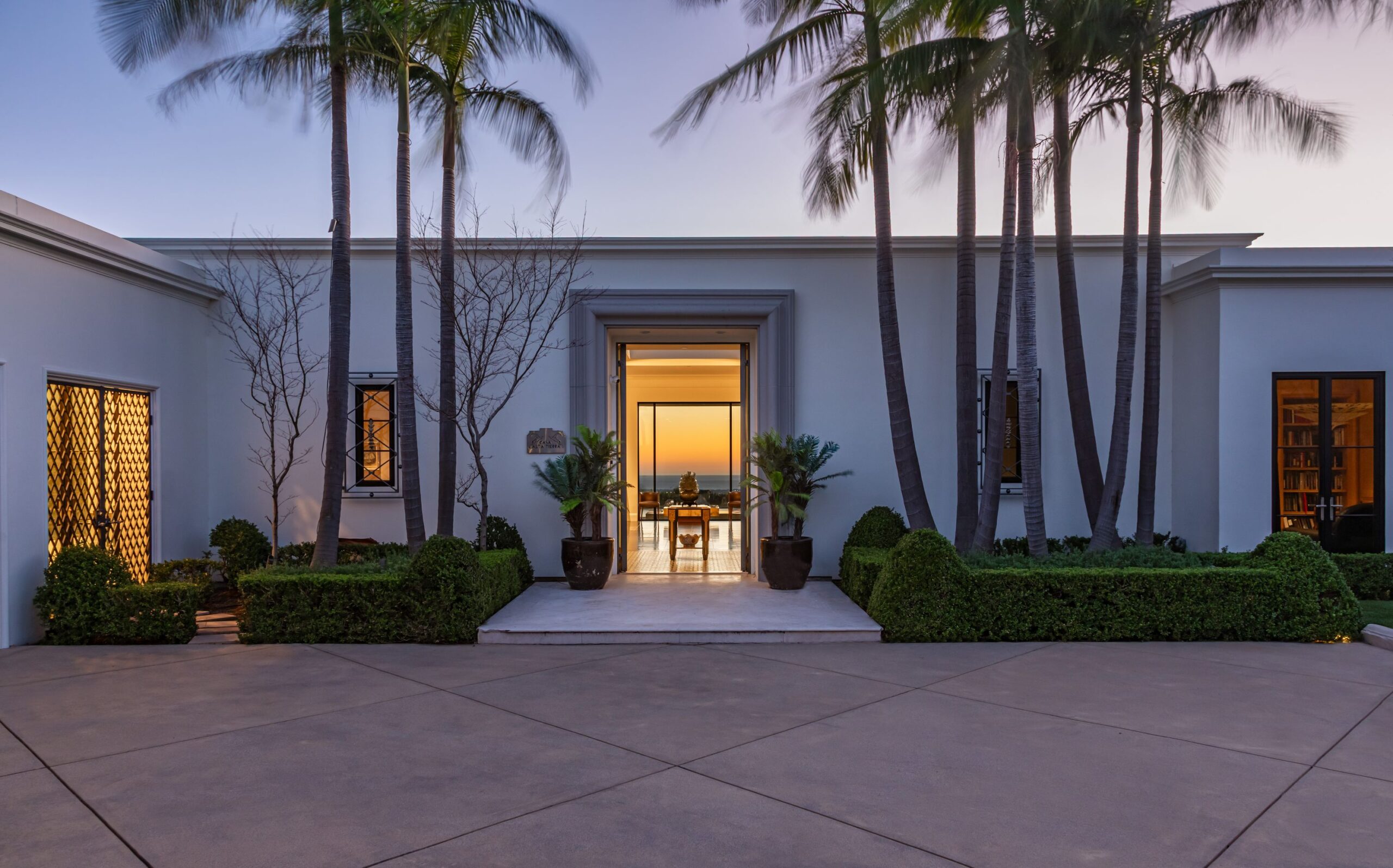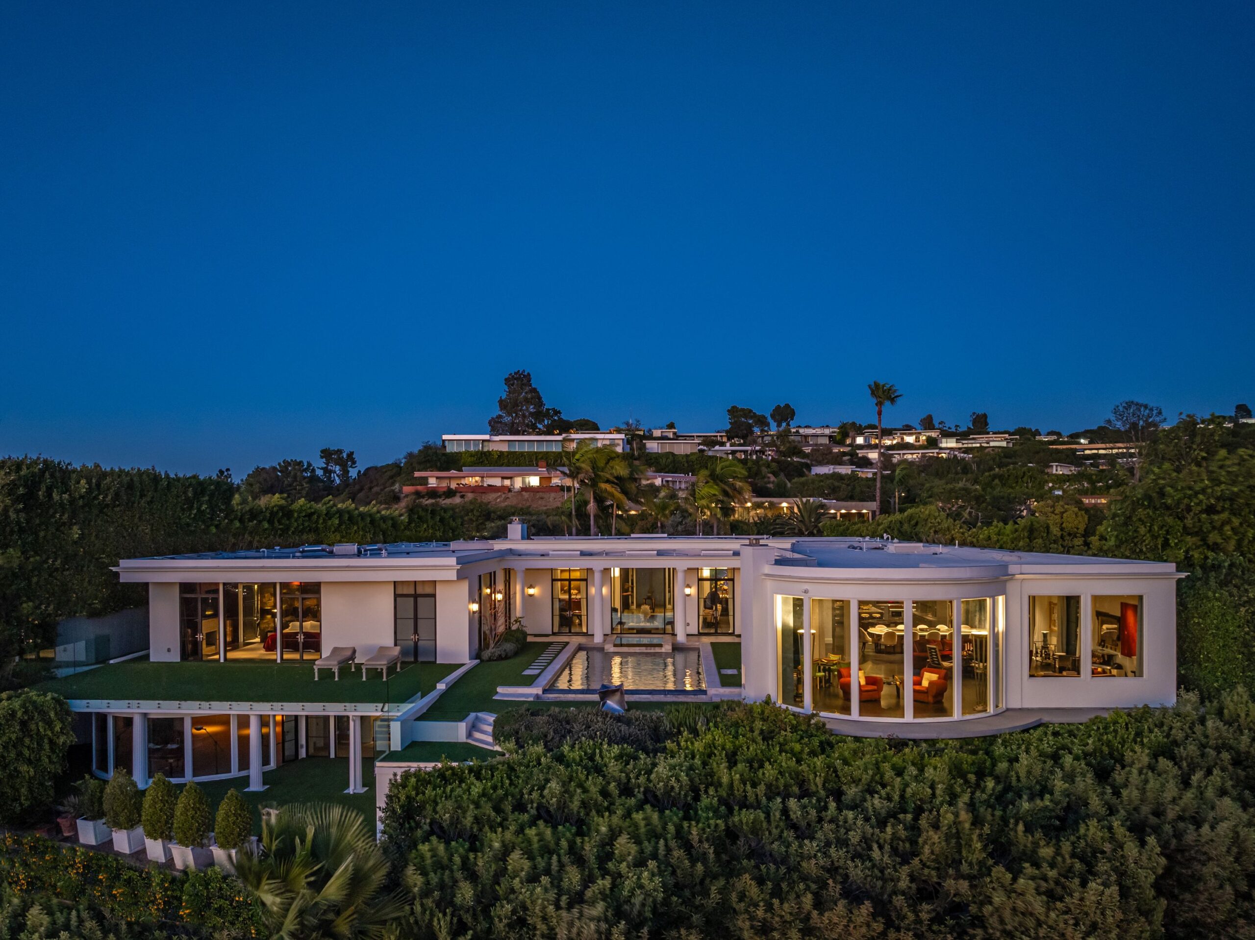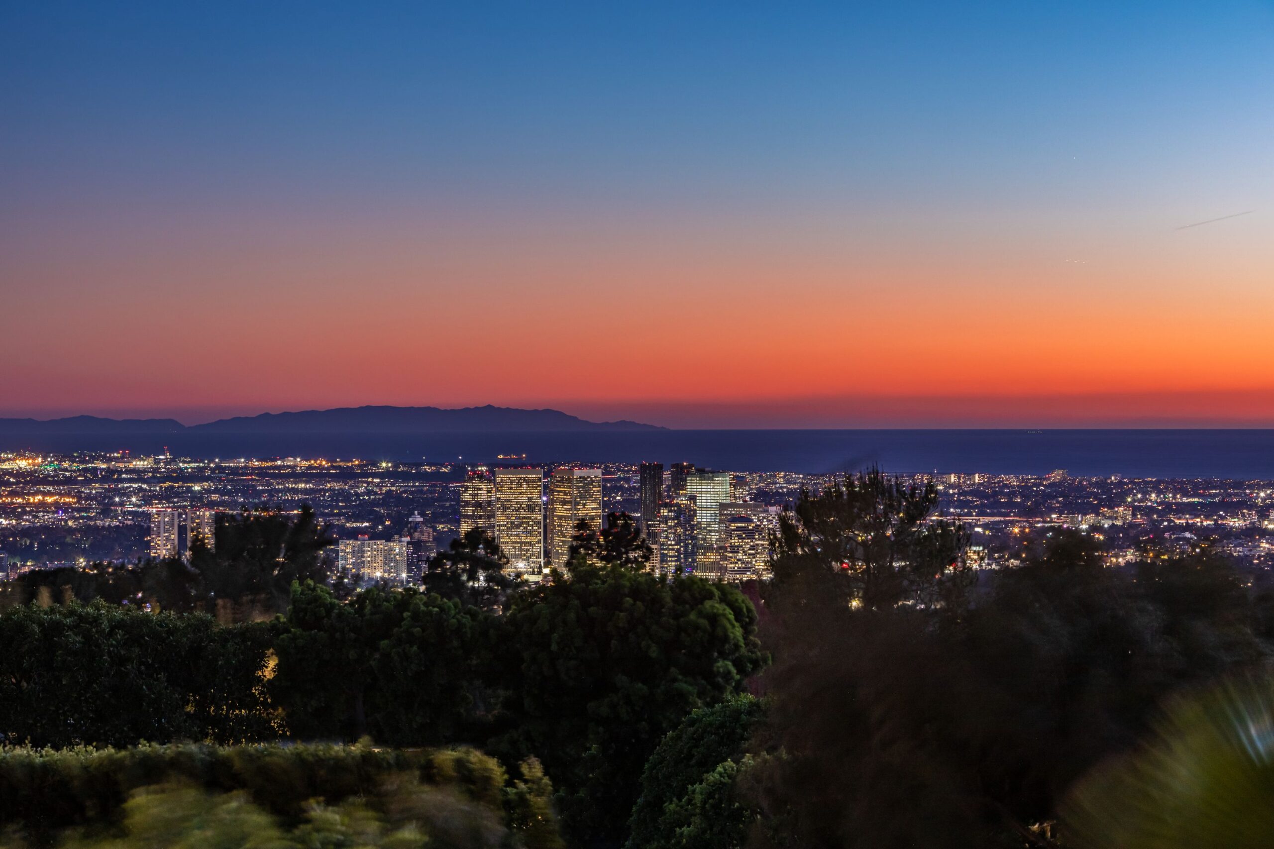 Set on a tranquil cul-de-sac in the prestigious Trousdale Estates, this rare two story residence occupies a promontory lot with sweeping, unobstructed views spanning the city, canyon, and Pacific Ocean. An unusually wide frontage and expansive grounds, flanked by rare olive trees, & a private orchard producing seasonal fruits and vegetables creating a sense of privacy. Designed with a refined sense of scale, the open concept layout features soaring ceilings, & chevron patterned wood floors. A dramatic entry unfolds into light filled living and entertaining spaces, anchored by a chef's kitchen and a luxurious primary suite. Walls of glass reveal an infinity edge outdoor pool with breathtaking ocean views, of the city below. The primary bathroom has an indoor pool that delivers a rare resort experience within the home. Casa Alta Tierra is an estate of seclusion and distinction, set against a striking panoramic backdrop.