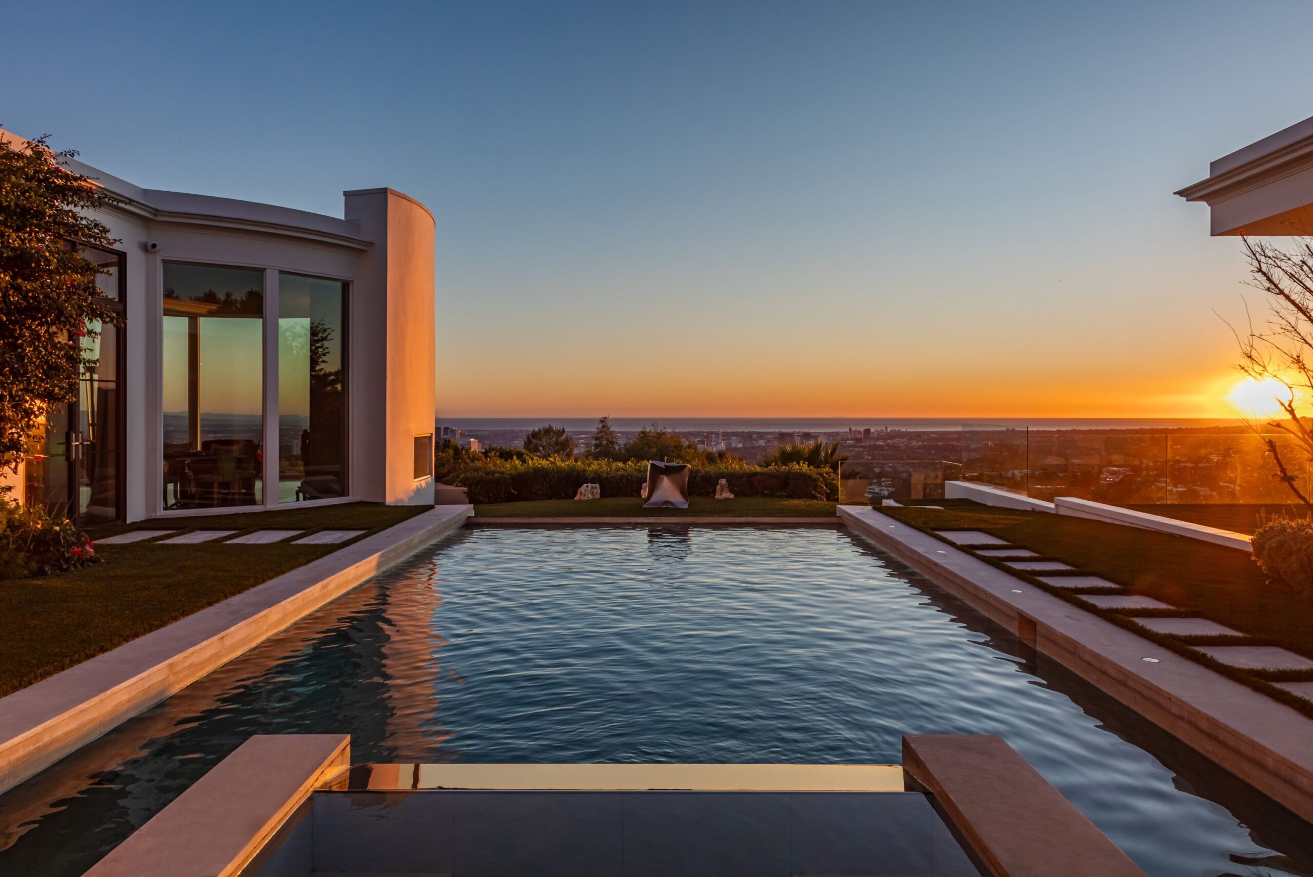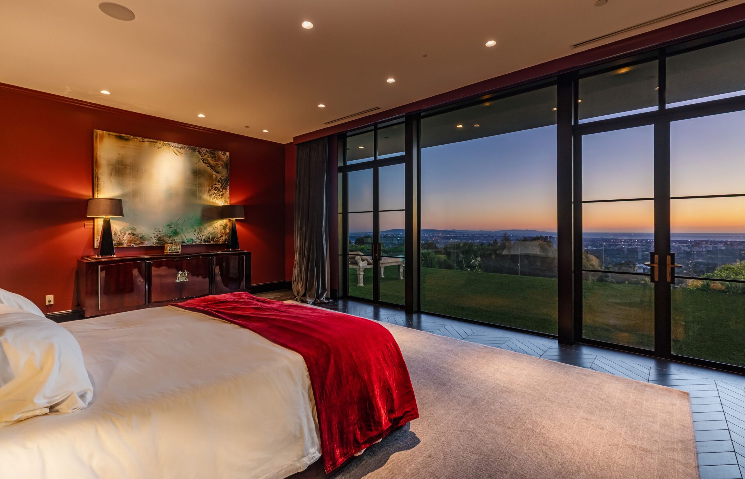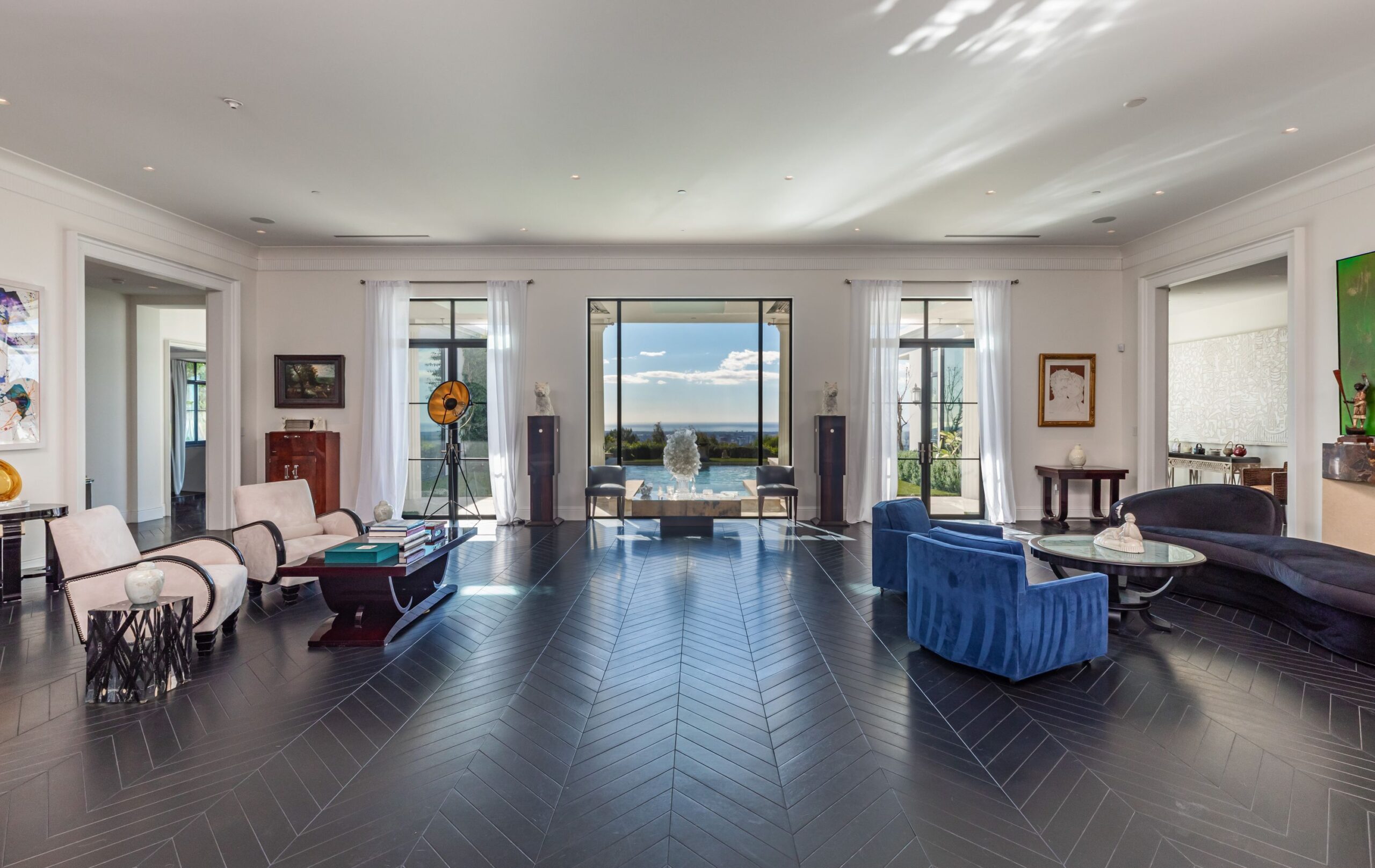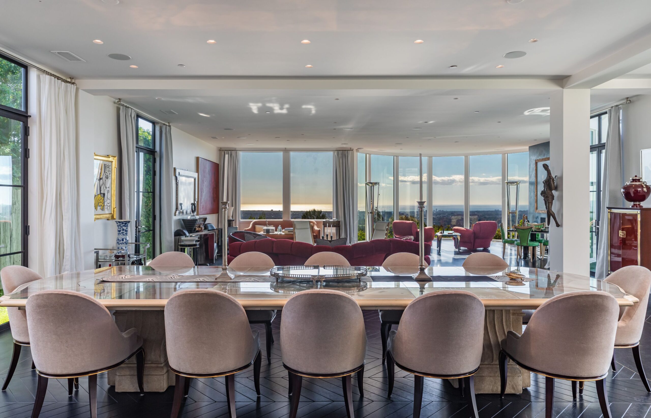 Set on a tranquil cul-de-sac in the prestigious Trousdale Estates, this rare two story residence occupies a promontory lot with sweeping, unobstructed views spanning the city, canyon, and Pacific Ocean. An unusually wide frontage and expansive grounds, flanked by rare olive trees, & a private orchard producing seasonal fruits and vegetables creating a sense of privacy. Designed with a refined sense of scale, the open concept layout features soaring ceilings, & chevron patterned wood floors. A dramatic entry unfolds into light filled living and entertaining spaces, anchored by a chef's kitchen and a luxurious primary suite. Walls of glass reveal an infinity edge outdoor pool with breathtaking ocean views, of the city below. The primary bathroom has an indoor pool that delivers a rare resort experience within the home. Casa Alta Tierra is an estate of seclusion and distinction, set against a striking panoramic backdrop.