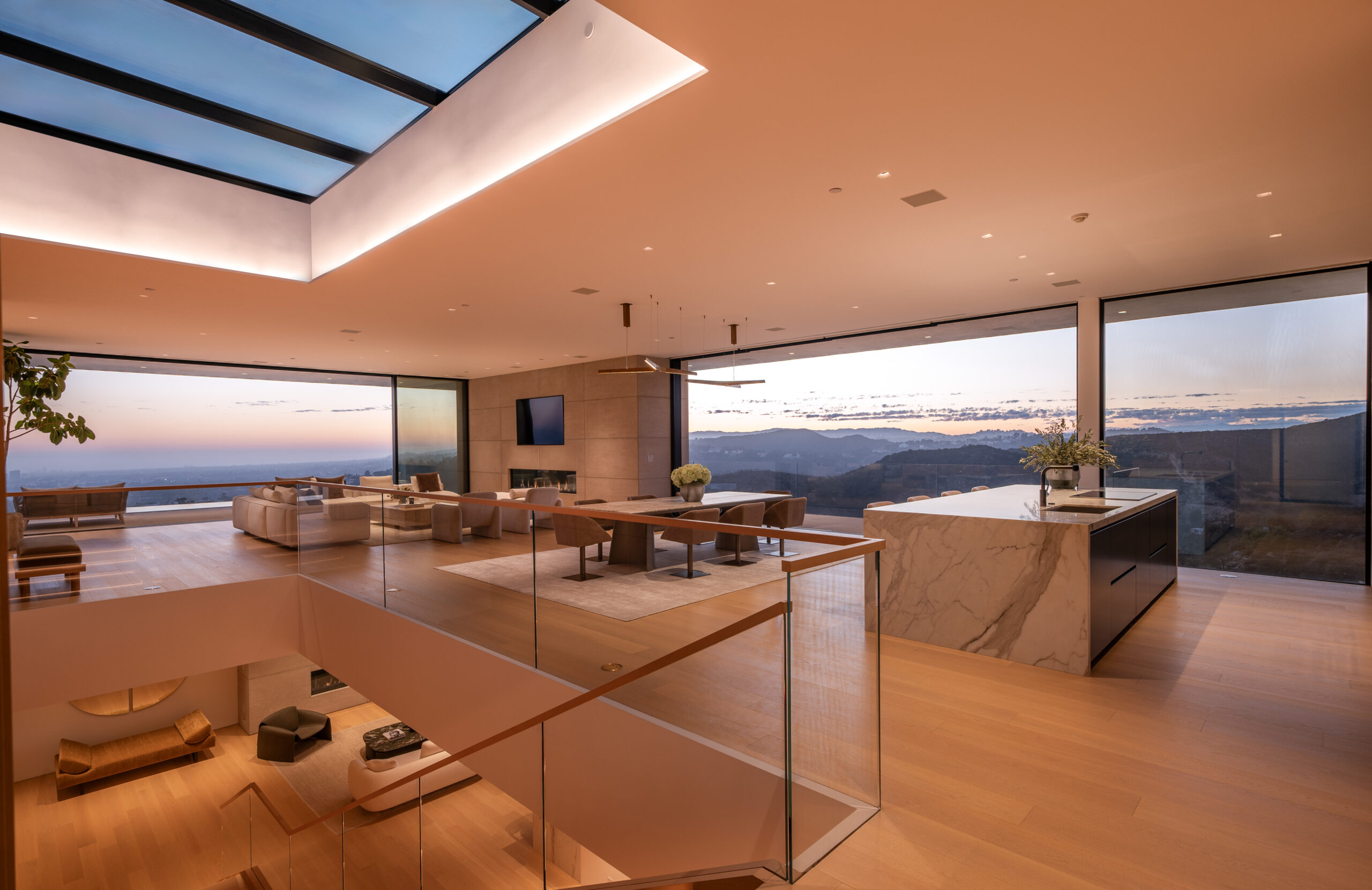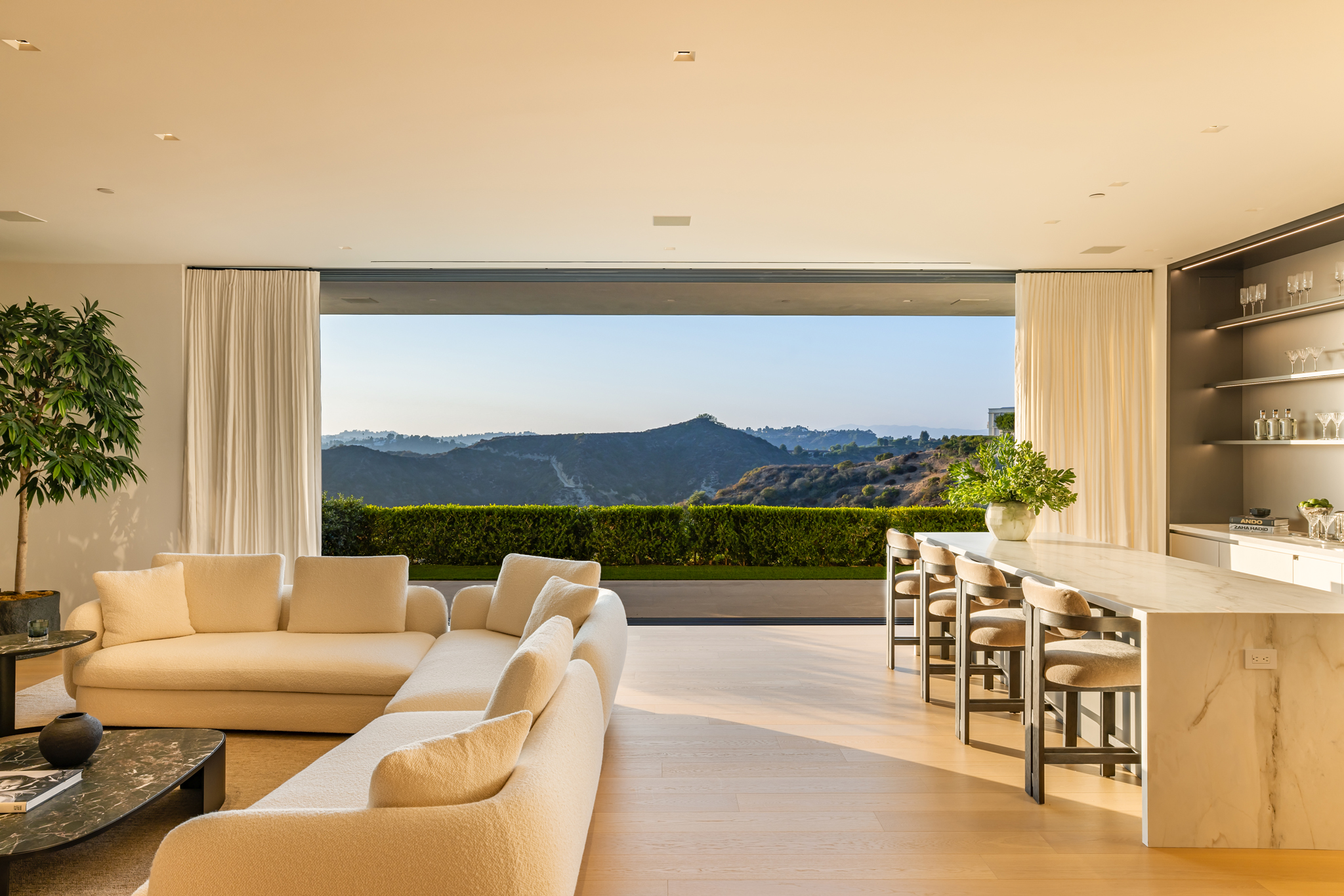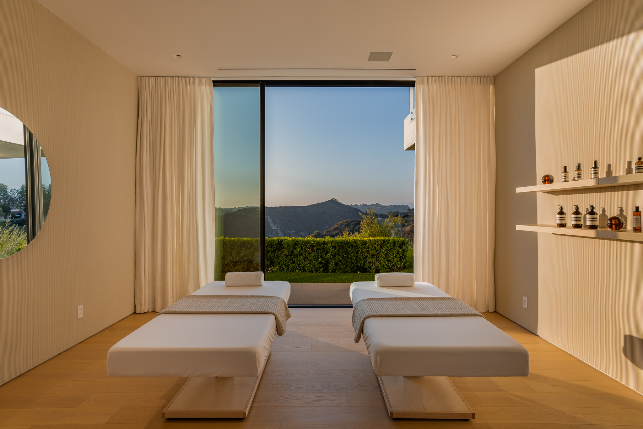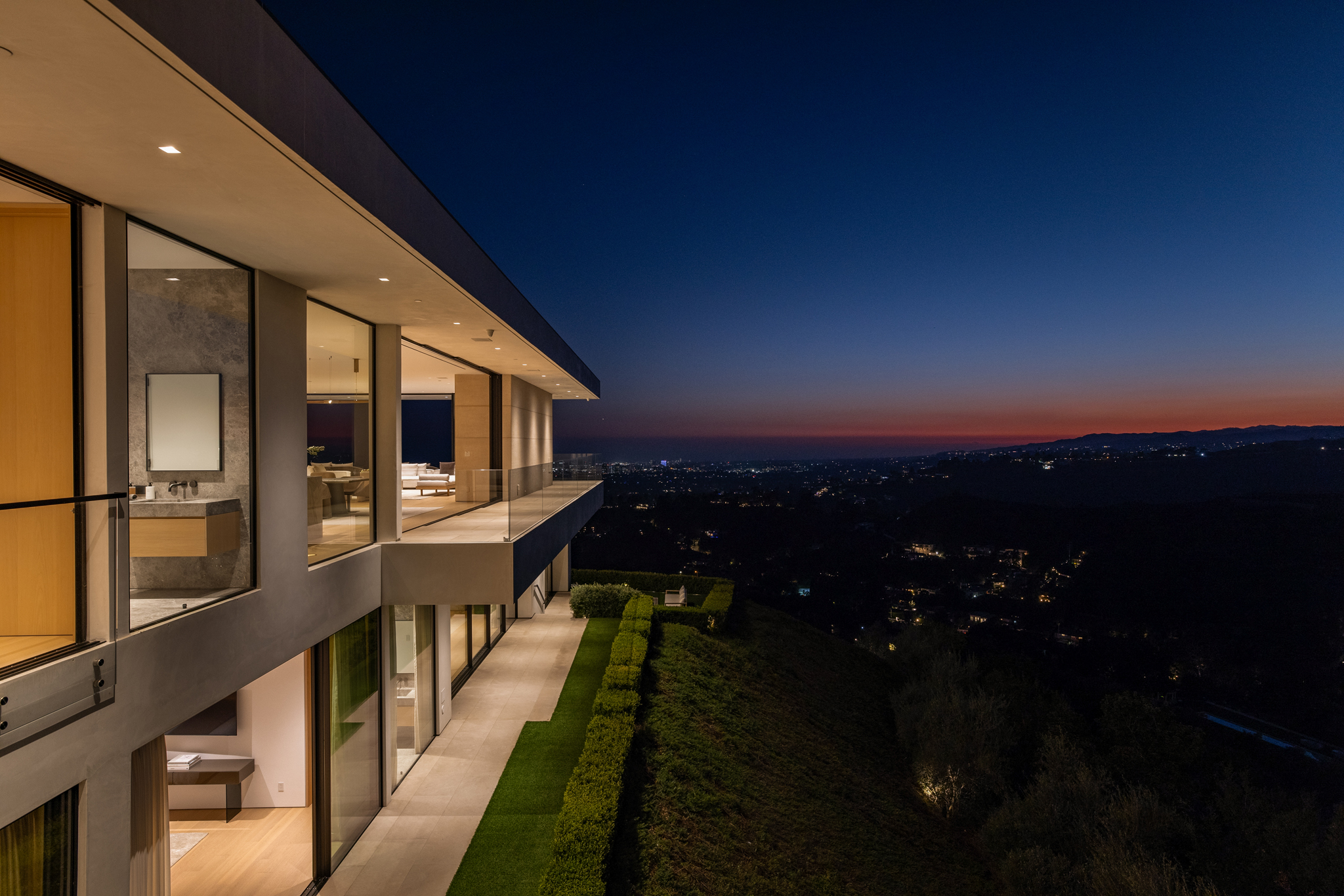 The View Estate is a serene architectural masterpiece sitting on the premier lot in the ultra-exclusive Trousdale Estates enclave. It offers unobstructed jetliner canyon, city, and ocean views from every room. This new construction showcases unparalleled fit and finishes, imported stonework, floor-to-ceiling glass walls, custom furniture, and soaring ceilings. Designed by world-renowned architect Paul McClean with interiors designed by LA based Bespoke interior design firm GD Studio. Greeted by a 100-year-old olive tree, pass through the gates to discover dramatic water features and a zero-edge waterfall leading to a 10+ car garage with turntable. Inside, tranquil formal living and dining rooms with warm European oak paneling and a marble fireplace open to a breathtaking backyard oasis—complete with multiple fire features, flat lush lawns, and an infinity pool/spa that spills seamlessly into the skyline. There are two world class gourmet kitchen's that are outfitted with Calacatta Borghini marble and Miele appliances. The main Kitchen is the perfect gathering space and the Chef's kitchen is clearly Michelin star. Two expansive primary suites feature fireplaces, spa-like bathrooms, and dual closets. Take the elevator down to a day-lit entertainment lounge bathed in natural light, featuring a bar, wine room, world-class spa with infrared sauna and private massage room, and a state-of-the-art fitness center curated by Technogym. World class cinema with Candy Wall with additional lounge areas complete the experience. An estate of this scale, craftsmanship, and architectural pedigree can never be built again in Trousdale—a true private sanctuary that masterfully blends design, luxury, and tranquility.