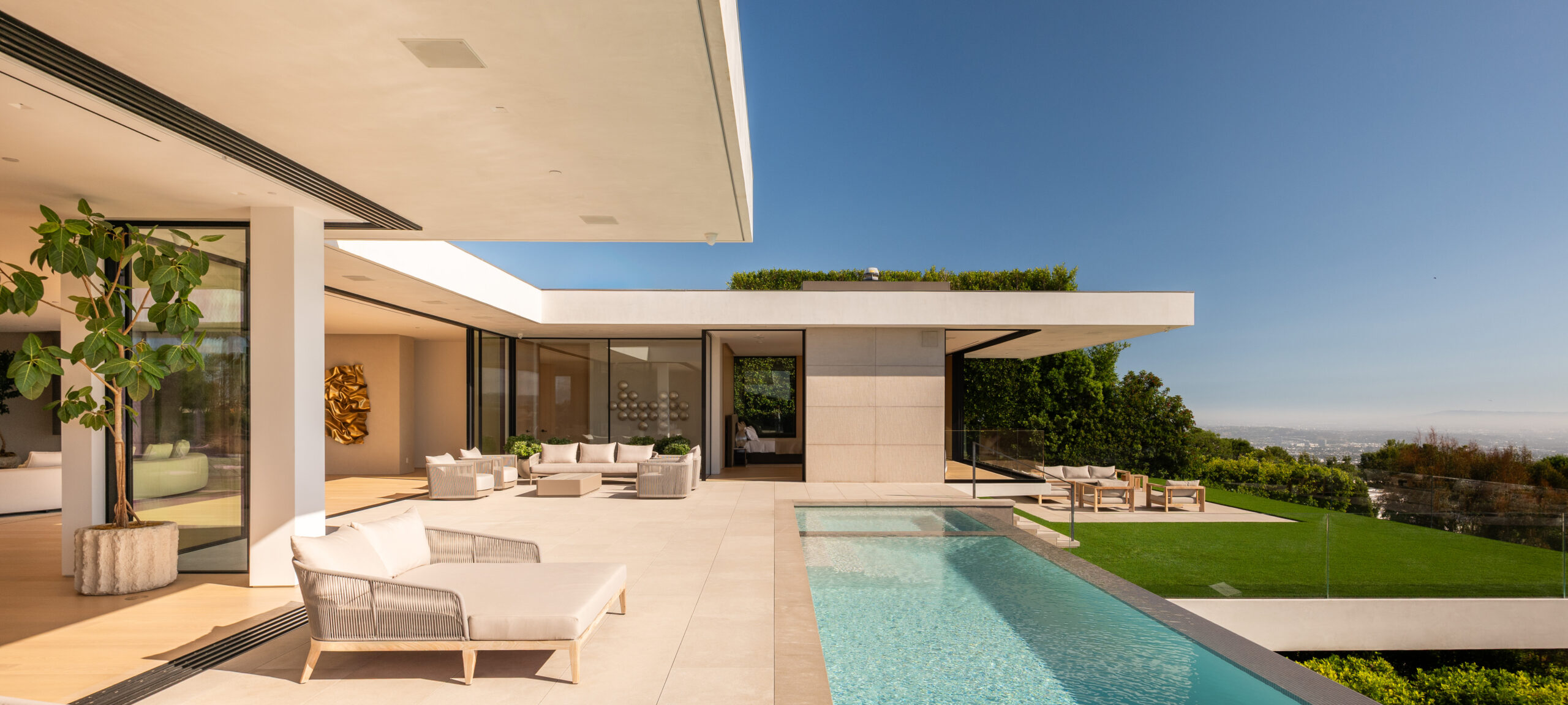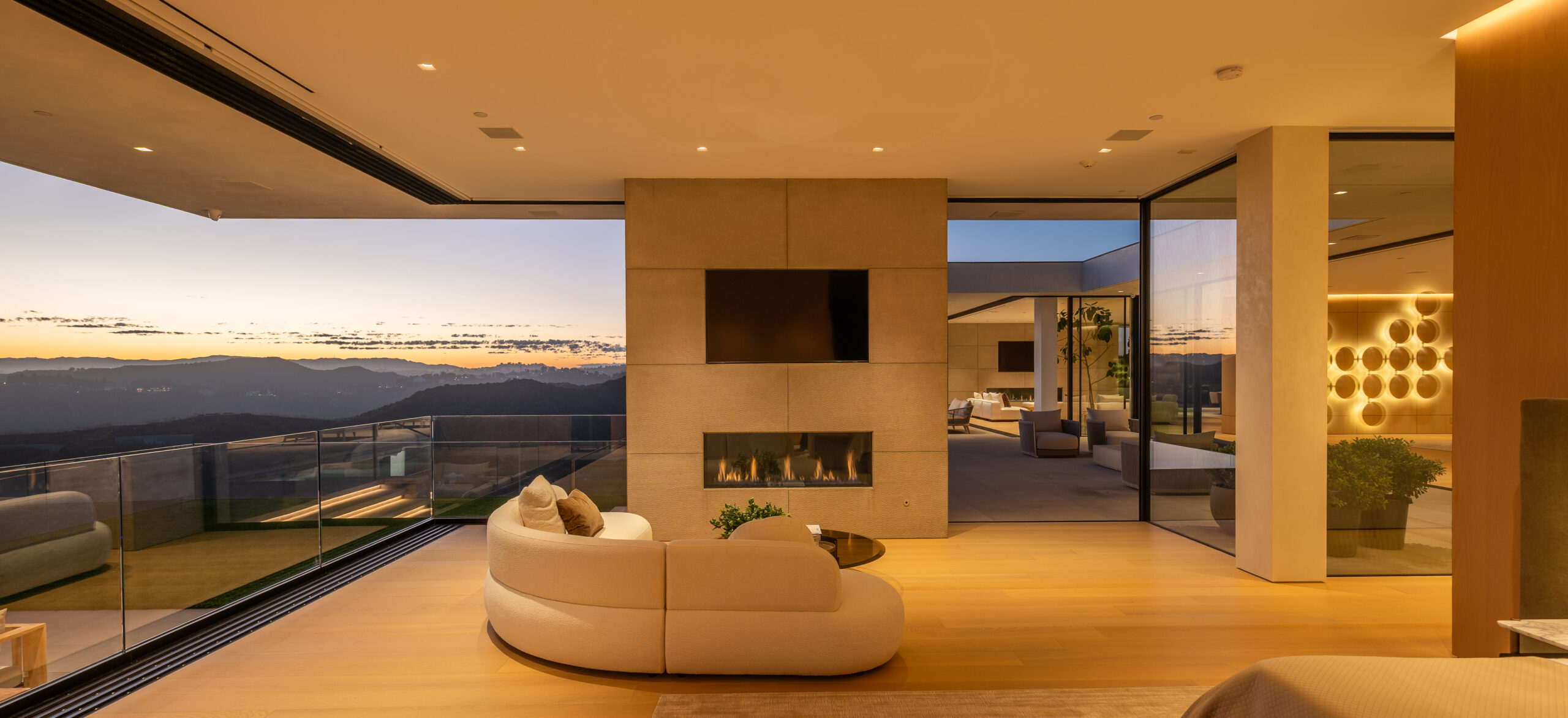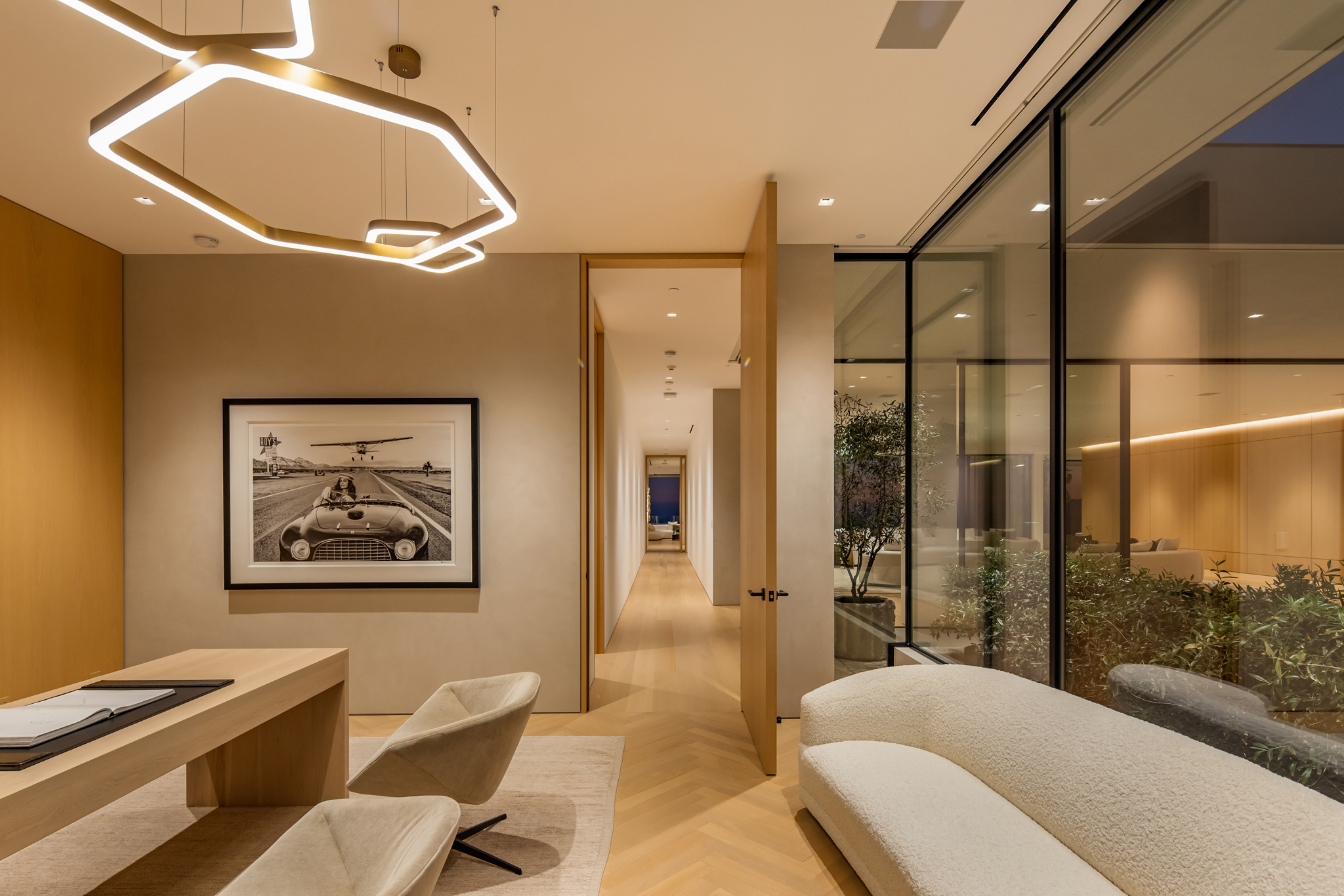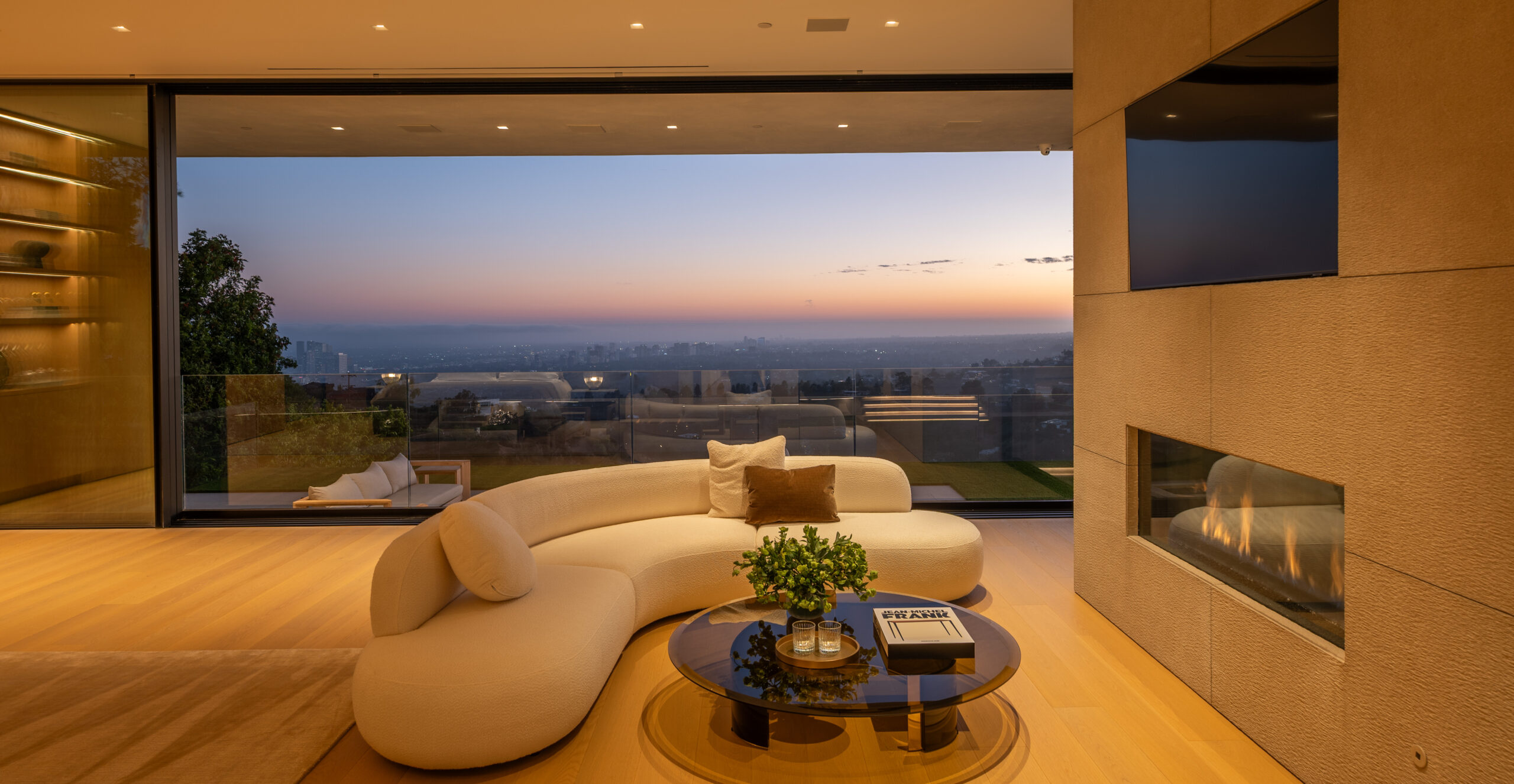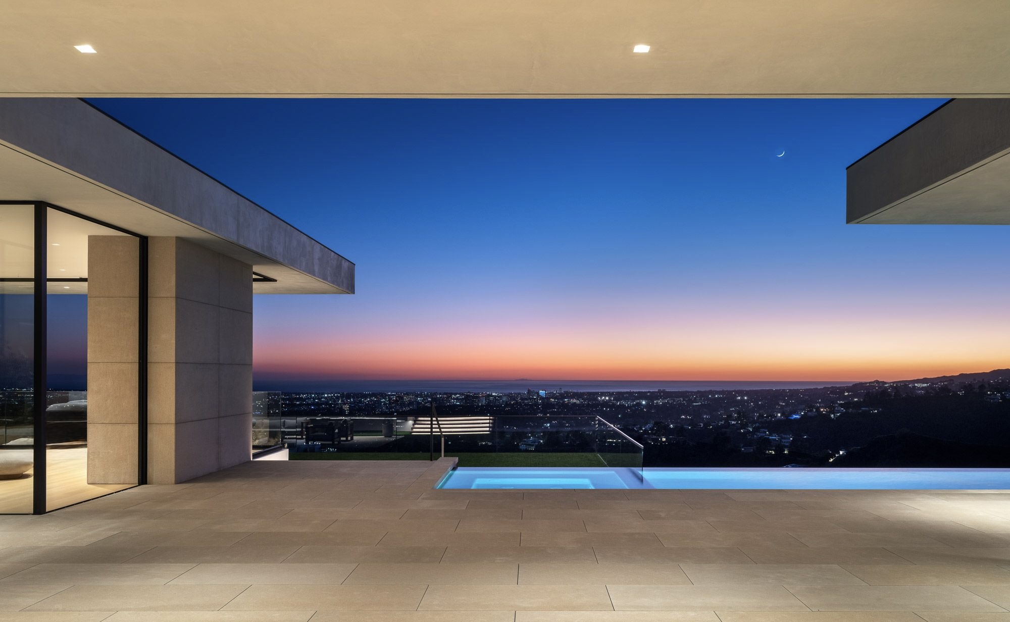 The View Estate is a serene architectural masterpiece sitting on the premier lot in the ultra-exclusive Trousdale Estates enclave. It offers unobstructed jetliner canyon, city, and ocean views from every room. This new construction showcases unparalleled fit and finishes, imported stonework, floor-to-ceiling glass walls, custom furniture, and soaring ceilings. Designed by world-renowned architect Paul McClean with interiors designed by LA based Bespoke interior design firm GD Studio. Greeted by a 100-year-old olive tree, pass through the gates to discover dramatic water features and a zero-edge waterfall leading to a 10+ car garage with turntable. Inside, tranquil formal living and dining rooms with warm European oak paneling and a marble fireplace open to a breathtaking backyard oasis—complete with multiple fire features, flat lush lawns, and an infinity pool/spa that spills seamlessly into the skyline. There are two world class gourmet kitchen's that are outfitted with Calacatta Borghini marble and Miele appliances. The main Kitchen is the perfect gathering space and the Chef's kitchen is clearly Michelin star. Two expansive primary suites feature fireplaces, spa-like bathrooms, and dual closets. Take the elevator down to a day-lit entertainment lounge bathed in natural light, featuring a bar, wine room, world-class spa with infrared sauna and private massage room, and a state-of-the-art fitness center curated by Technogym. World class cinema with Candy Wall with additional lounge areas complete the experience. An estate of this scale, craftsmanship, and architectural pedigree can never be built again in Trousdale—a true private sanctuary that masterfully blends design, luxury, and tranquility.
