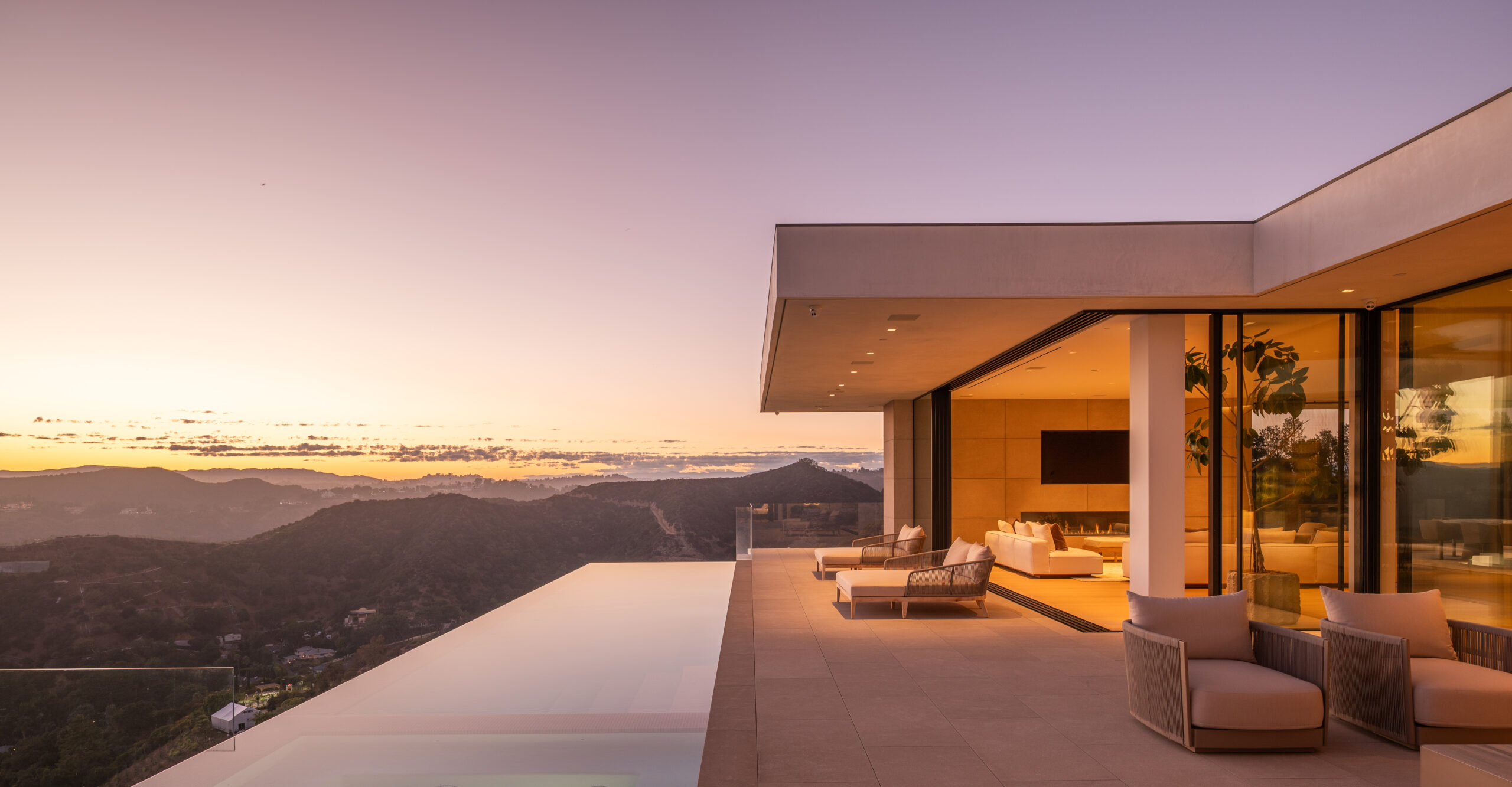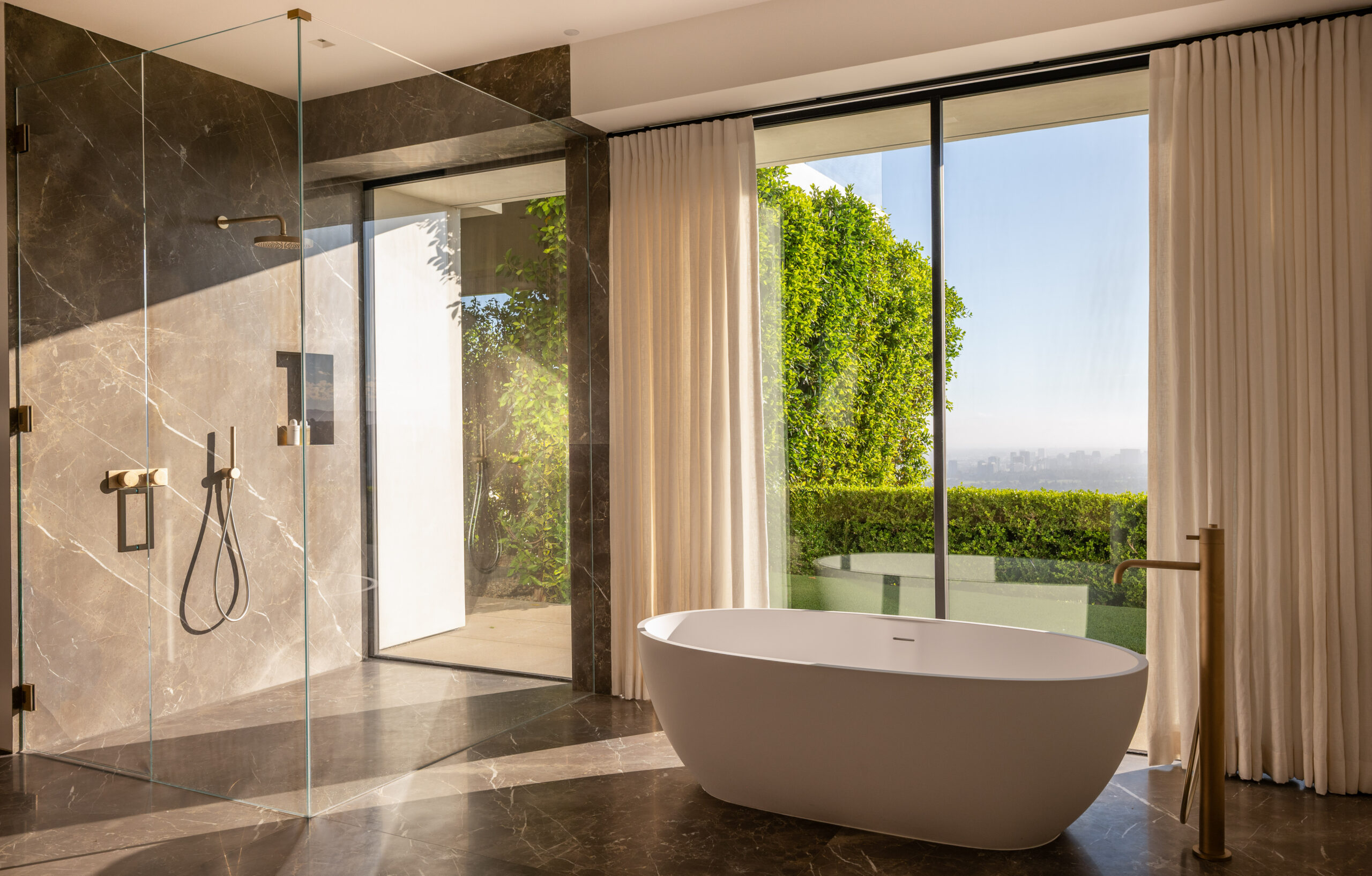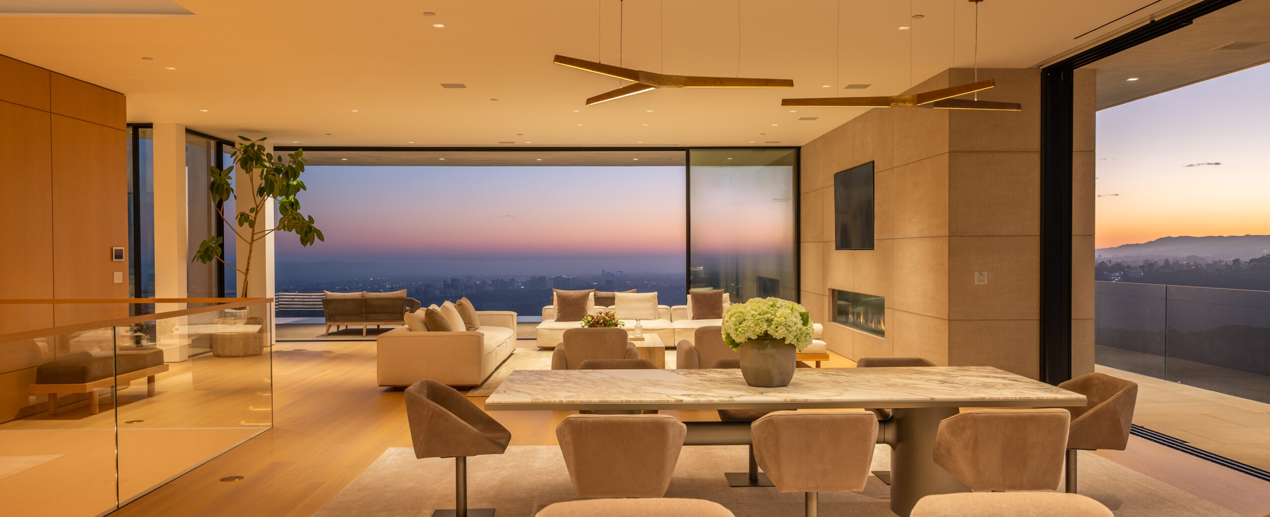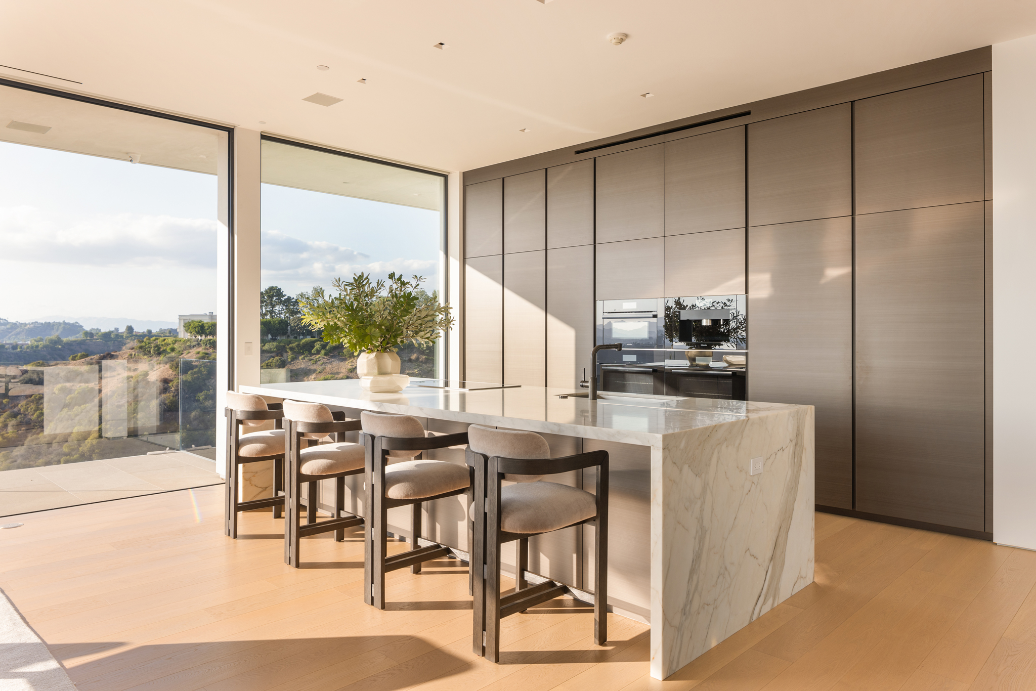 The View Estate is a serene architectural masterpiece sitting on the premier lot in the ultra-exclusive Trousdale Estates enclave. It offers unobstructed jetliner canyon, city, and ocean views from every room. This new construction showcases unparalleled fit and finishes, imported stonework, floor-to-ceiling glass walls, custom furniture, and soaring ceilings. Designed by world-renowned architect Paul McClean with interiors designed by LA based Bespoke interior design firm GD Studio. Greeted by a 100-year-old olive tree, pass through the gates to discover dramatic water features and a zero-edge waterfall leading to a 10+ car garage with turntable. Inside, tranquil formal living and dining rooms with warm European oak paneling and a marble fireplace open to a breathtaking backyard oasis—complete with multiple fire features, flat lush lawns, and an infinity pool/spa that spills seamlessly into the skyline. There are two world class gourmet kitchen's that are outfitted with Calacatta Borghini marble and Miele appliances. The main Kitchen is the perfect gathering space and the Chef's kitchen is clearly Michelin star. Two expansive primary suites feature fireplaces, spa-like bathrooms, and dual closets. Take the elevator down to a day-lit entertainment lounge bathed in natural light, featuring a bar, wine room, world-class spa with infrared sauna and private massage room, and a state-of-the-art fitness center curated by Technogym. World class cinema with Candy Wall with additional lounge areas complete the experience. An estate of this scale, craftsmanship, and architectural pedigree can never be built again in Trousdale—a true private sanctuary that masterfully blends design, luxury, and tranquility.
