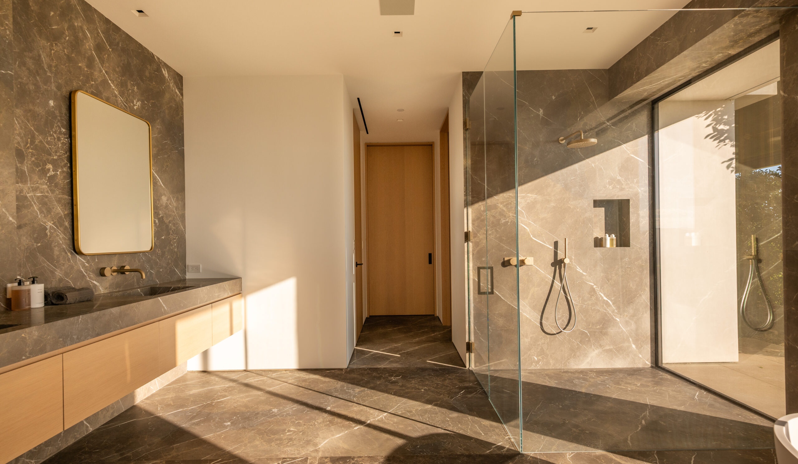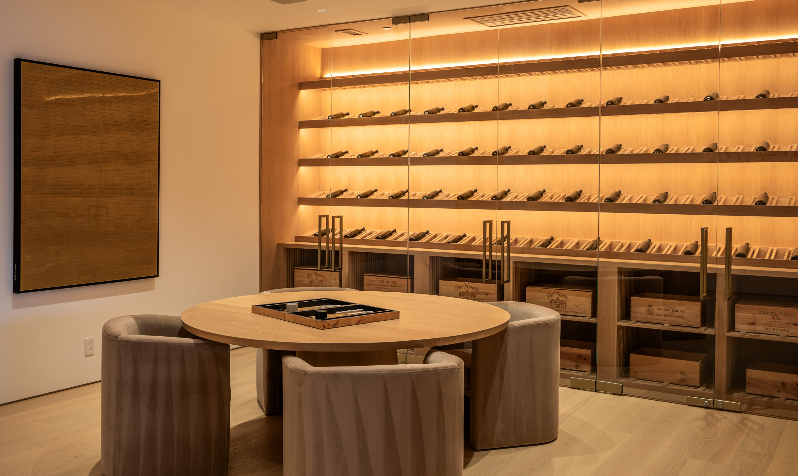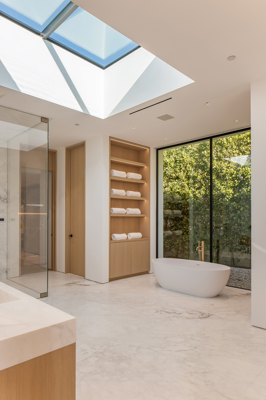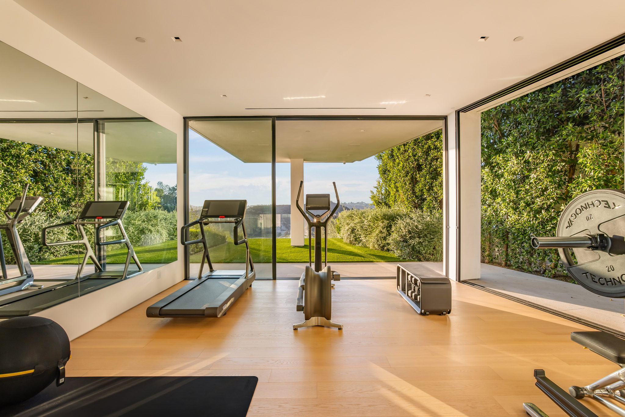 The View Estate is a serene architectural masterpiece sitting on the premier lot in the ultra-exclusive Trousdale Estates enclave. It offers unobstructed jetliner canyon, city, and ocean views from every room. This new construction showcases unparalleled fit and finishes, imported stonework, floor-to-ceiling glass walls, custom furniture, and soaring ceilings. Designed by world-renowned architect Paul McClean with interiors designed by LA based Bespoke interior design firm GD Studio. Greeted by a 100-year-old olive tree, pass through the gates to discover dramatic water features and a zero-edge waterfall leading to a 10+ car garage with turntable. Inside, tranquil formal living and dining rooms with warm European oak paneling and a marble fireplace open to a breathtaking backyard oasis—complete with multiple fire features, flat lush lawns, and an infinity pool/spa that spills seamlessly into the skyline. There are two world class gourmet kitchen's that are outfitted with Calacatta Borghini marble and Miele appliances. The main Kitchen is the perfect gathering space and the Chef's kitchen is clearly Michelin star. Two expansive primary suites feature fireplaces, spa-like bathrooms, and dual closets. Take the elevator down to a day-lit entertainment lounge bathed in natural light, featuring a bar, wine room, world-class spa with infrared sauna and private massage room, and a state-of-the-art fitness center curated by Technogym. World class cinema with Candy Wall with additional lounge areas complete the experience. An estate of this scale, craftsmanship, and architectural pedigree can never be built again in Trousdale—a true private sanctuary that masterfully blends design, luxury, and tranquility.