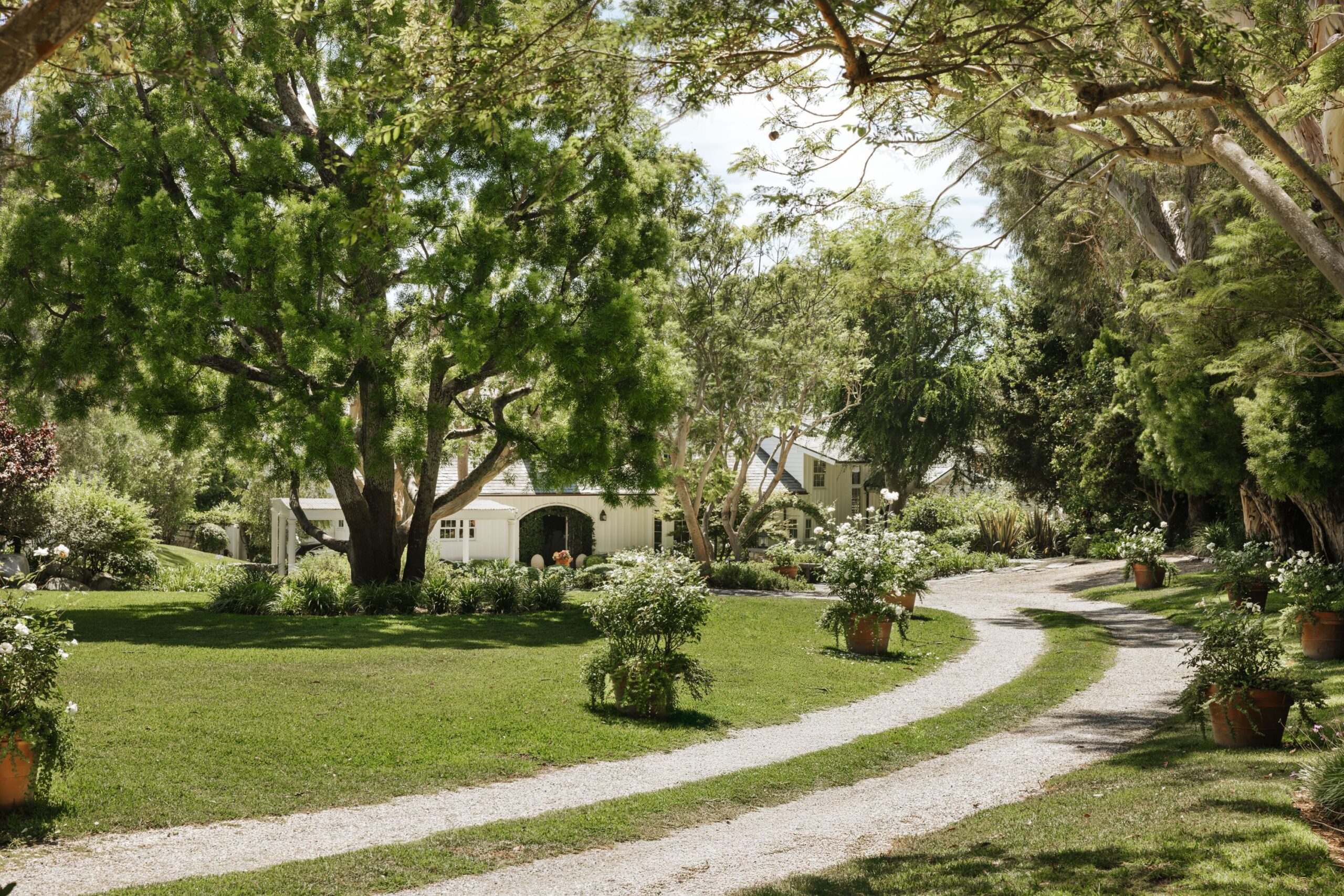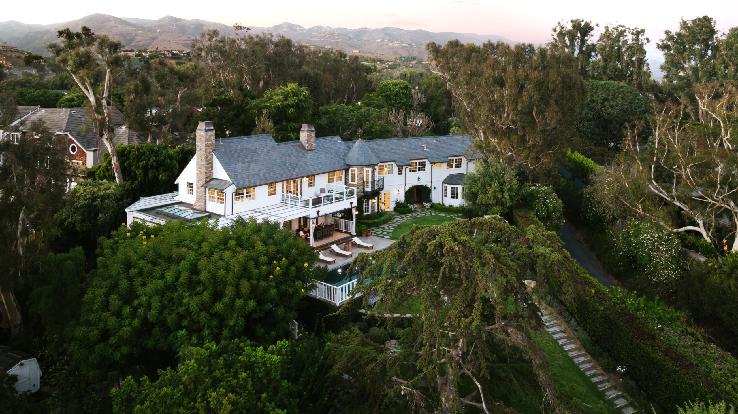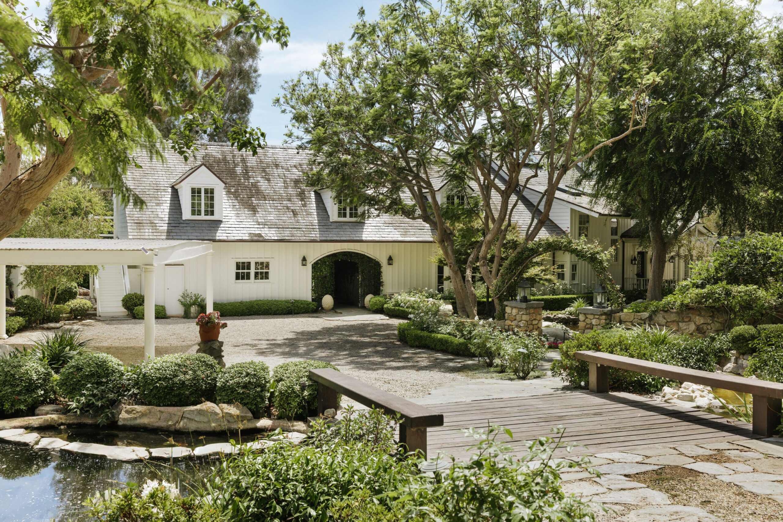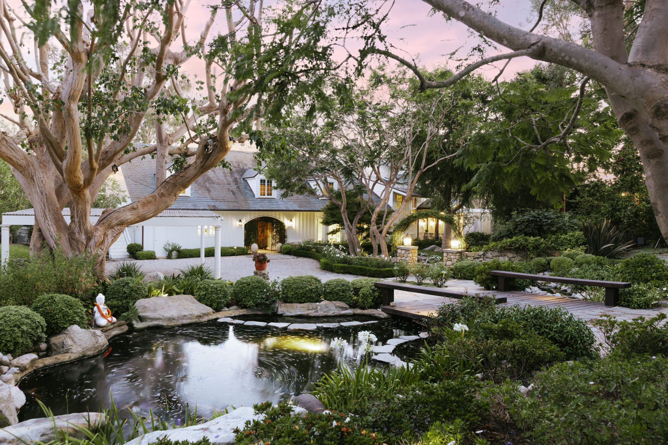 Nestled at the pinnacle of Point Dume's most coveted street lies this extraordinary private estate. Secluded behind gates, atop a majestic ocean bluff, architect Peter Choate's masterful design reveals a seven-bedroom, six-bathroom residence on 1.5+ acres. With pristine beauty this unparalleled sanctuary boasts orchards, gardens, a pool, and a private door to exclusive Little Dume Beach Access. Upon arrival, guests are greeted by majestic coral trees and cascading bougainvillea leading to the 100-foot driveway, lined with mature eucalyptus trees and pots of illuminated white roses, with a bridge over babbling brooks and serene ponds. The farmhouse-inspired facade in fresh white, complemented by a slate tile roof and copper accents, exudes elegance. Inside, panoramic views of the ocean, Catalina Island, and lush orchards captivate. Oak wood floors and French doors enhance the seamless indoor-outdoor lifestyle. The chef's kitchen dazzles with white cabinetry, a Wolf six-burner range, Sub-Zero refrigerator, wine refrigerator, and honed Calcutta marble countertops. Nautical-inspired brass fixtures illuminate the space, complementing a charming eat-in nook with a curved built-in bench. The gracious living room features a wood-burning fireplace and beamed ceilings, opening to an outdoor paradise. Manicured lawns, specimen trees, and landscaped orchards surround a pool, a bluestone gas firepit, with ocean-view decks that provide an idyllic setting for entertaining. Upstairs, the tranquil primary suite boasts dramatic ocean views, 11-foot ceilings with wood beams, and a gas fireplace. Four additional bedrooms offer unique features such as Juliet balconies and dormer windows, each capturing breathtaking vistas. This estate epitomizes the coveted Point Dume lifestyle, blending unparalleled luxury with natural beauty and exclusive amenities offering a rare opportunity to embrace coastal living at its finest. Additional highlights include a laundry room, guest suites with garden views, a sunlit conservatory and property generator. This rare wonderland promises an unparalleled Malibu experience.