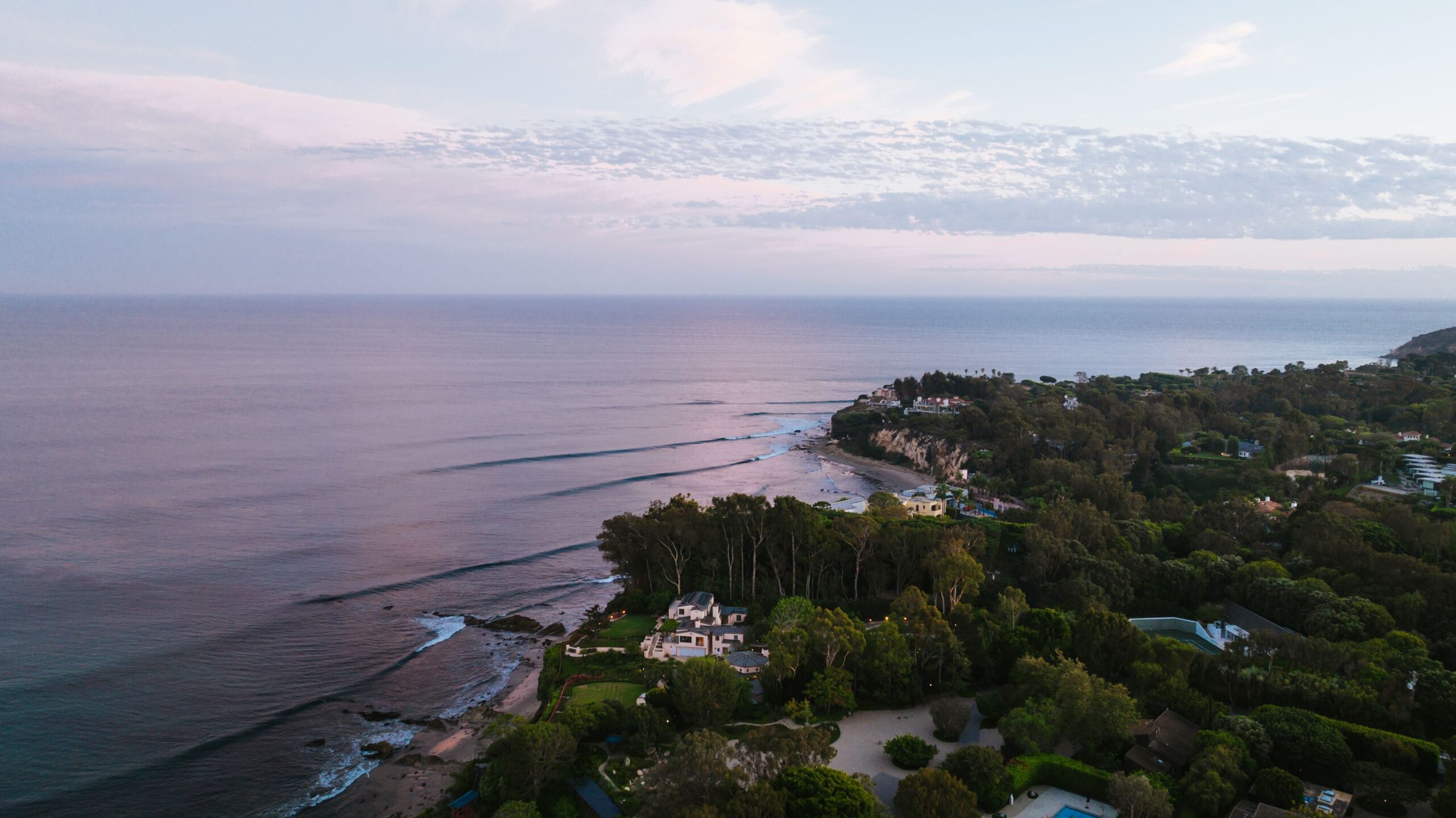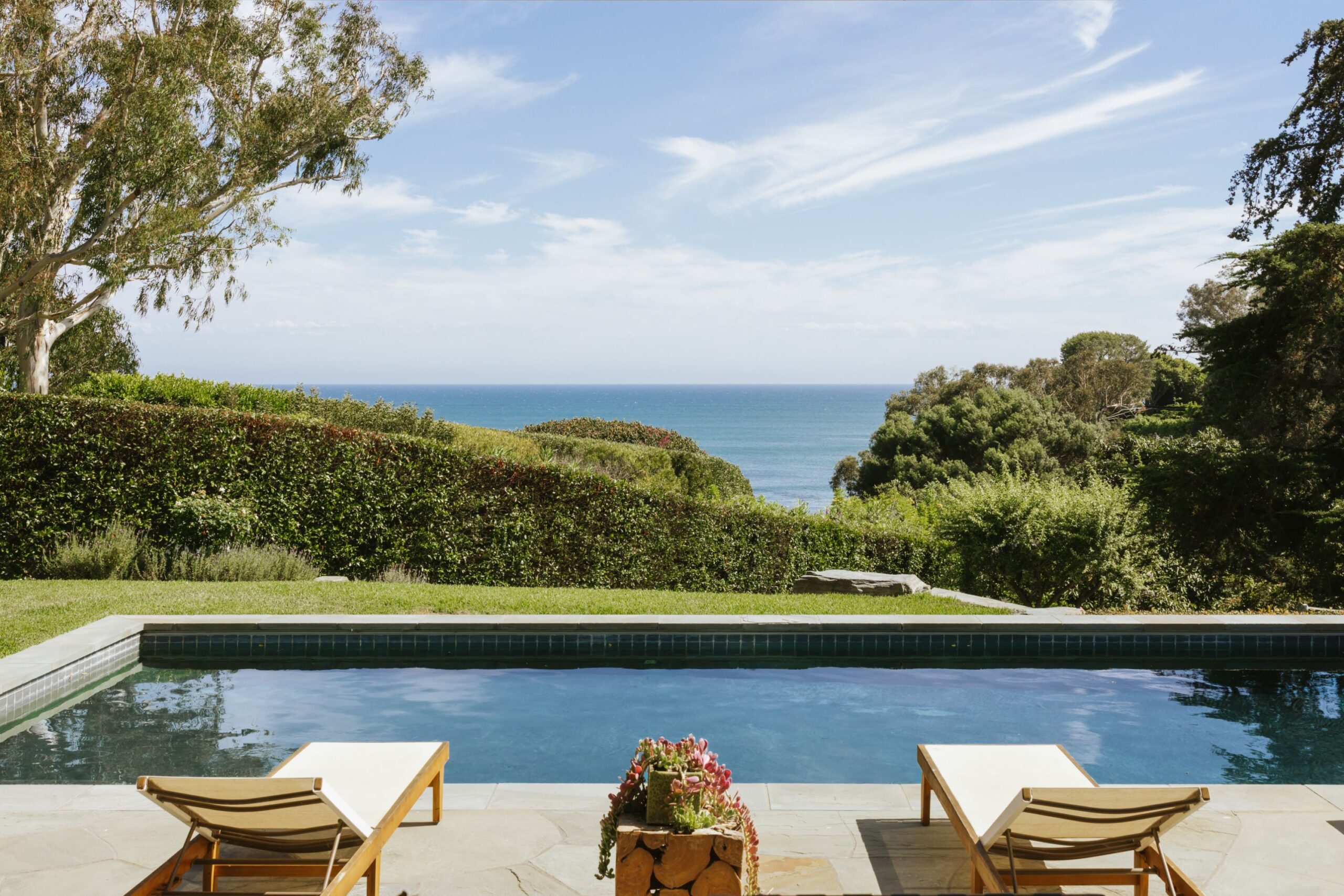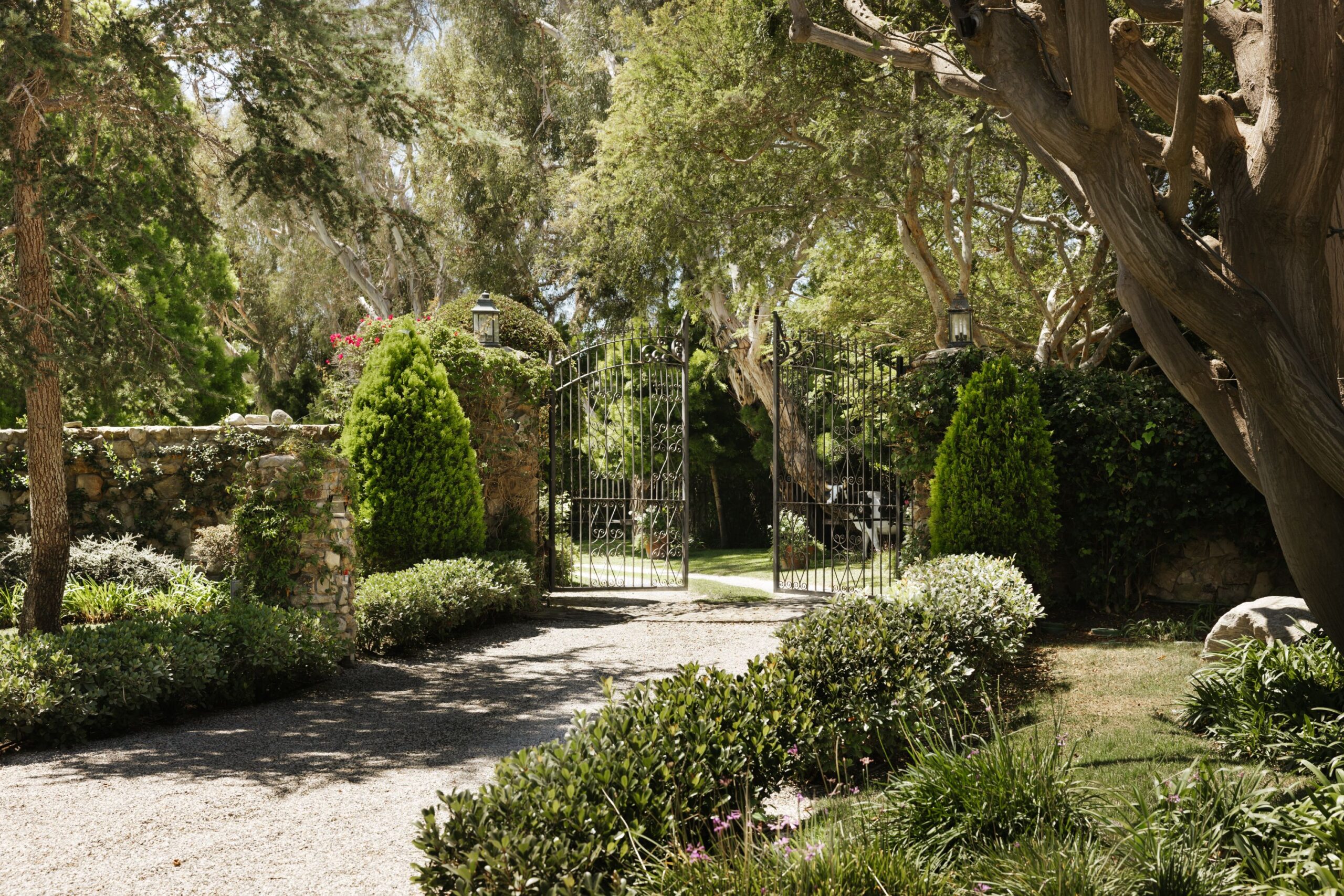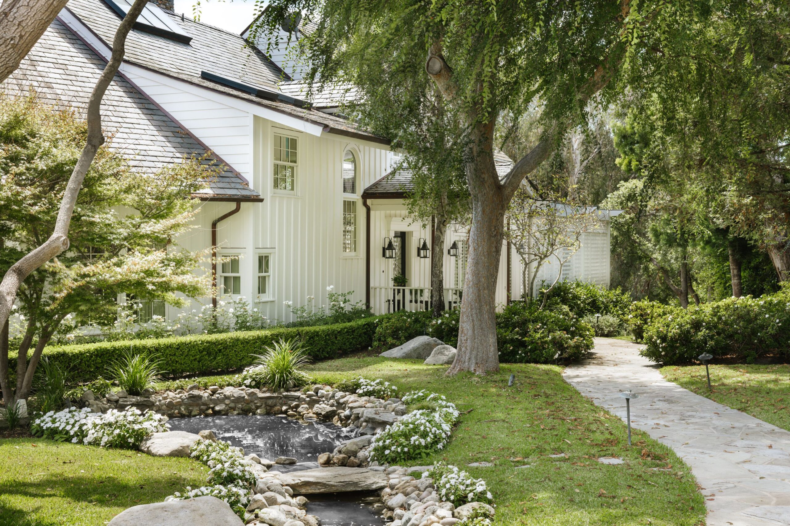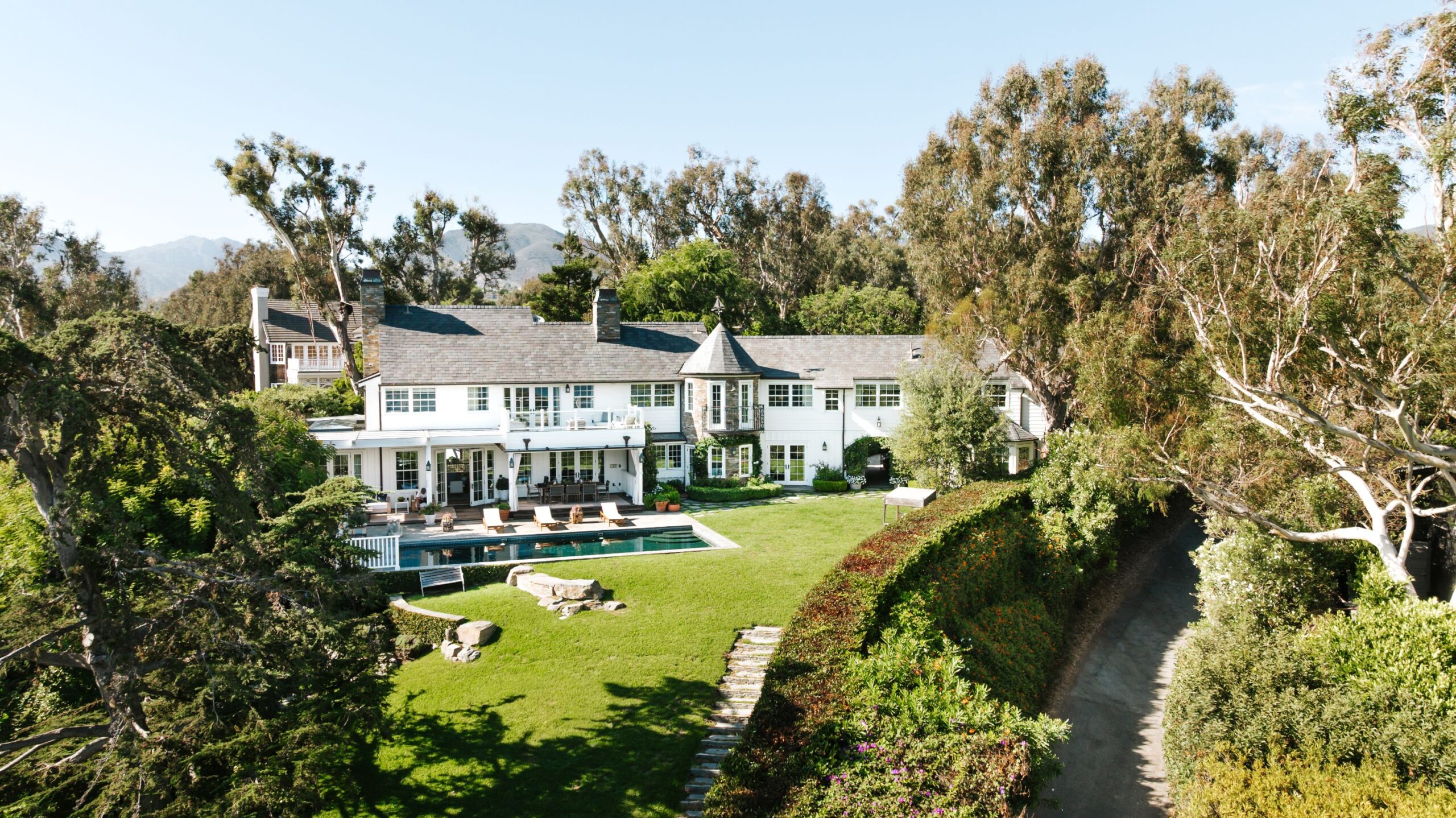 Nestled at the pinnacle of Point Dume's most coveted street lies this extraordinary private estate. Secluded behind gates, atop a majestic ocean bluff, architect Peter Choate's masterful design reveals a seven-bedroom, six-bathroom residence on 1.5+ acres. With pristine beauty this unparalleled sanctuary boasts orchards, gardens, a pool, and a private door to exclusive Little Dume Beach Access. Upon arrival, guests are greeted by majestic coral trees and cascading bougainvillea leading to the 100-foot driveway, lined with mature eucalyptus trees and pots of illuminated white roses, with a bridge over babbling brooks and serene ponds. The farmhouse-inspired facade in fresh white, complemented by a slate tile roof and copper accents, exudes elegance. Inside, panoramic views of the ocean, Catalina Island, and lush orchards captivate. Oak wood floors and French doors enhance the seamless indoor-outdoor lifestyle. The chef's kitchen dazzles with white cabinetry, a Wolf six-burner range, Sub-Zero refrigerator, wine refrigerator, and honed Calcutta marble countertops. Nautical-inspired brass fixtures illuminate the space, complementing a charming eat-in nook with a curved built-in bench. The gracious living room features a wood-burning fireplace and beamed ceilings, opening to an outdoor paradise. Manicured lawns, specimen trees, and landscaped orchards surround a pool, a bluestone gas firepit, with ocean-view decks that provide an idyllic setting for entertaining. Upstairs, the tranquil primary suite boasts dramatic ocean views, 11-foot ceilings with wood beams, and a gas fireplace. Four additional bedrooms offer unique features such as Juliet balconies and dormer windows, each capturing breathtaking vistas. This estate epitomizes the coveted Point Dume lifestyle, blending unparalleled luxury with natural beauty and exclusive amenities offering a rare opportunity to embrace coastal living at its finest. Additional highlights include a laundry room, guest suites with garden views, a sunlit conservatory and property generator. This rare wonderland promises an unparalleled Malibu experience.