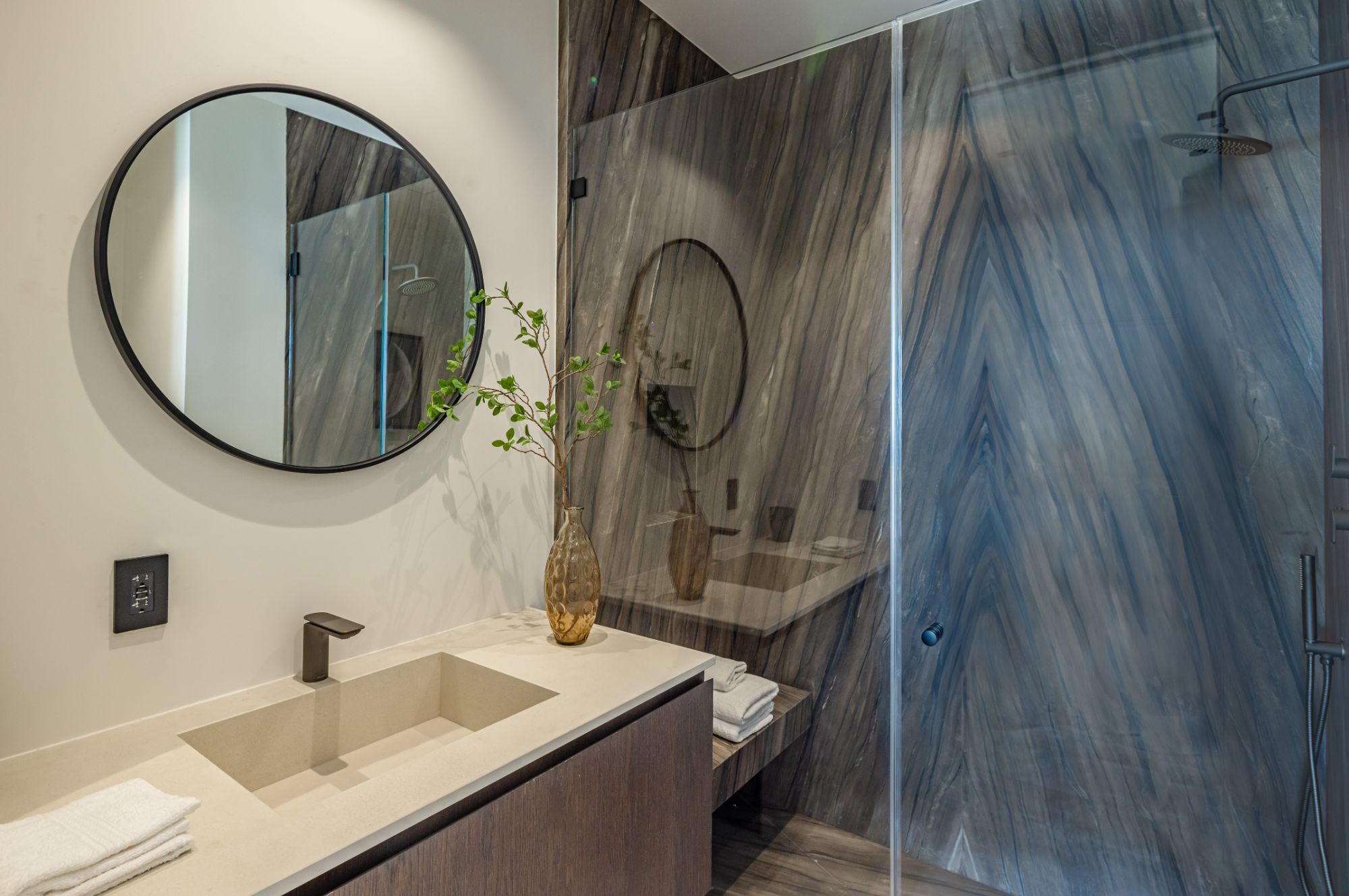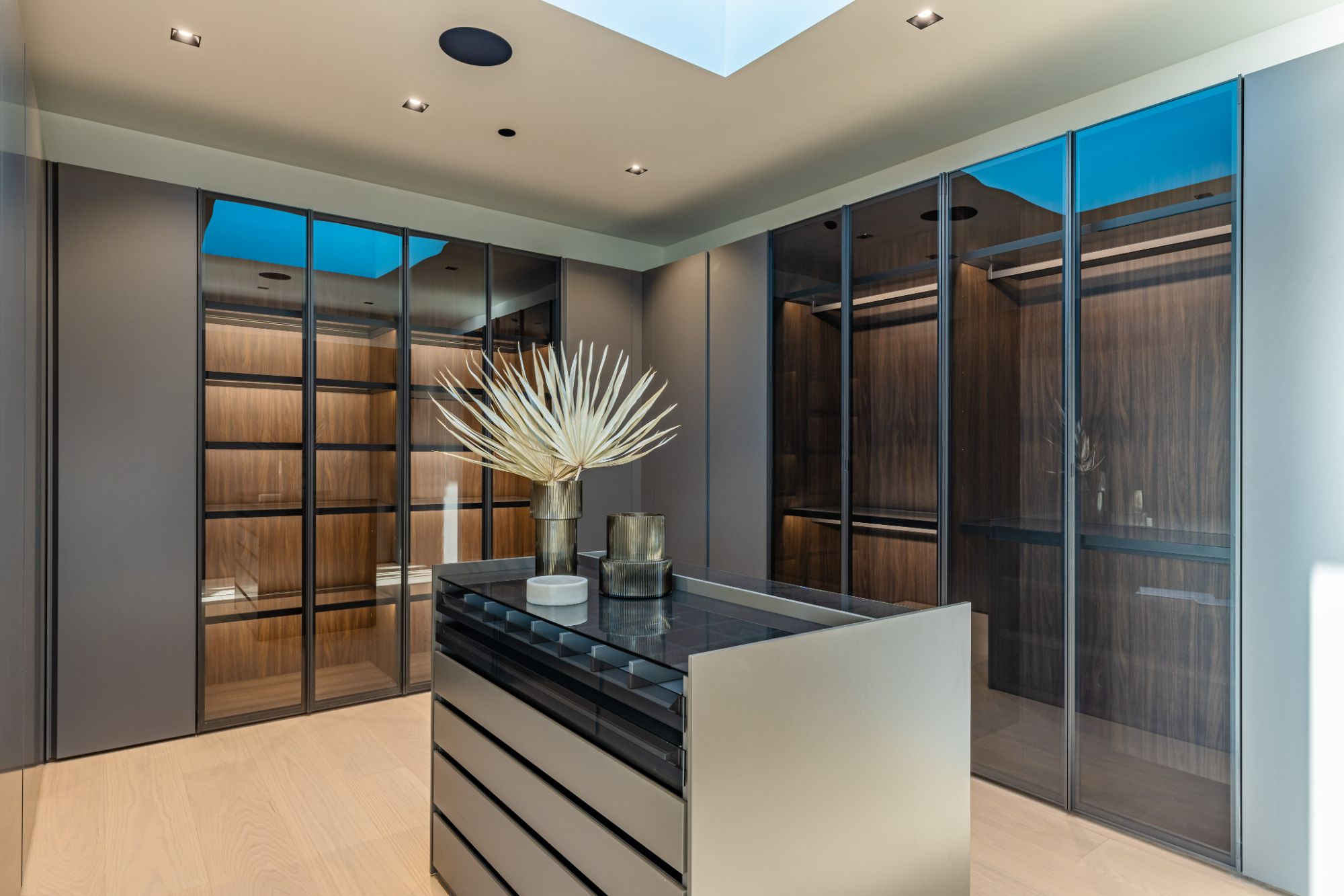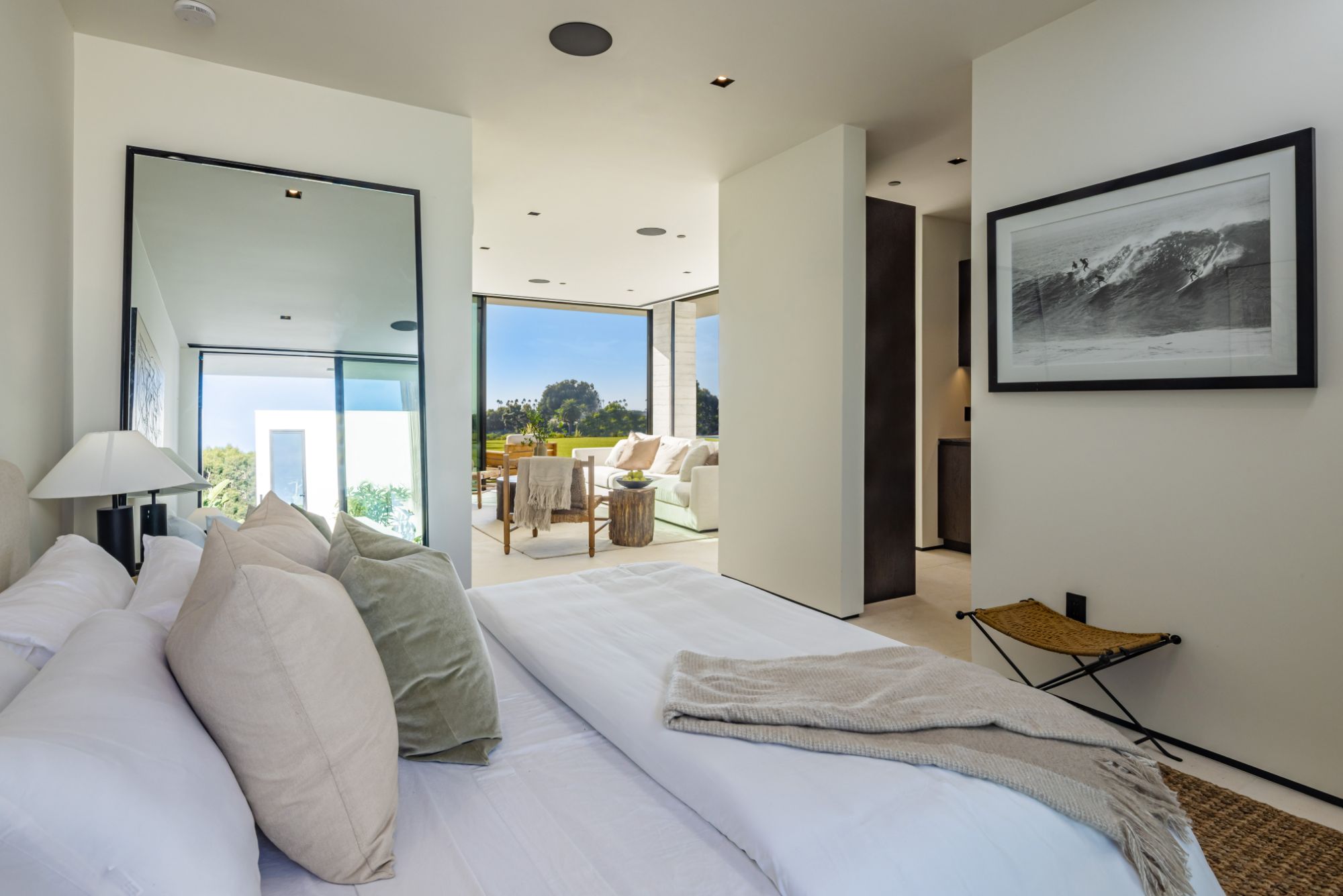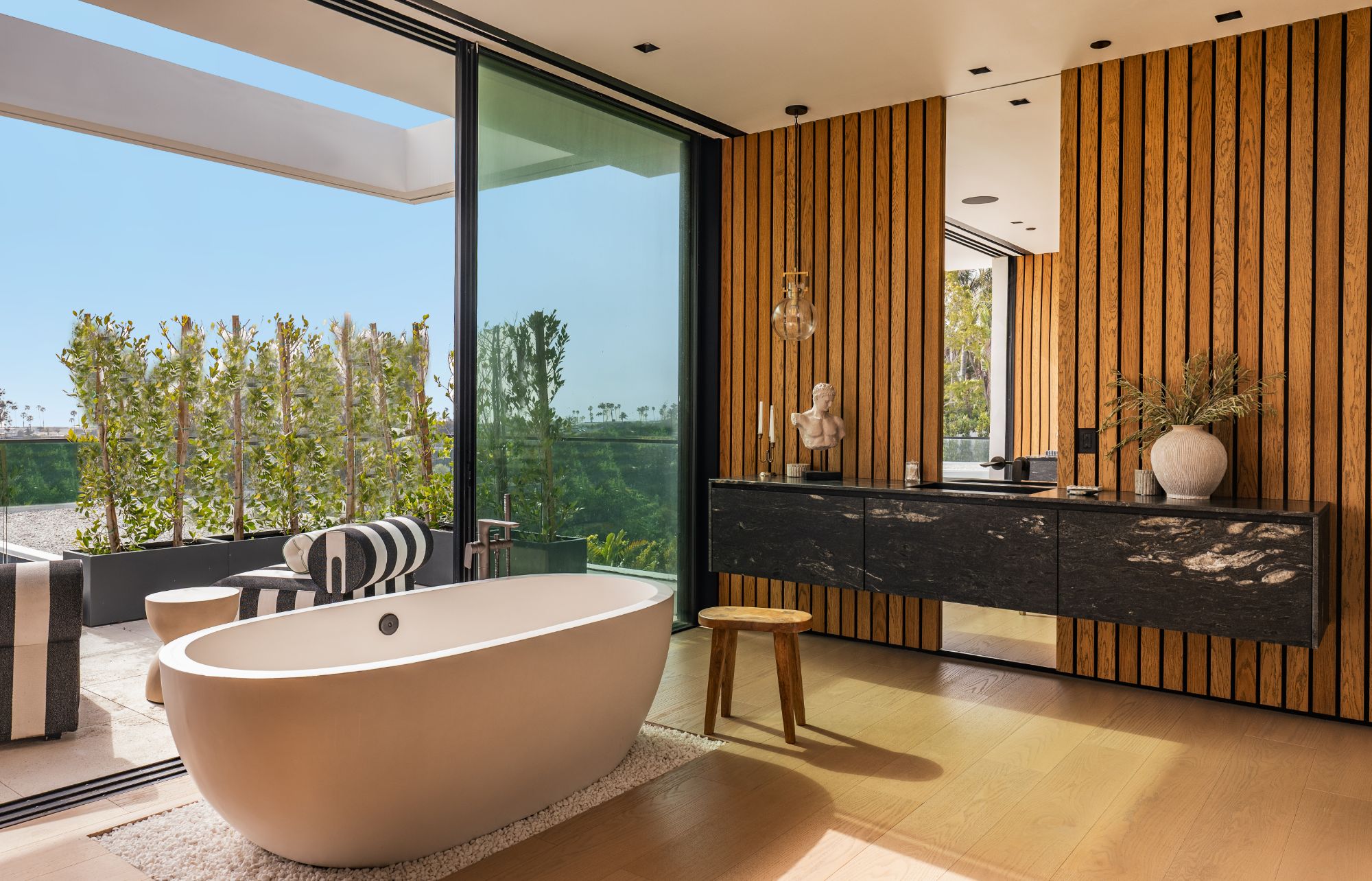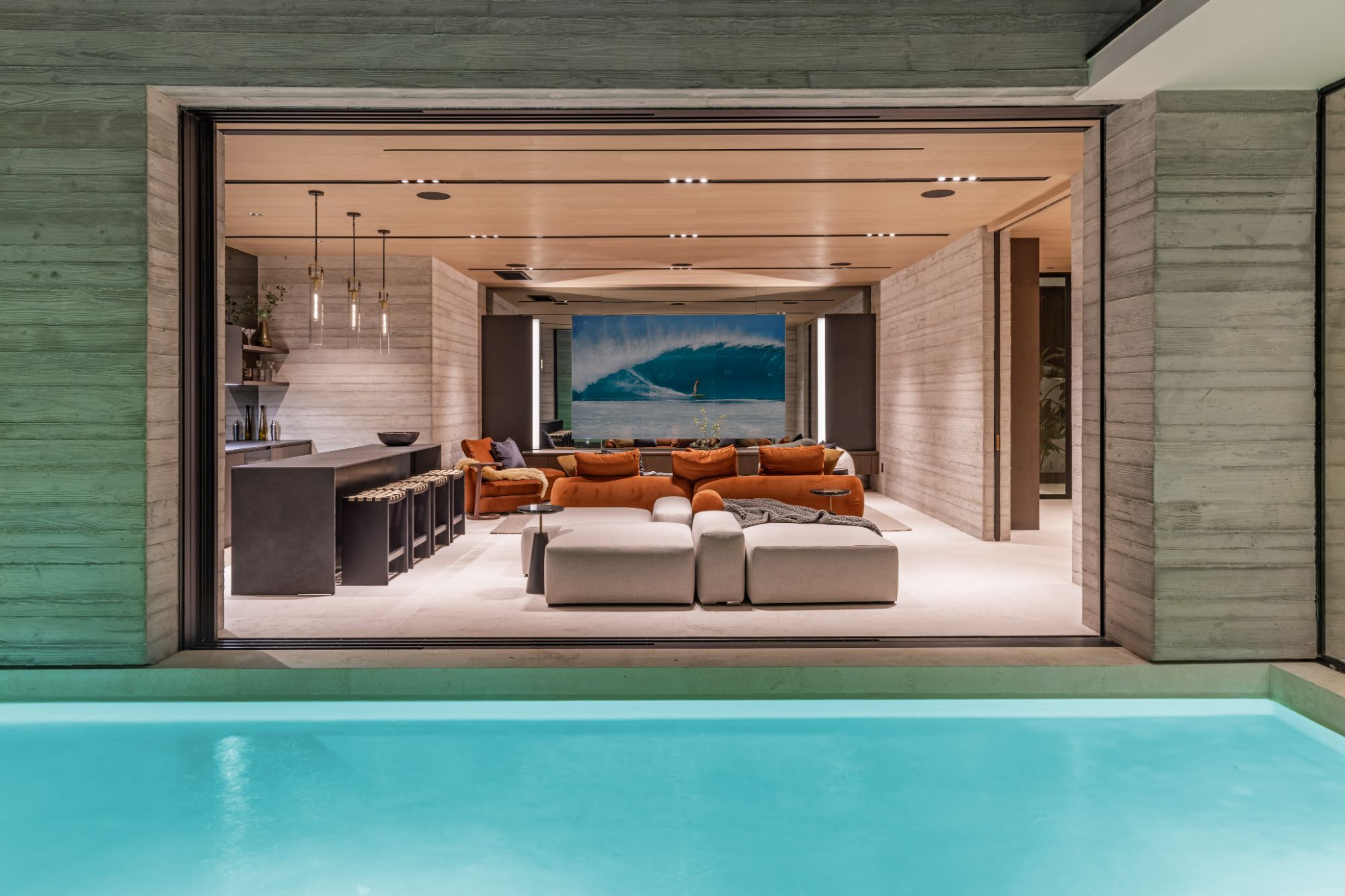 Introducing TerraLume, Malibu's newest iconic estate nestled within the ultra-exclusive Point Dume enclave. Spanning 2.25 acres of pristine grounds with commanding panoramic ocean views, this 8,500 sq ft, 6-bedroom, 8-bathroom masterwork offers the pinnacle of architectural sophistication and resort-style living. A harmonious fusion of contemporary design and materials, TerraLume features board-formed concrete walls, curated stone finishes, and floor-to-ceiling disappearing glass doors that seamlessly blend indoor and outdoor living. Highlighting Malibu's legendary sunsets at every turn. Enter through a tranquil lagoon to a grand 8x10 custom copper pivot door, leading into a dramatic double-height entry and voluminous open spaces. Every detail has been hand-selected for its artistry: handmade chandeliers, handcrafted wood louvers, etched copper walls, and a bespoke Italian kitchen. The floating staircase ascends to a private upper level featuring an opulent primary suite with two fireplaces, a spa-inspired bath retreat with hand-carved marble vanities, a sculptural stone soaking tub, and a steam shower framing unforgettable ocean vistas. Outdoor amenities rival world-class resorts: a covered outdoor kitchen and bar, 70-foot pool and spa, detached guesthouse, fitness studio with sauna, and gated motor court with parking for up to 20 vehicles. Enjoy private access to Little Dume Beach through the coveted Riviera III beach key.