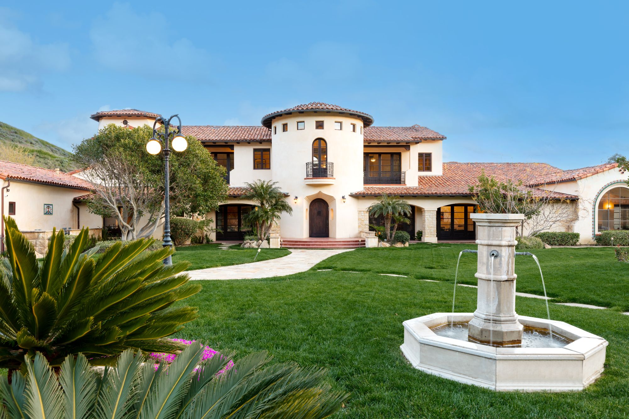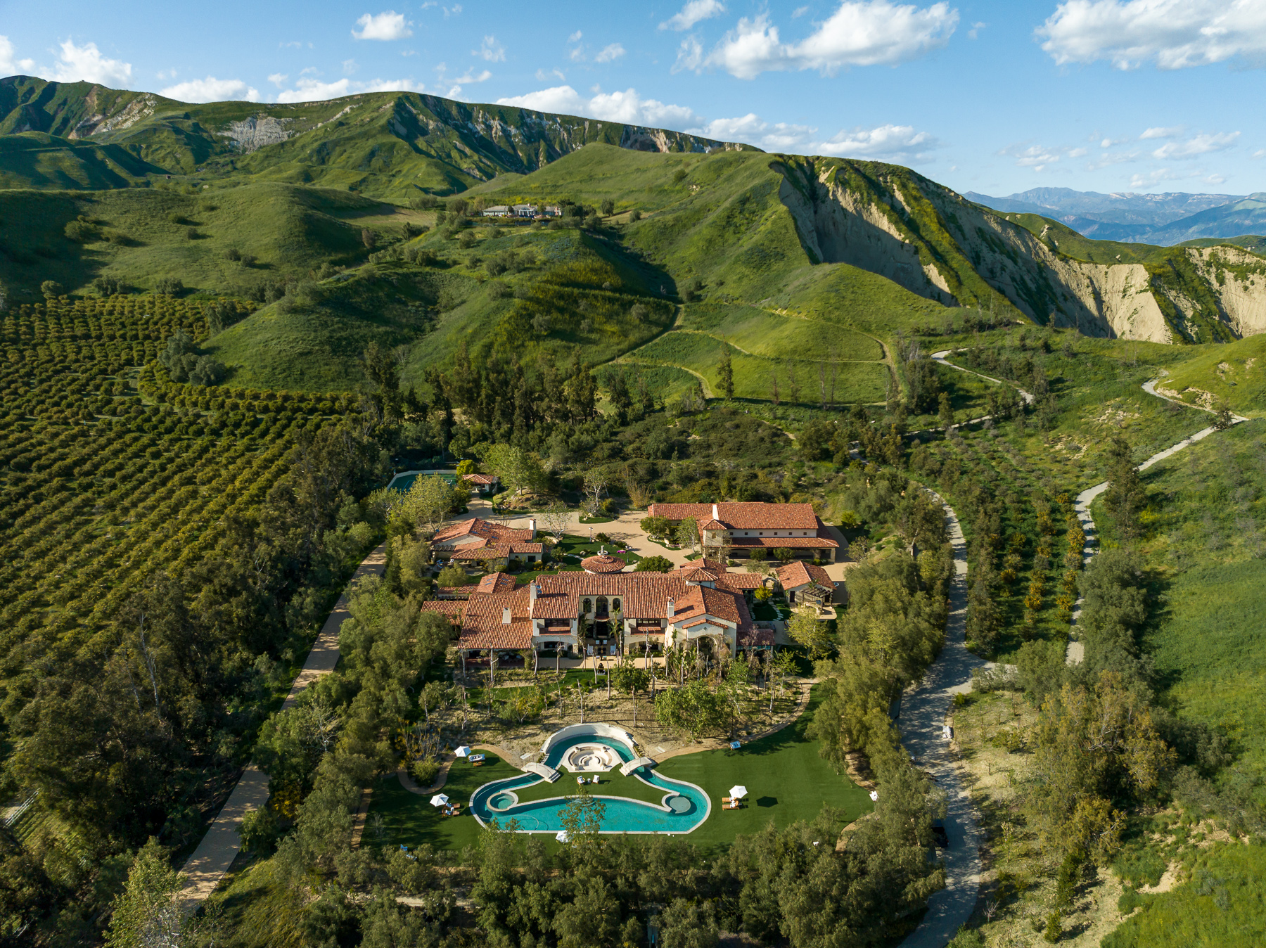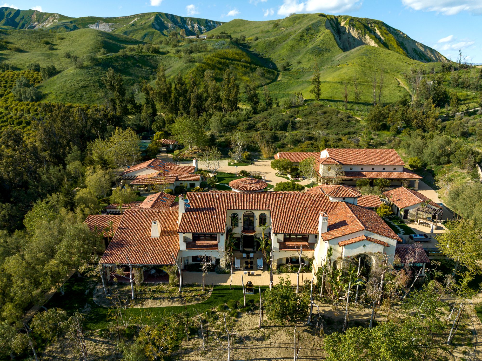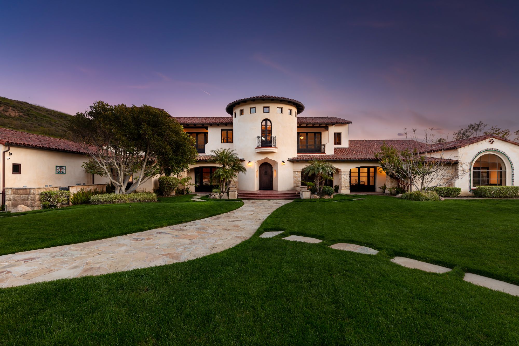 Welcome to El Palacio Del Solano, an exquisite oasis nestled within the prestigious Solano Verde Ranches. This extremely private enclave of 39 palatial estates is centrally located from Los Angeles, Malibu, & Santa Barbara. Located just 25 minutes north of Westlake Village and Thousand Oaks, and a mere 45 minutes from the pristine shores of Malibu, this secluded sanctuary offers convenience. Each of these generational estates sits on dozens of acres encompassing the most pristine natural landscapes known to Southern California. Beyond the handcrafted gates, ensconced amidst verdant fruit orchards and bordered by a meticulously manicured tree-lined driveway, awaits a truly unparalleled residence, the holy grail of Somis. Spanning 22 acres of secluded splendor, this Spanish palatial estate exemplifies opulence at every turn. Boasting approximately 20,000 square feet of meticulously designed living space, the estate epitomizes grandeur & opulence. The centerpiece is the magnificent 14,460 square foot main residence, complemented by a fully appointed 2,300 square foot guest house and an expansive 3,100 square foot hospitality and recreational facility. Step inside and be greeted by perfectly detailed Spanish tiles along the flooring and an all encompassing floor to ceiling window. From the state-of-the-art media room to the tranquil library & private office, each space exudes sophistication. Culinary delights await in the gourmet kitchen ideal for large gatherings, while the bar and wine cellar beckon for evenings of refined entertainment. Retreat to the sumptuous master suite, where a private primary living room is joined with a double-sided fireplace. The dual primary bathrooms feature a spacious dressing area, sauna, double-sided glass enclosed shower, & direct access to personal gym & office. Other notable interiors include a private massage room, arcade room, and grand formal dining room. Ascend to the second floor, where hospitality reigns supreme. Three luxurious bedroom suites, each boasting private balconies with sweeping vistas, offer unparalleled comfort. A 2nd story loft space with a bar can be found overlooking the 1st floor family room with the iconic arched window capturing the picturesque mountain views. Step into the backyard where paradise awaits. A massive grass field is accompanied by multiple lounging areas and a one-of-a-kind lazy pool with a center island fire pit. The backyard is adorned by a plethora of fruit trees including lemon, avocado, pomegranate, fig, & tangerine. Walking paths leading up to your own private mountain located to the East side of the estate offer the most scenic jaw dropping mountain views. French doors off the glass enclosed breakfast room open up to a private al fresco dining and living area accompanied by an outdoor kitchen. Multiple seating & entertainment areas allow for hosting of large dinner parties or smaller intimate events. Enjoy your own private sports court with its own shaded cabana. Start your mornings with a round of tennis or basketball. The guest house is situated with a two-car garage, two beds, two baths, fully equipped kitchen, living room, & breakfast nook. This private luxurious retreat is equipped with all living essentials. The recreational & hospitality facility are ideal for hosting the most upscale events. Tucked away behind the facility are two fully equipped restrooms. A spacious four-car garage is attached to the facility equipped with volume ceilings ideal for parking event vans, trucks, and small to mid-size buses. The possibilities are endless with regard to this facility. An estimated range of fifteen to twenty cars could comfortably be parked in the driveway and motor court spaces. Whether a notable family desires an ultra-private compound or a high-status celebrity seeks a serene oasis, El Palacio Del Solano offers a lifestyle unlike any other for the most discerning buyer.