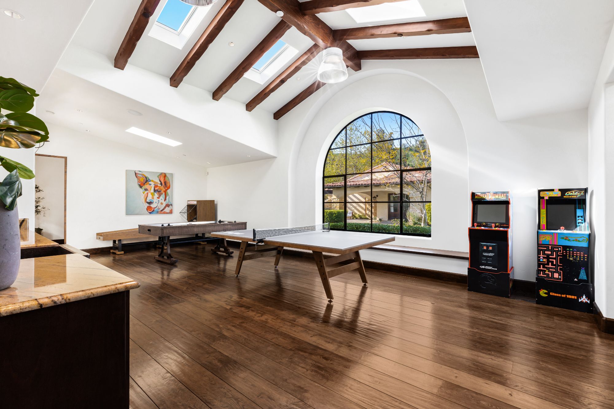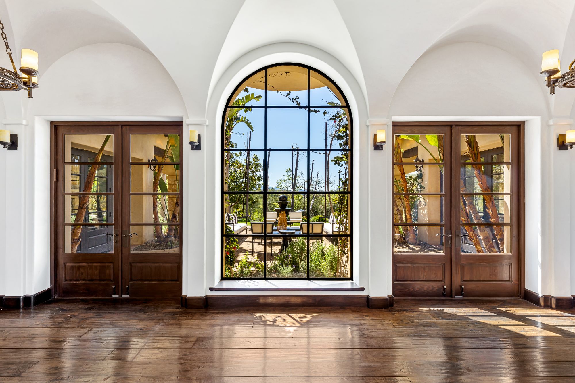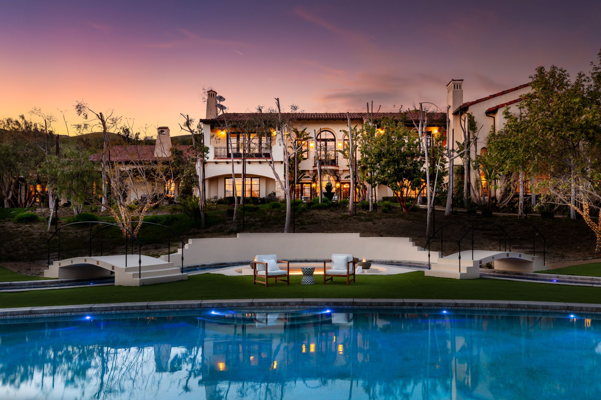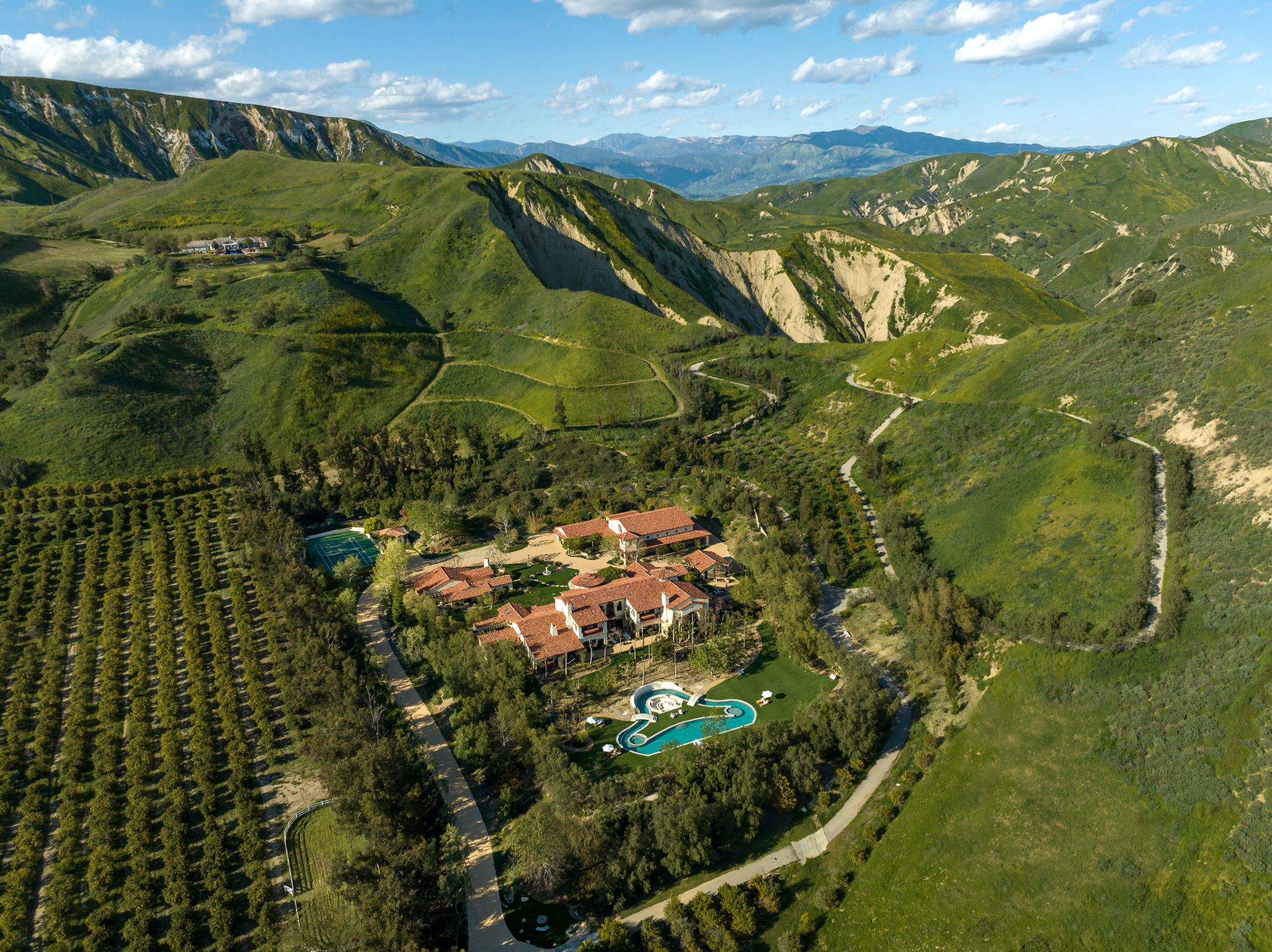 Welcome to El Palacio Del Solano, an exquisite oasis nestled within the prestigious Solano Verde Ranches. This extremely private enclave of 39 palatial estates is centrally located from Los Angeles, Malibu, & Santa Barbara. Located just 25 minutes north of Westlake Village and Thousand Oaks, and a mere 45 minutes from the pristine shores of Malibu, this secluded sanctuary offers convenience. Each of these generational estates sits on dozens of acres encompassing the most pristine natural landscapes known to Southern California. Beyond the handcrafted gates, ensconced amidst verdant fruit orchards and bordered by a meticulously manicured tree-lined driveway, awaits a truly unparalleled residence, the holy grail of Somis. Spanning 22 acres of secluded splendor, this Spanish palatial estate exemplifies opulence at every turn. Boasting approximately 20,000 square feet of meticulously designed living space, the estate epitomizes grandeur & opulence. The centerpiece is the magnificent 14,460 square foot main residence, complemented by a fully appointed 2,300 square foot guest house and an expansive 3,100 square foot hospitality and recreational facility. Step inside and be greeted by perfectly detailed Spanish tiles along the flooring and an all encompassing floor to ceiling window. From the state-of-the-art media room to the tranquil library & private office, each space exudes sophistication. Culinary delights await in the gourmet kitchen ideal for large gatherings, while the bar and wine cellar beckon for evenings of refined entertainment. Retreat to the sumptuous master suite, where a private primary living room is joined with a double-sided fireplace. The dual primary bathrooms feature a spacious dressing area, sauna, double-sided glass enclosed shower, & direct access to personal gym & office. Other notable interiors include a private massage room, arcade room, and grand formal dining room. Ascend to the second floor, where hospitality reigns supreme. Three luxurious bedroom suites, each boasting private balconies with sweeping vistas, offer unparalleled comfort. A 2nd story loft space with a bar can be found overlooking the 1st floor family room with the iconic arched window capturing the picturesque mountain views. Step into the backyard where paradise awaits. A massive grass field is accompanied by multiple lounging areas and a one-of-a-kind lazy pool with a center island fire pit. The backyard is adorned by a plethora of fruit trees including lemon, avocado, pomegranate, fig, & tangerine. Walking paths leading up to your own private mountain located to the East side of the estate offer the most scenic jaw dropping mountain views. French doors off the glass enclosed breakfast room open up to a private al fresco dining and living area accompanied by an outdoor kitchen. Multiple seating & entertainment areas allow for hosting of large dinner parties or smaller intimate events. Enjoy your own private sports court with its own shaded cabana. Start your mornings with a round of tennis or basketball. The guest house is situated with a two-car garage, two beds, two baths, fully equipped kitchen, living room, & breakfast nook. This private luxurious retreat is equipped with all living essentials. The recreational & hospitality facility are ideal for hosting the most upscale events. Tucked away behind the facility are two fully equipped restrooms. A spacious four-car garage is attached to the facility equipped with volume ceilings ideal for parking event vans, trucks, and small to mid-size buses. The possibilities are endless with regard to this facility. An estimated range of fifteen to twenty cars could comfortably be parked in the driveway and motor court spaces. Whether a notable family desires an ultra-private compound or a high-status celebrity seeks a serene oasis, El Palacio Del Solano offers a lifestyle unlike any other for the most discerning buyer.