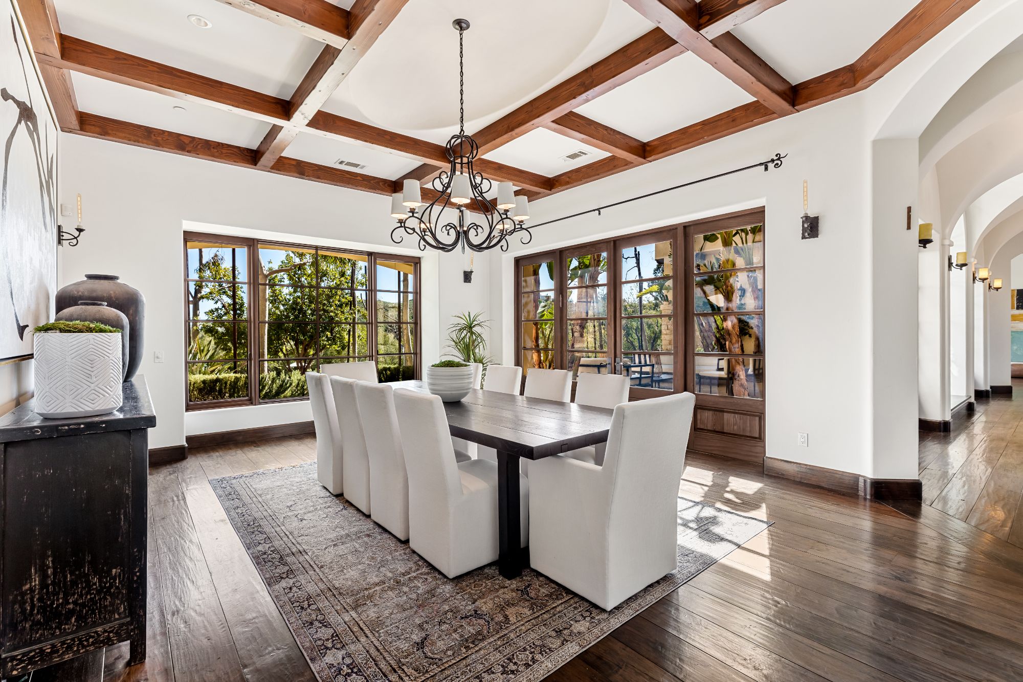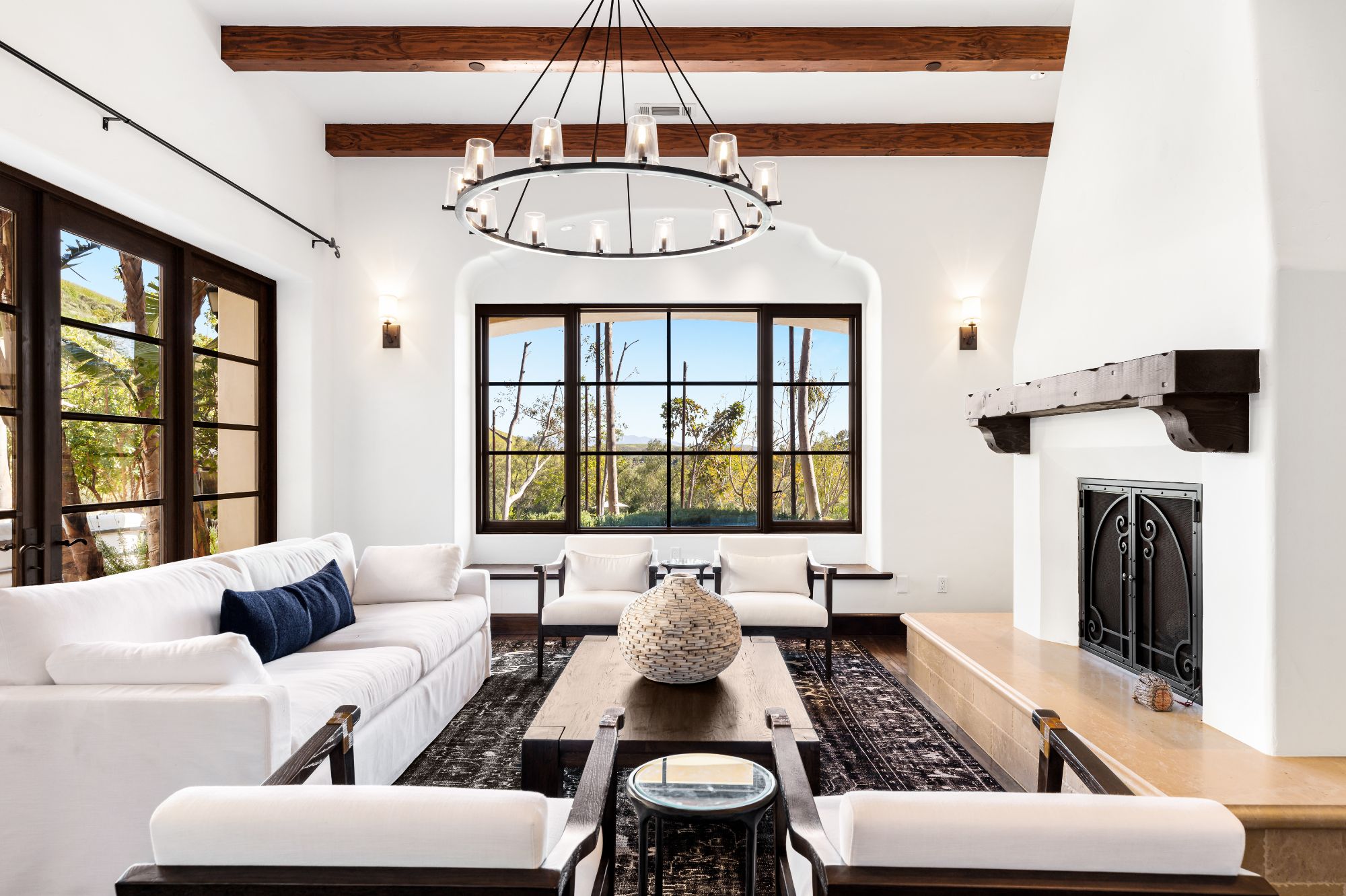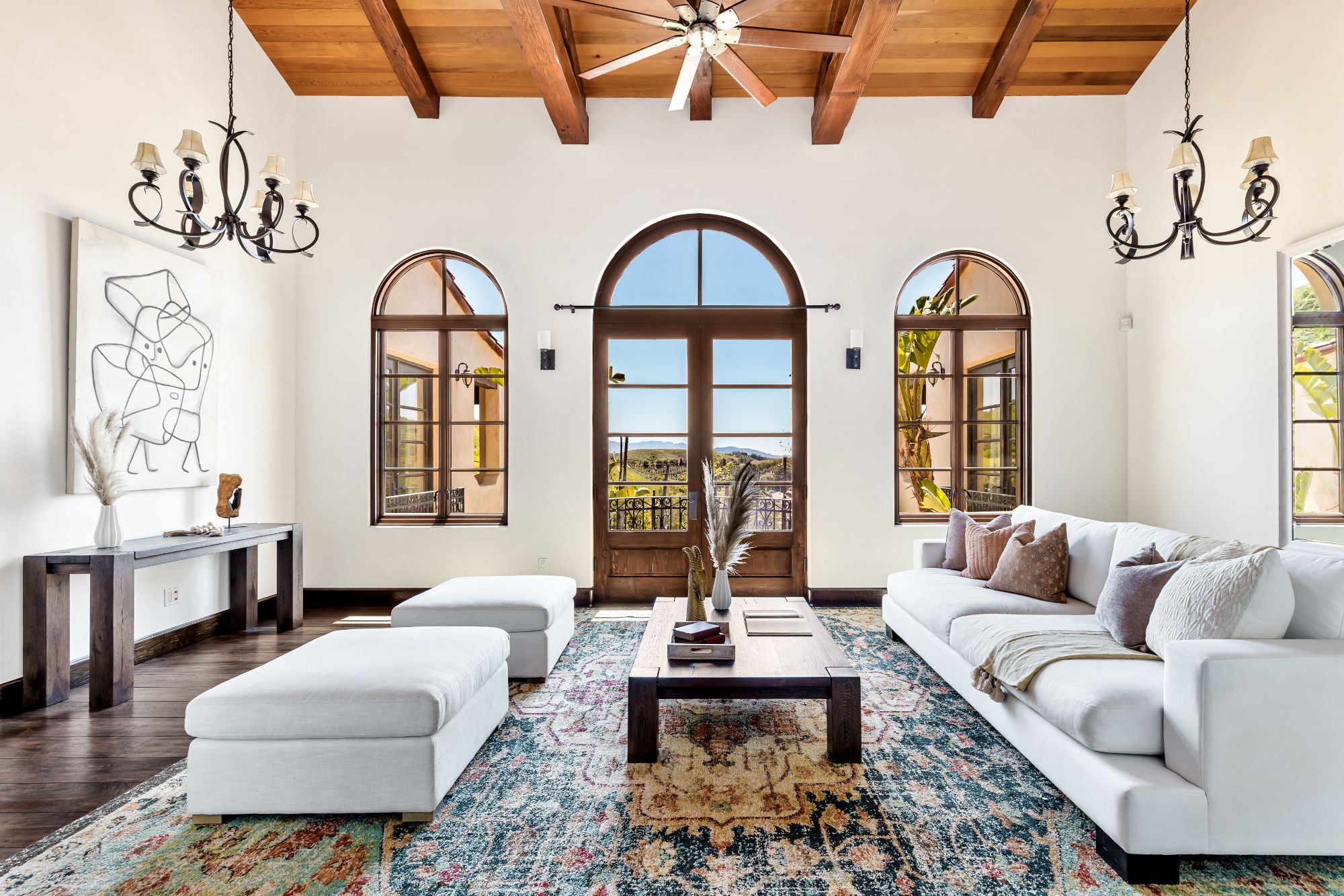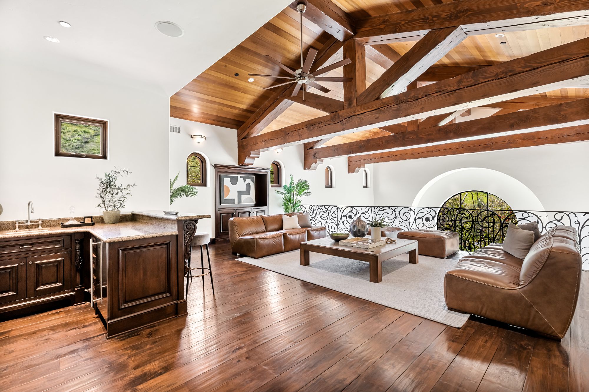 Welcome to El Palacio Del Solano, an exquisite oasis nestled within the prestigious Solano Verde Ranches. This extremely private enclave of 39 palatial estates is centrally located from Los Angeles, Malibu, & Santa Barbara. Located just 25 minutes north of Westlake Village and Thousand Oaks, and a mere 45 minutes from the pristine shores of Malibu, this secluded sanctuary offers convenience. Each of these generational estates sits on dozens of acres encompassing the most pristine natural landscapes known to Southern California. Beyond the handcrafted gates, ensconced amidst verdant fruit orchards and bordered by a meticulously manicured tree-lined driveway, awaits a truly unparalleled residence, the holy grail of Somis. Spanning 22 acres of secluded splendor, this Spanish palatial estate exemplifies opulence at every turn. Boasting approximately 20,000 square feet of meticulously designed living space, the estate epitomizes grandeur & opulence. The centerpiece is the magnificent 14,460 square foot main residence, complemented by a fully appointed 2,300 square foot guest house and an expansive 3,100 square foot hospitality and recreational facility. Step inside and be greeted by perfectly detailed Spanish tiles along the flooring and an all encompassing floor to ceiling window. From the state-of-the-art media room to the tranquil library & private office, each space exudes sophistication. Culinary delights await in the gourmet kitchen ideal for large gatherings, while the bar and wine cellar beckon for evenings of refined entertainment. Retreat to the sumptuous master suite, where a private primary living room is joined with a double-sided fireplace. The dual primary bathrooms feature a spacious dressing area, sauna, double-sided glass enclosed shower, & direct access to personal gym & office. Other notable interiors include a private massage room, arcade room, and grand formal dining room. Ascend to the second floor, where hospitality reigns supreme. Three luxurious bedroom suites, each boasting private balconies with sweeping vistas, offer unparalleled comfort. A 2nd story loft space with a bar can be found overlooking the 1st floor family room with the iconic arched window capturing the picturesque mountain views. Step into the backyard where paradise awaits. A massive grass field is accompanied by multiple lounging areas and a one-of-a-kind lazy pool with a center island fire pit. The backyard is adorned by a plethora of fruit trees including lemon, avocado, pomegranate, fig, & tangerine. Walking paths leading up to your own private mountain located to the East side of the estate offer the most scenic jaw dropping mountain views. French doors off the glass enclosed breakfast room open up to a private al fresco dining and living area accompanied by an outdoor kitchen. Multiple seating & entertainment areas allow for hosting of large dinner parties or smaller intimate events. Enjoy your own private sports court with its own shaded cabana. Start your mornings with a round of tennis or basketball. The guest house is situated with a two-car garage, two beds, two baths, fully equipped kitchen, living room, & breakfast nook. This private luxurious retreat is equipped with all living essentials. The recreational & hospitality facility are ideal for hosting the most upscale events. Tucked away behind the facility are two fully equipped restrooms. A spacious four-car garage is attached to the facility equipped with volume ceilings ideal for parking event vans, trucks, and small to mid-size buses. The possibilities are endless with regard to this facility. An estimated range of fifteen to twenty cars could comfortably be parked in the driveway and motor court spaces. Whether a notable family desires an ultra-private compound or a high-status celebrity seeks a serene oasis, El Palacio Del Solano offers a lifestyle unlike any other for the most discerning buyer.