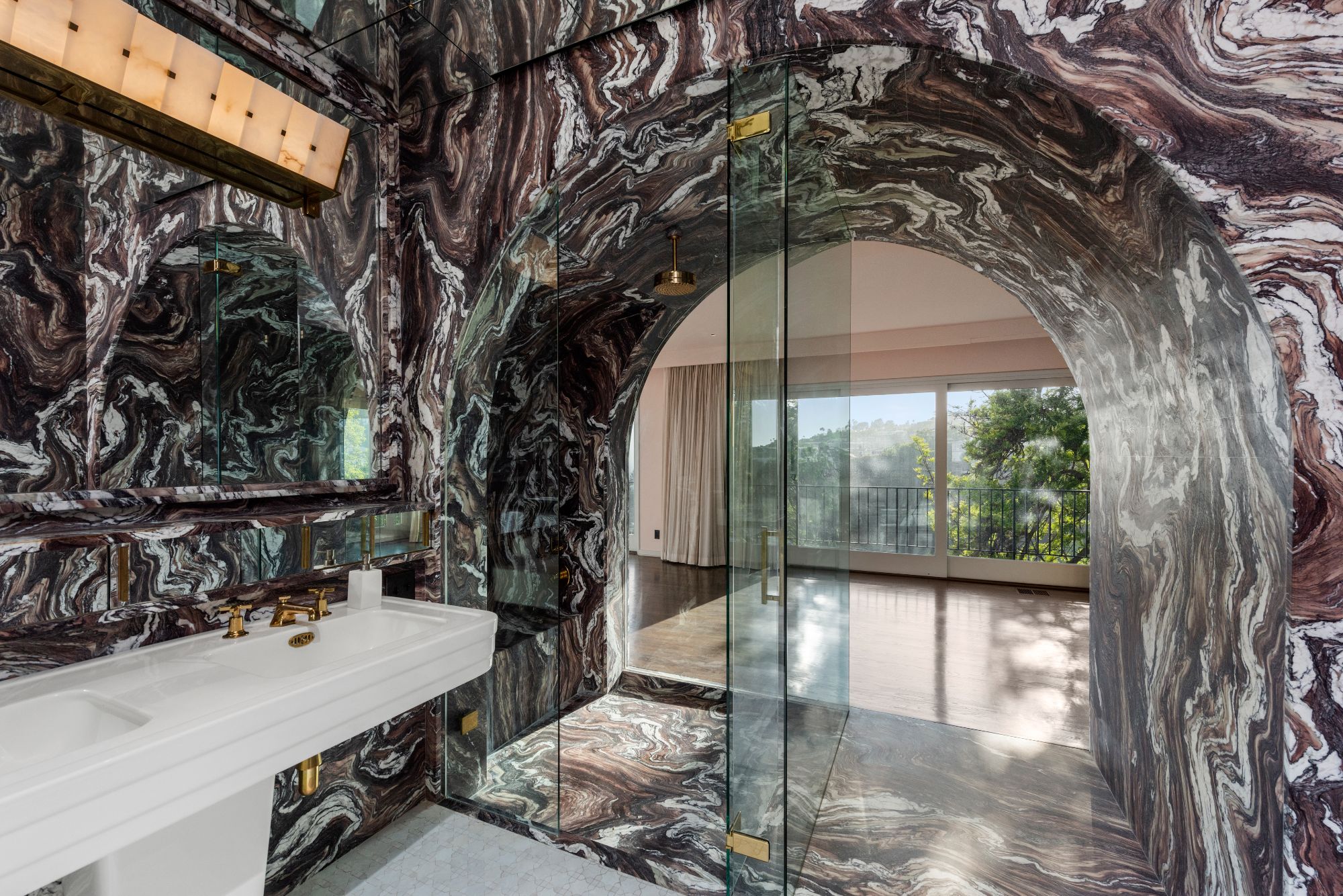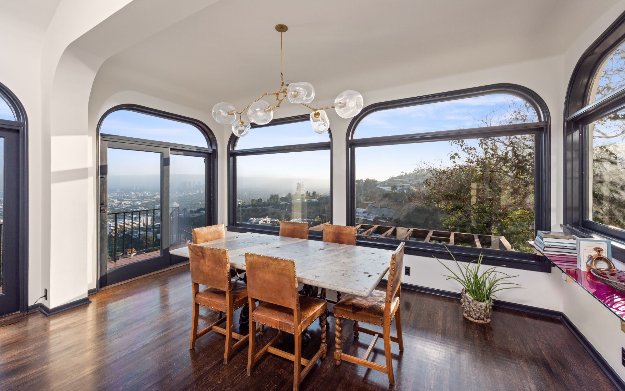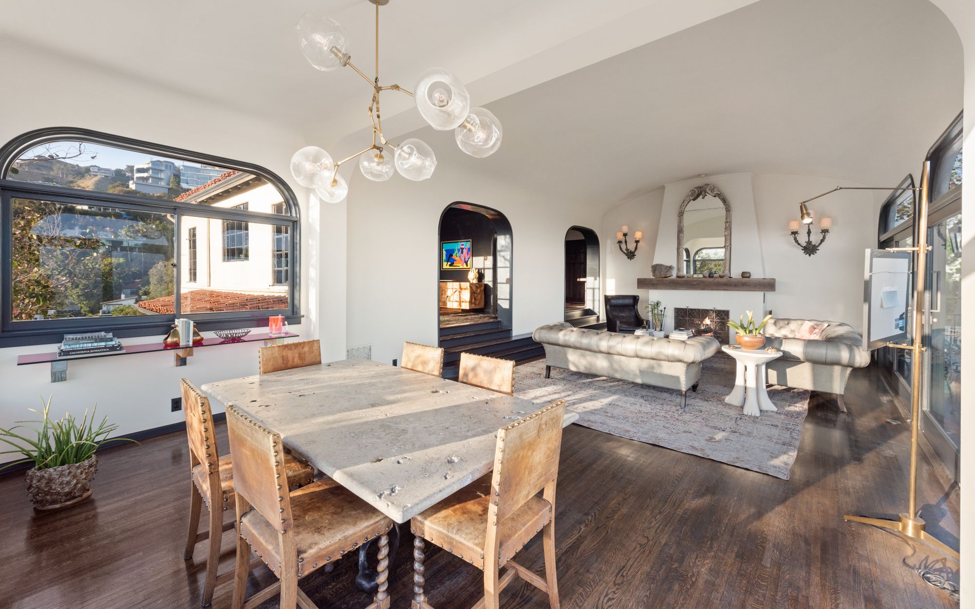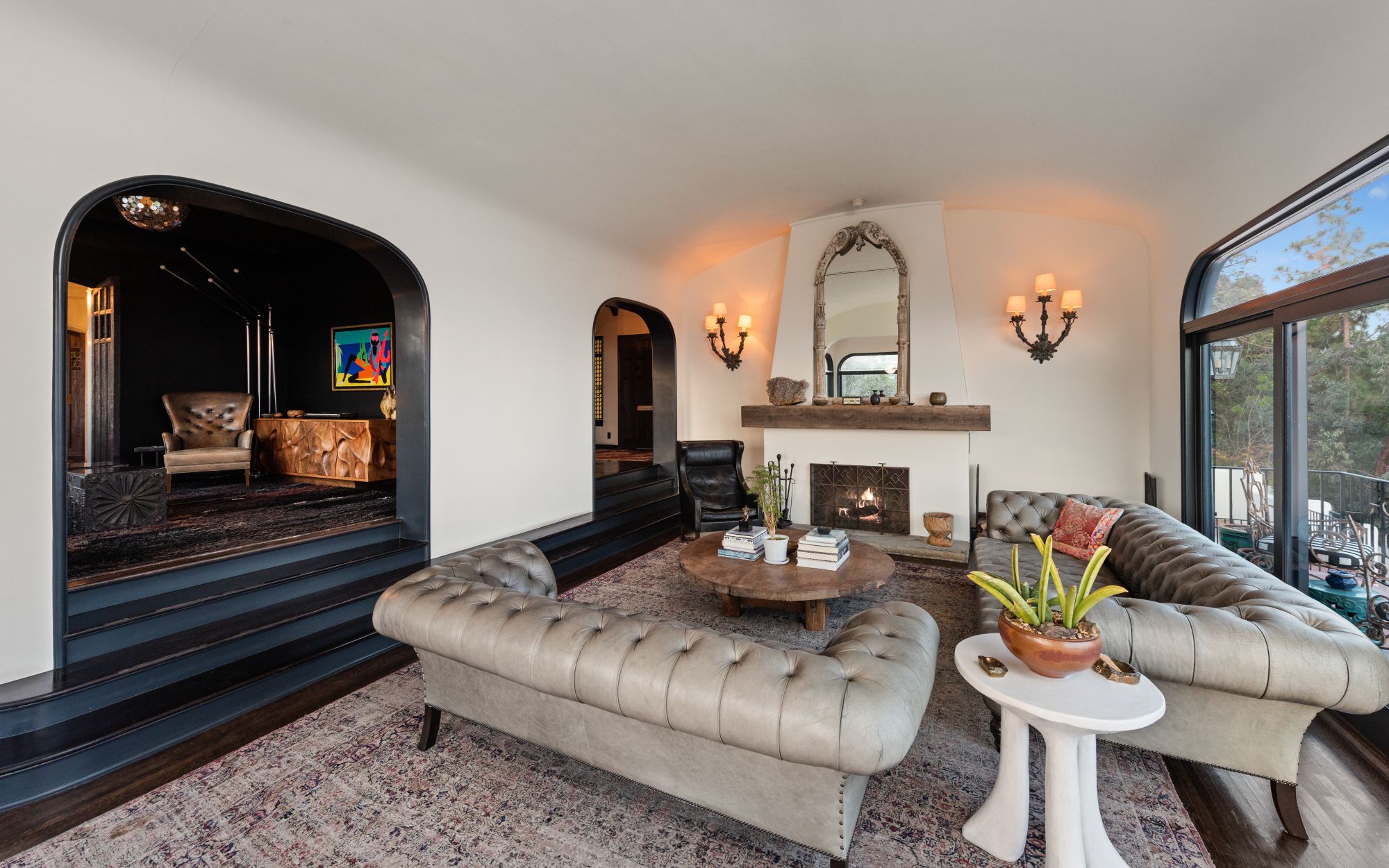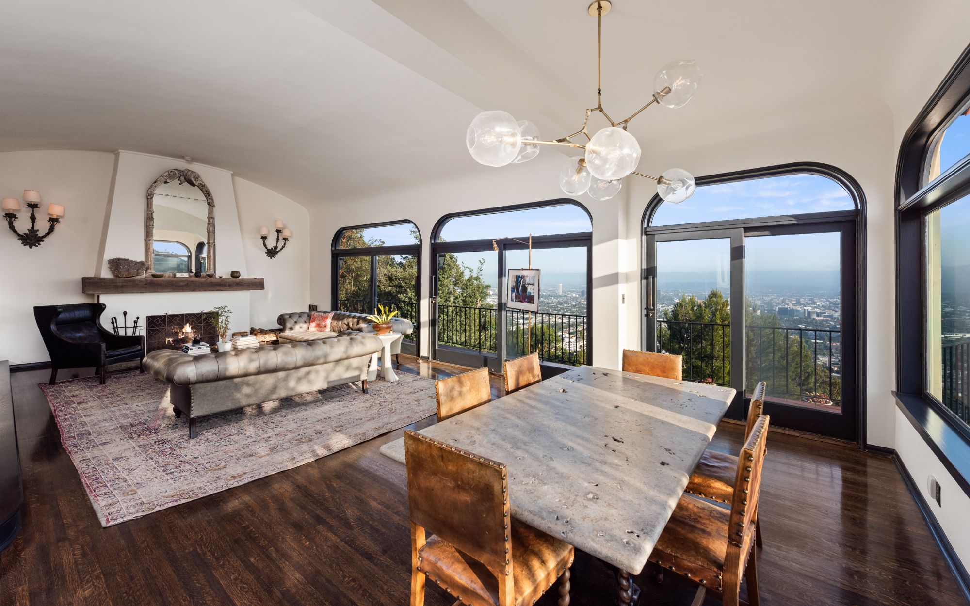 Stunning Spanish contemporary villa hovering over the Sunset Strip with drop-dead panoramic city & ocean views from every room. Interiors by Commune, this 3-story private estate hosts an open floor plan with a step-down living room w/a fireplace, gourmet kitchen, studio, exquisite bathrooms & massive entertainment room that spans the entire length of the home. Two-story spiral staircase w/ skylight leads to bedrooms, including a large private primary suite overlooking the lights of LA. Perched on the hills with explosive views, the enormous wrap-around tile deck features an infinity pool, spa, and covered entertaining area. "Welcome to Hollywood" the most iconic street in the world.