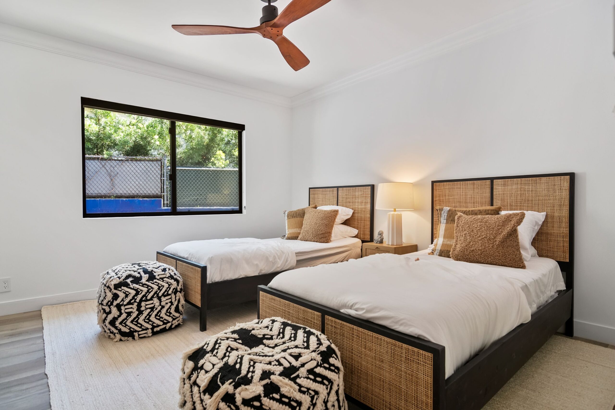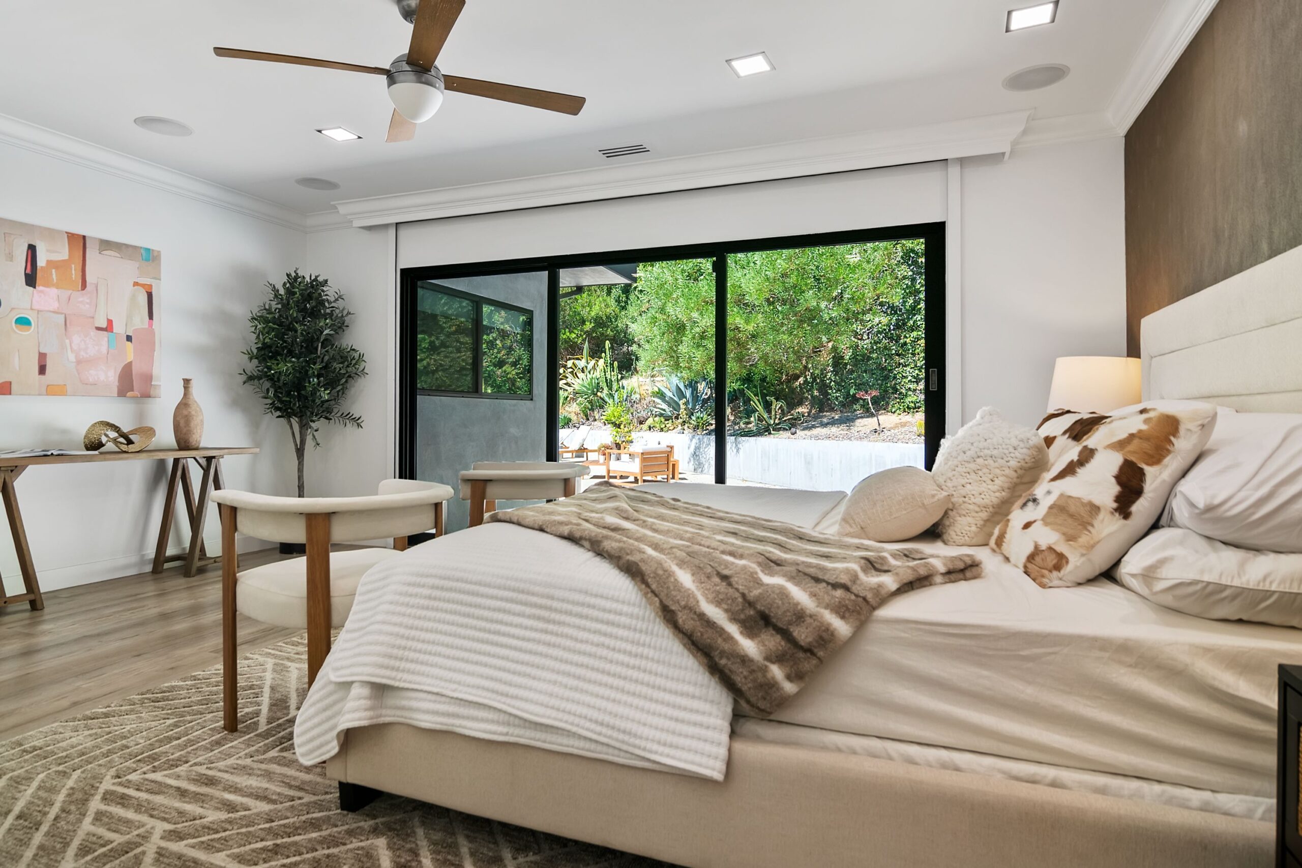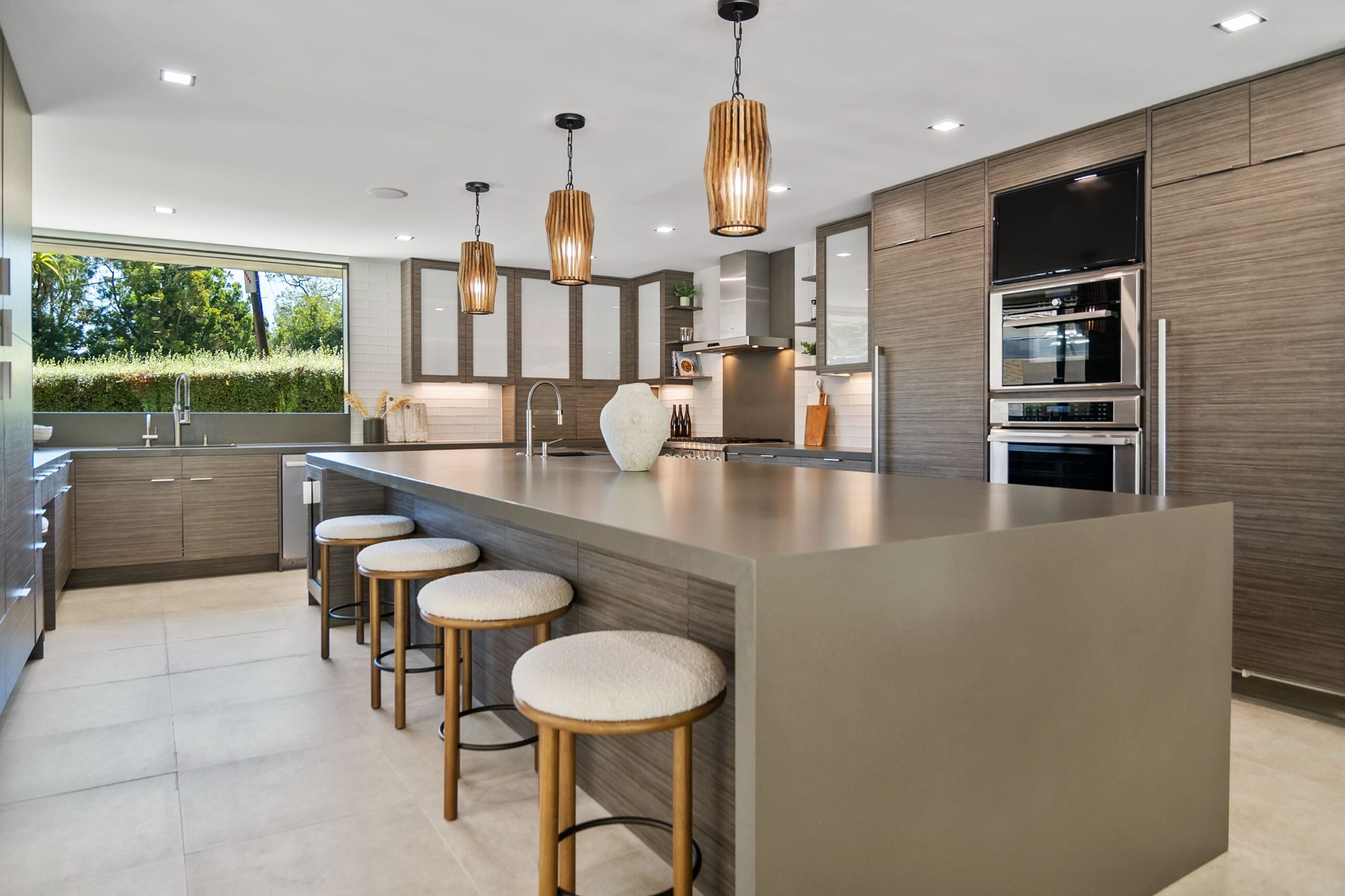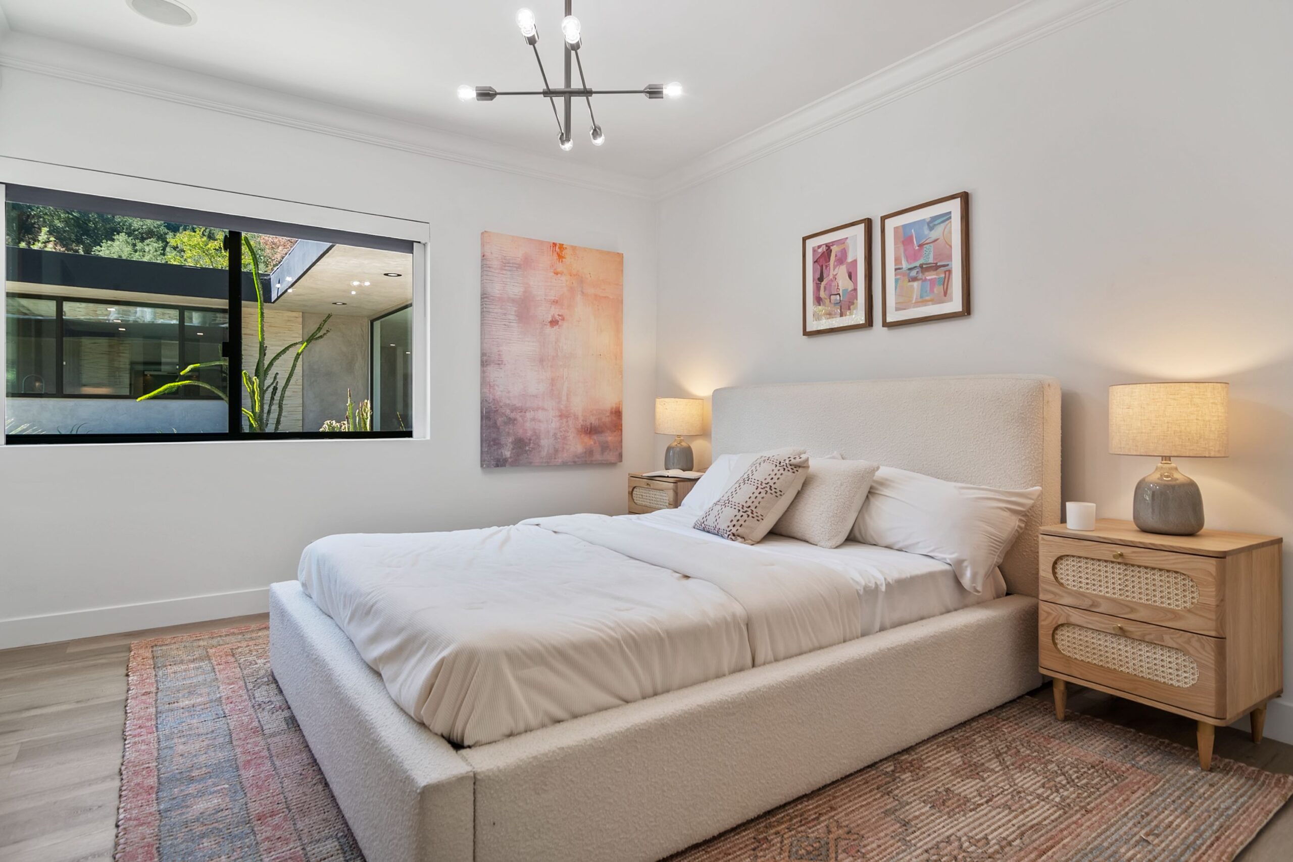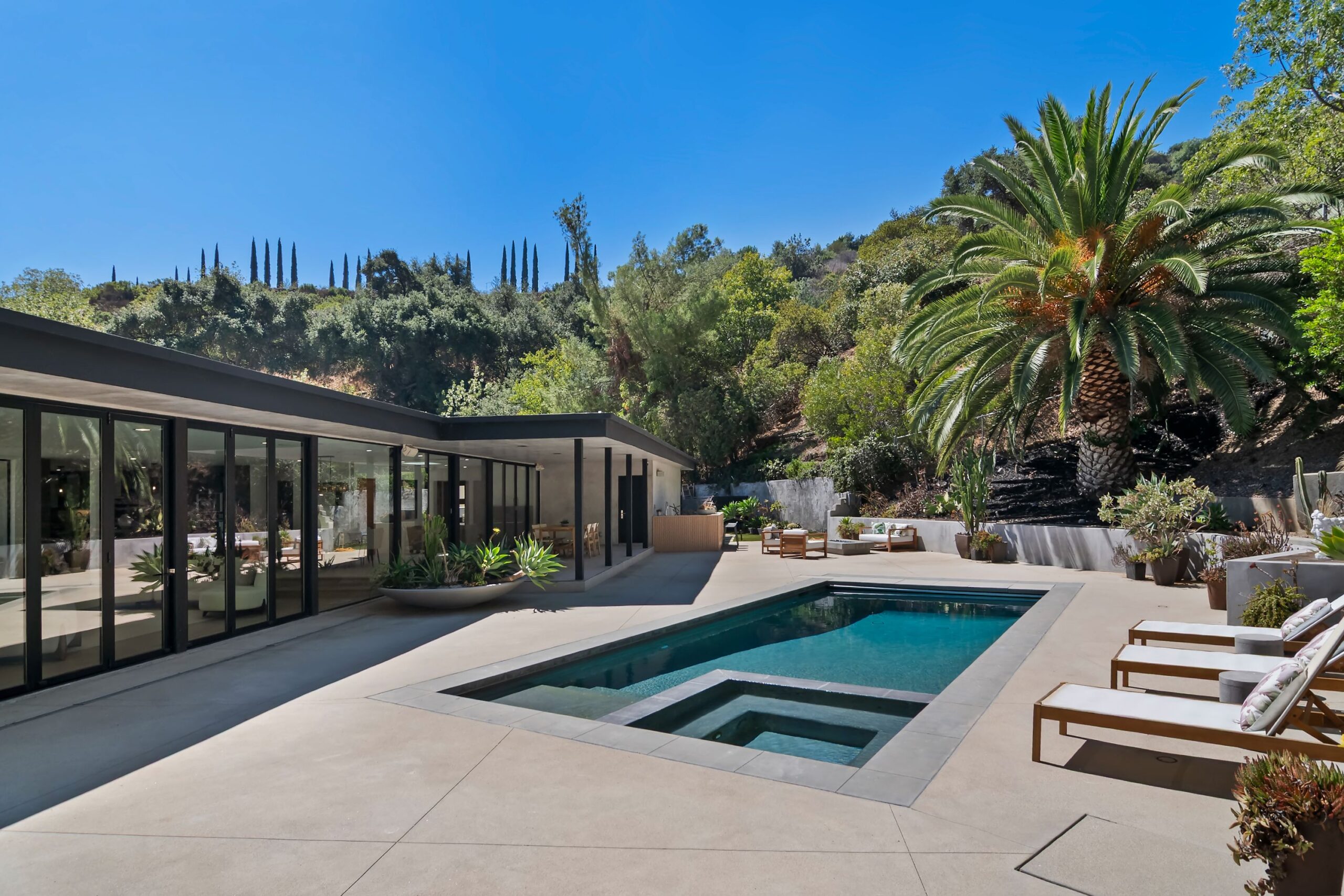 Over 1 acre private compound, fully secluded, completely remodeled mid-century contemporary home with all the latest and greatest amenities. This estate offers the perfect fusion of refined global design, ultimate privacy, and seamless California indoor-outdoor living. Incredible finishes curated from around the world enhance every corner of this 6-bedroom, 7-bathroom residence, creating a timeless yet modern sanctuary. Features include dual private primary suites, a chef's kitchen outfitted with premium Thermador and Viking appliances, smart home automation, full solar power with backup generator, a custom theater, and a state-of-the-art gym. The lush, private backyard is a true retreat, featuring a sparkling pool and spa, outdoor BBQ island, cozy firepit, and a versatile sports court. With its striking architecture, open flow, curated finishes, and coveted Beverly Hills location, this home is truly a Legacy Estate!