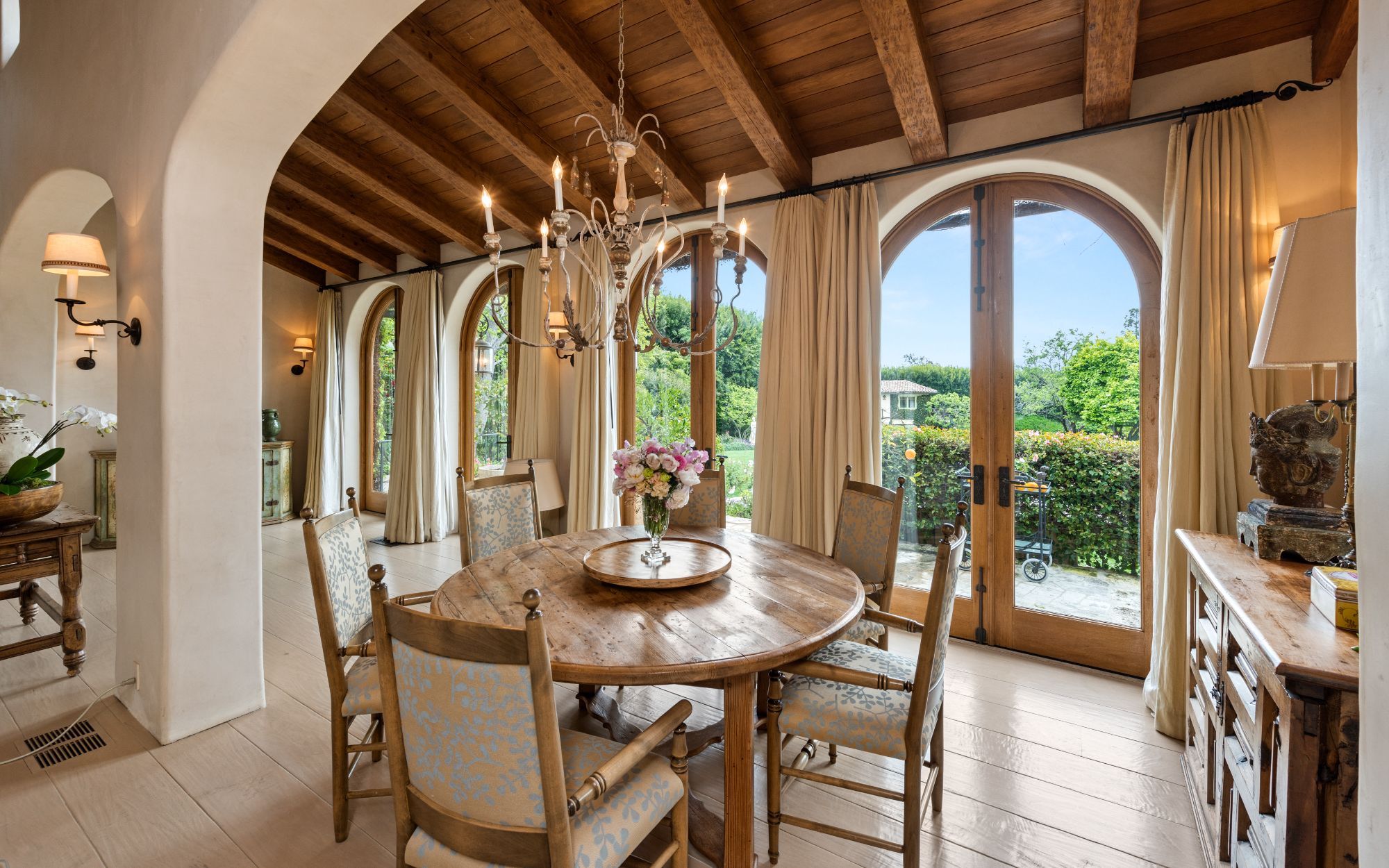 An estate of incomparable grandeur and legacy, this one-of-a-kind Villa is situated on a premier Pacific Palisades street, boasting ~2 acres of immaculate grounds with its own private tennis court. Designed by world-renowned architect Richard Landry, this estate showcases ultimate privacy, set behind large double gates and mature hedging on one of the largest lots in the Riviera. This estate consists of approximately 17,000 square feet of palatial living. Showcasing unparalleled design, this masterpiece is accented with the finest materials. This beautifully crafted Italian compound boasts 8 bedrooms, 15 bathrooms with an expansive floor plan showcasing grand scale, design and functionality. Drenched in natural light, the main home includes elaborate details and finishes with European imported stone, coffered and vaulted beamed ceilings, and rare biblical stone from Jerusalem. Highlights on the main level include a bright solarium, a luxury dining room with access to the grand chef's kitchen that exudes opulence with professional grade appliances, two islands with seating and a large pantry. Upstairs, the lavish primary suite includes a fireplace, sitting area, and private balcony that overlooks the grounds and has gorgeous ocean and canyon views. The spa-like bathroom includes dual layout, each having their own private space with showroom style walk-in closets. The home boasts multiple recreational areas including a screening room, large sitting/playroom upstairs, and a dedicated game room on the main level. Outdoor entertainment at its finest, the sizable backyard includes a newly restored lit private north/south tennis court with viewing area, putting green, built-in BBQ with dining and bask in the large pool/spa in the sun all day. The property also offers a 2-story, private 1-bedroom, 2-bathroom guest house that includes a full kitchen. This once-in-a-generation estate is one that you do not want to miss.